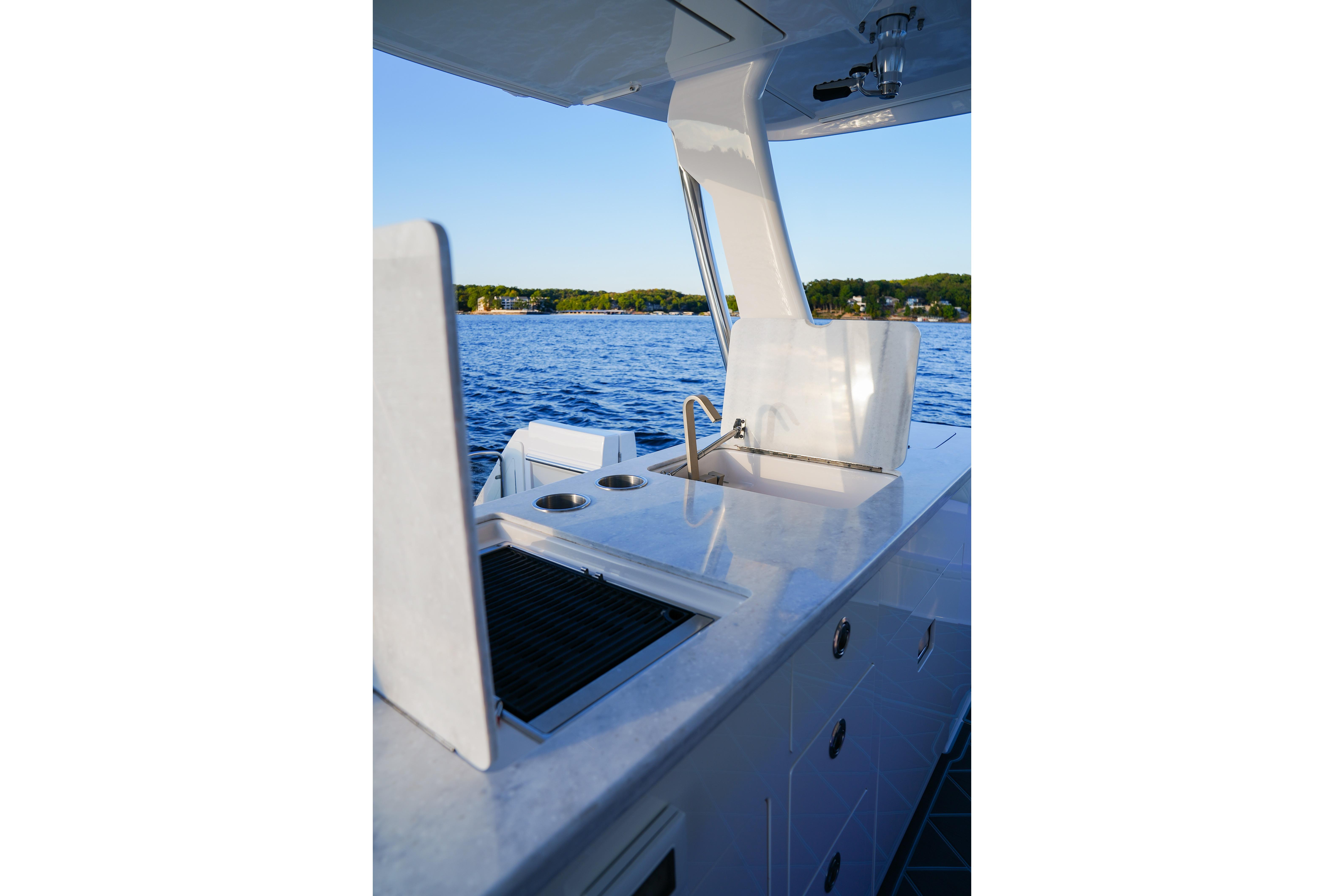 The 38 SAV blends luxury yacht comfort with sport-boat handling. Wide walk-around decks, a massive open cockpit, and a true cabin make this an ideal day boat, weekend cruiser, or entertaining platform.
