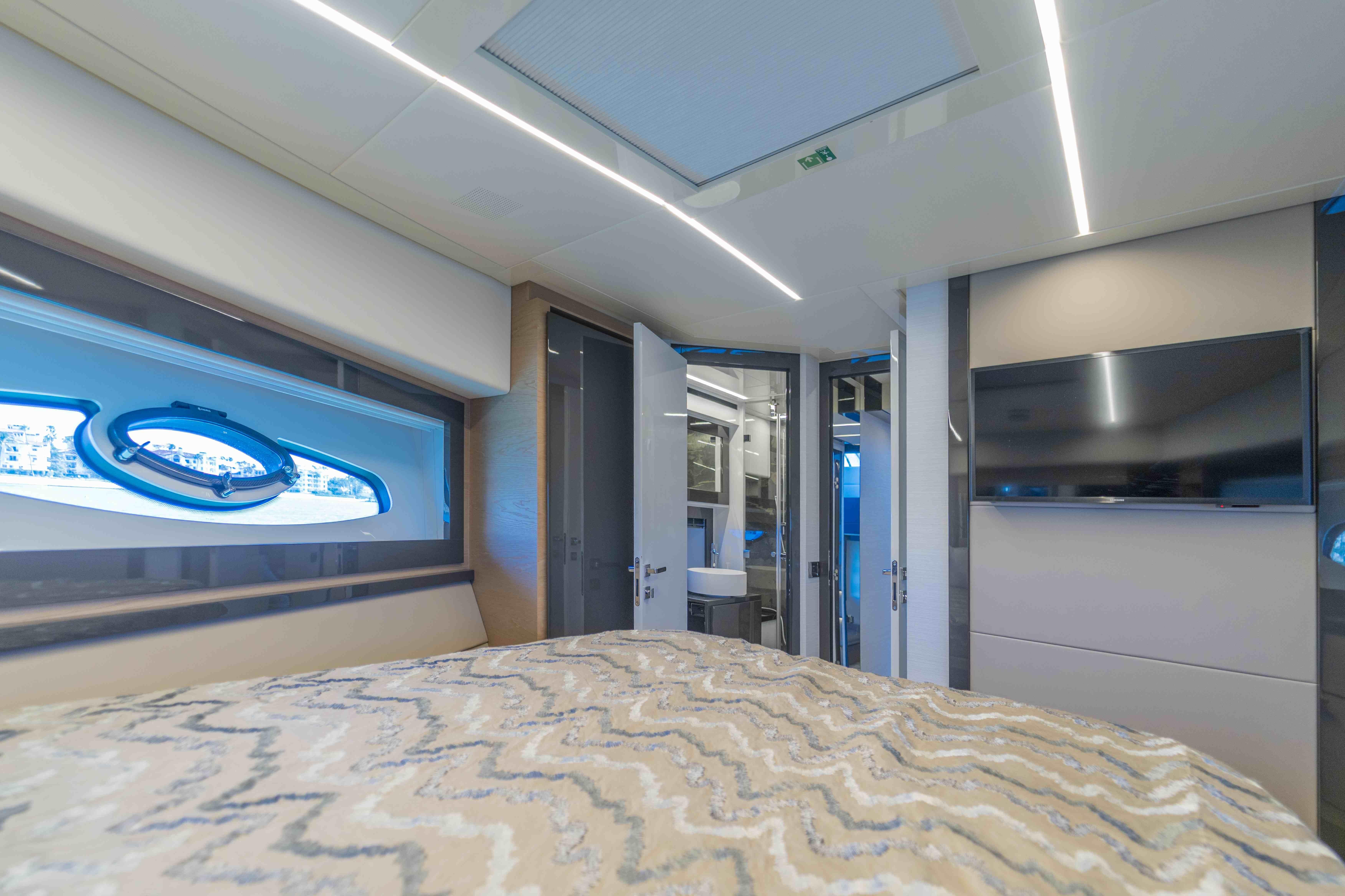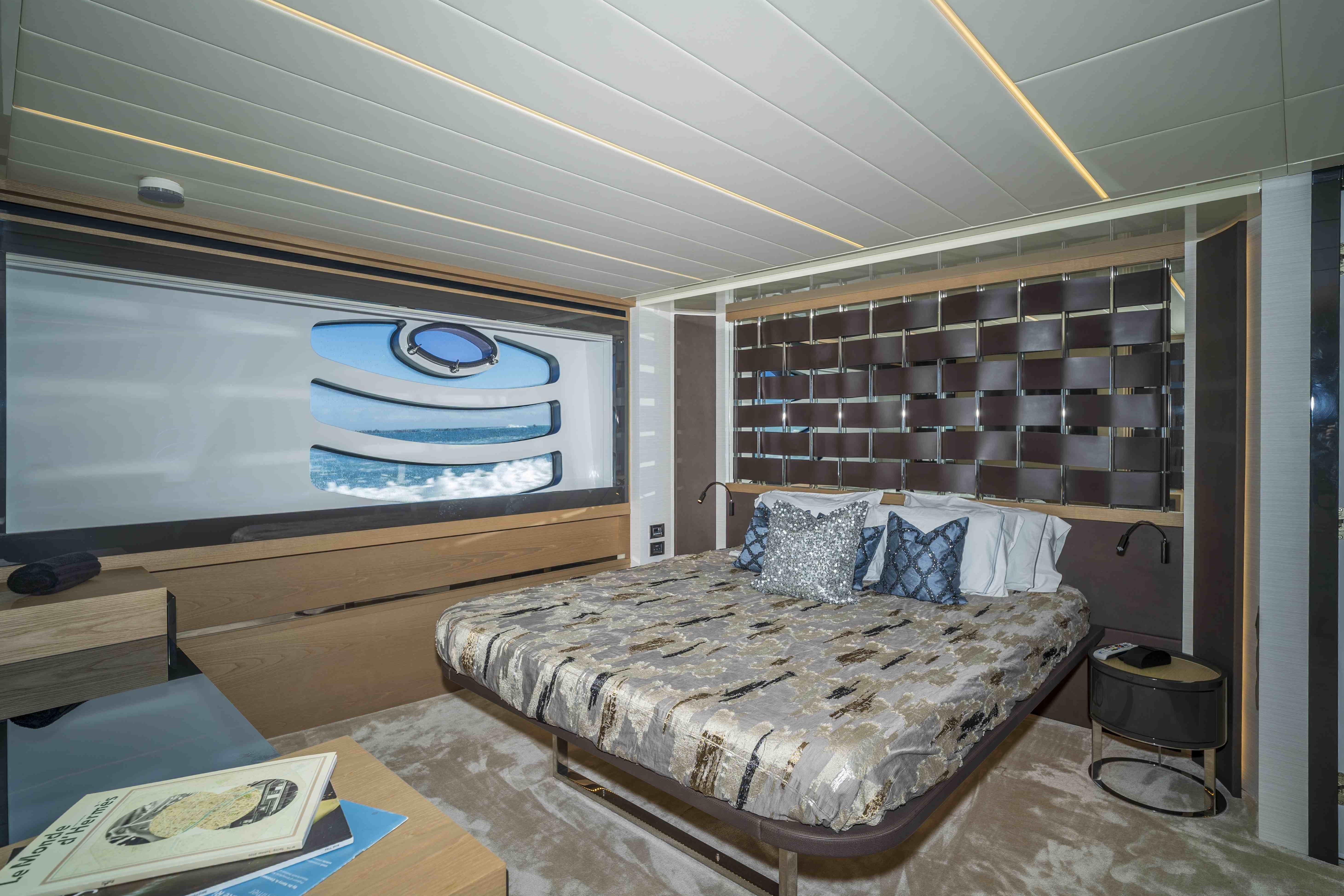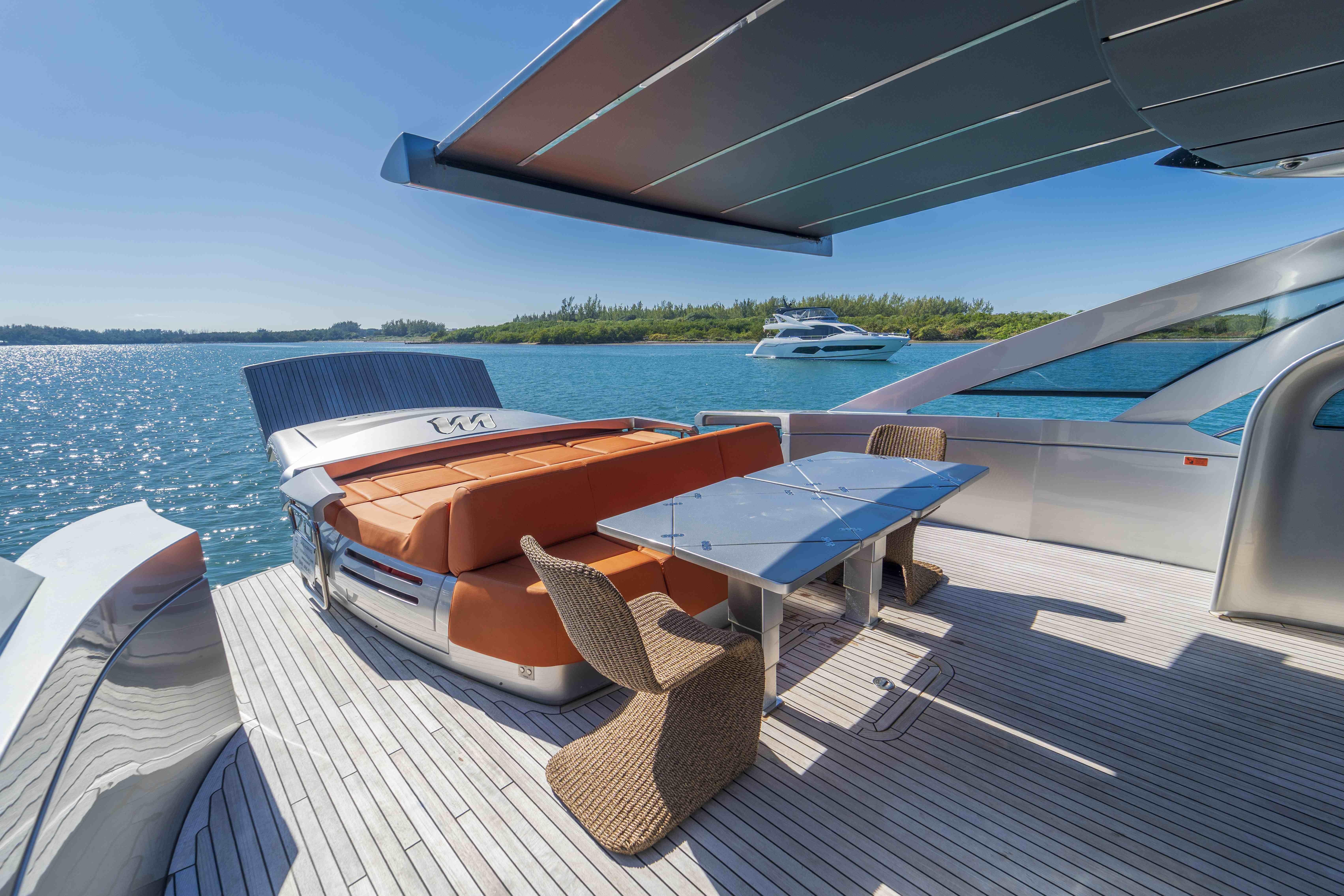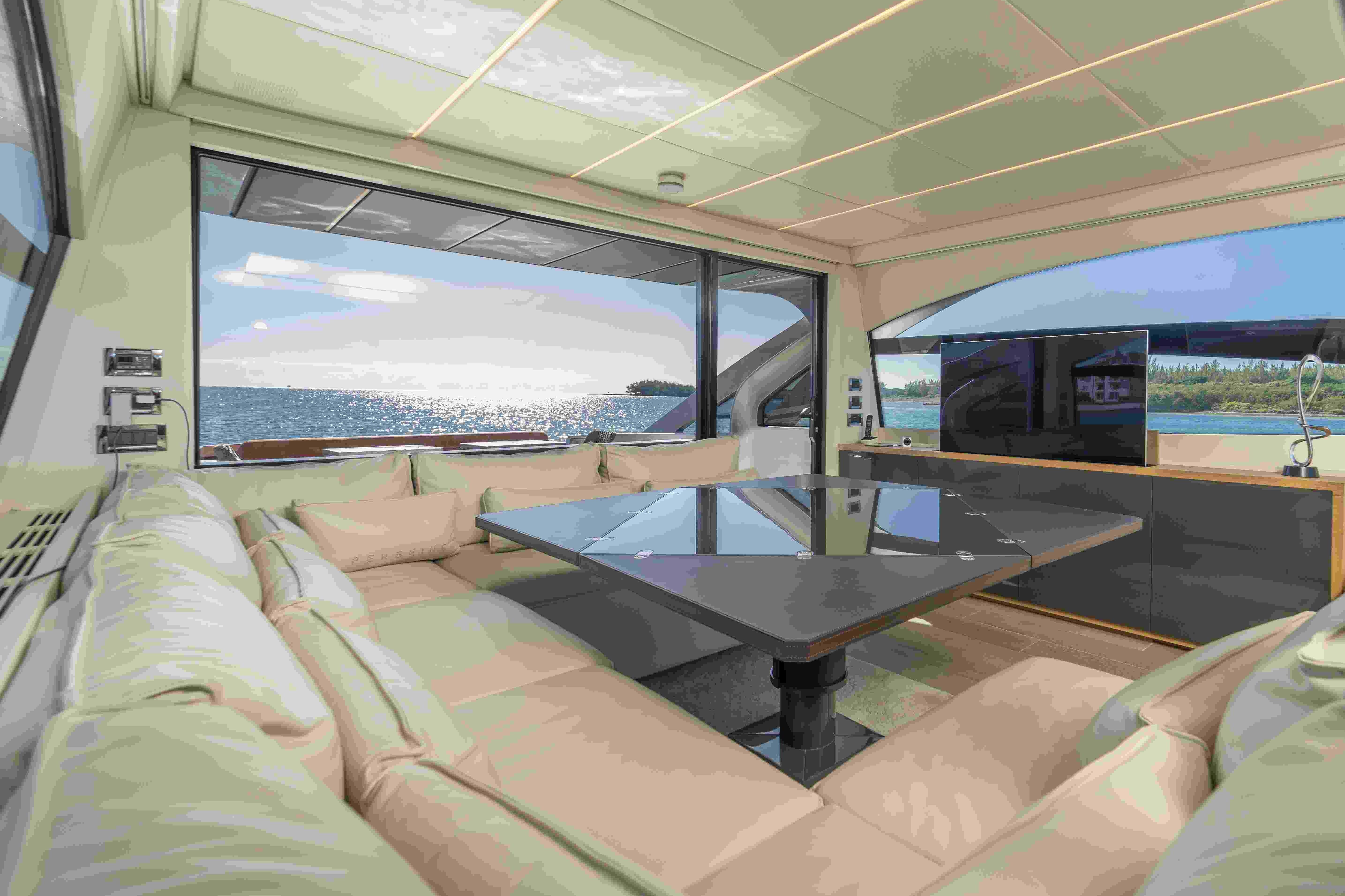 Its dynamic silhouette is enhanced by two striking structural wings, giving the yacht a dramatic, sculptural appearance that is instantly recognisable and undeniably Pershing. Every line speaks to performance, while every detail reflects refined elegance—creating a vessel with a unique personality unlike any other in its class.