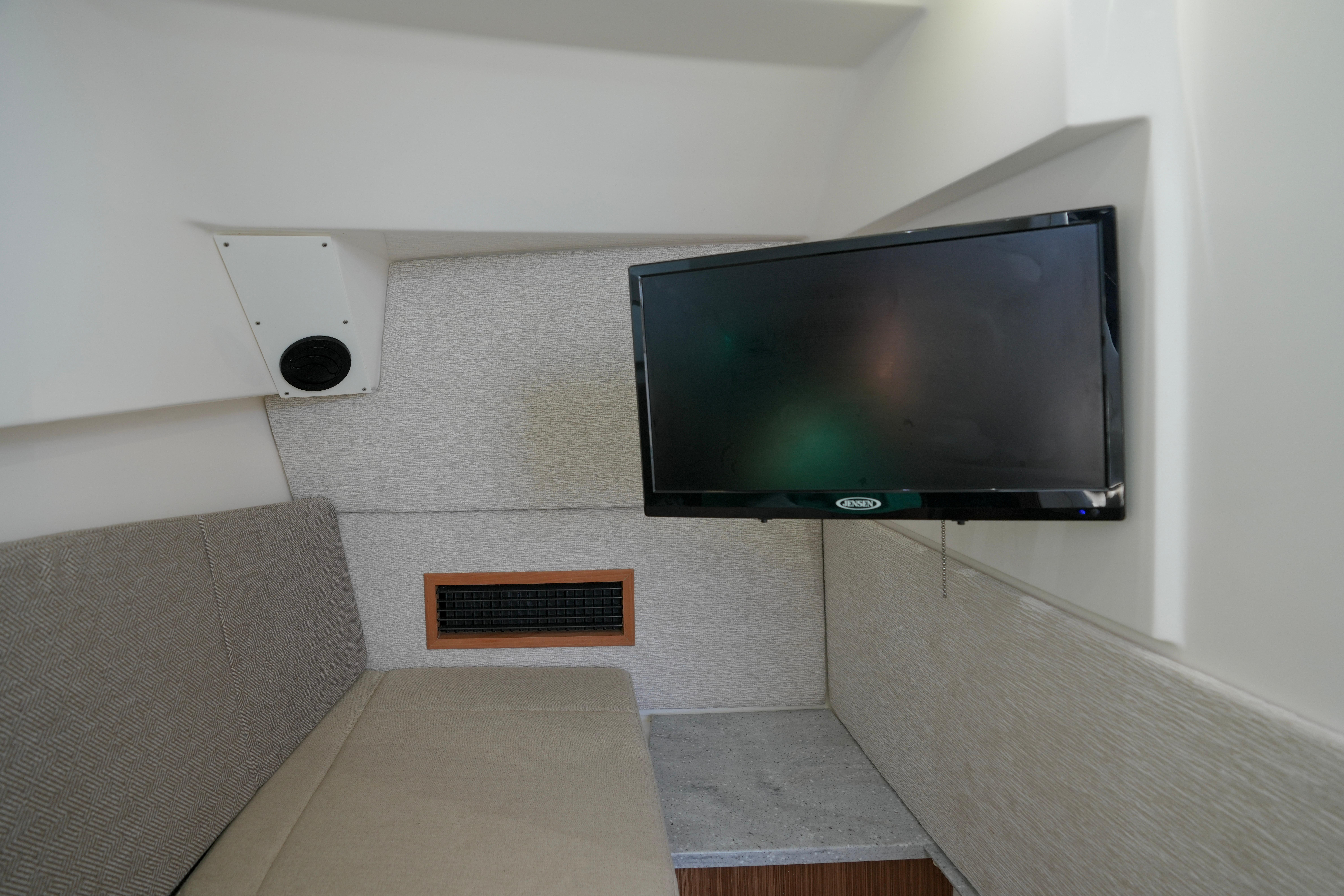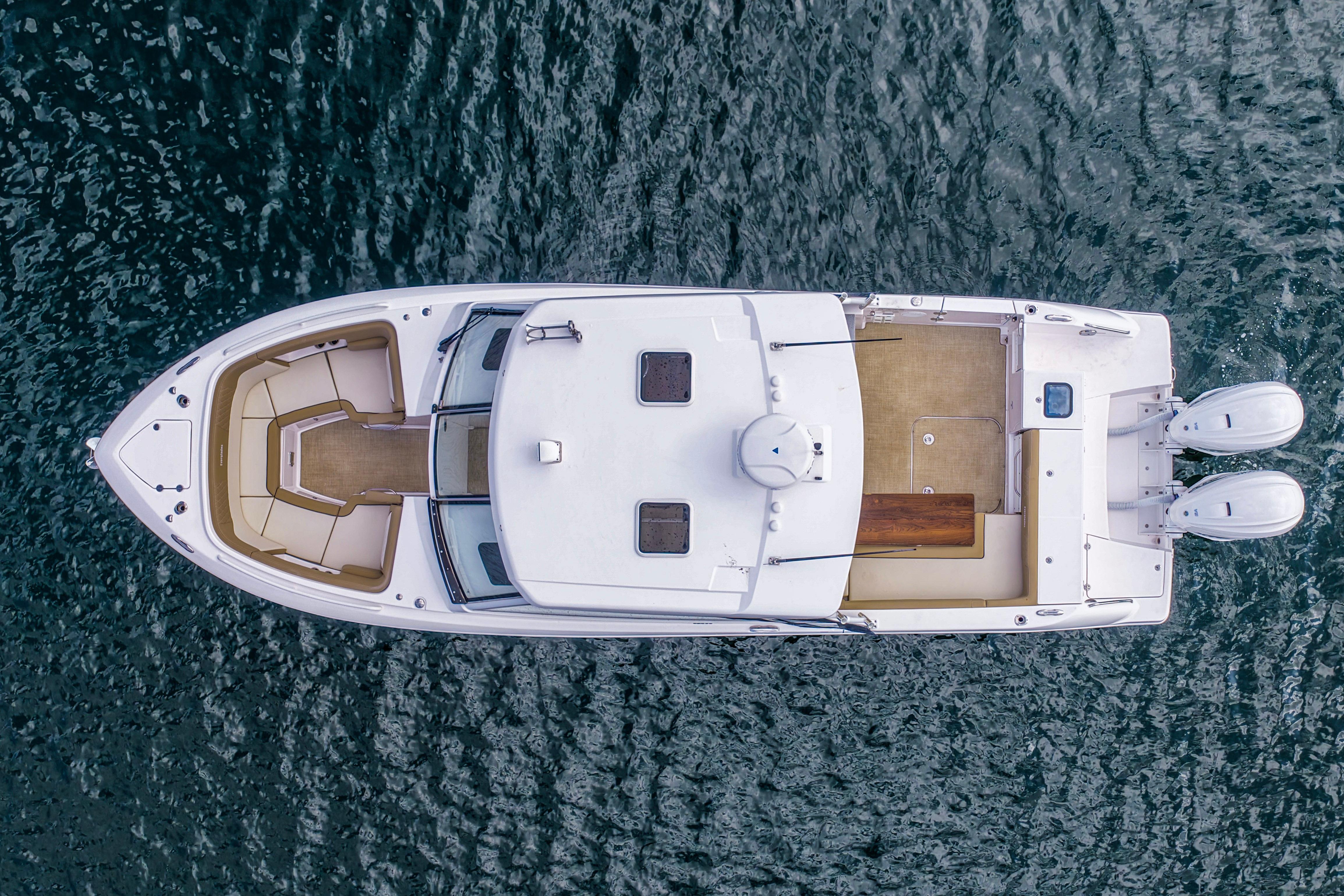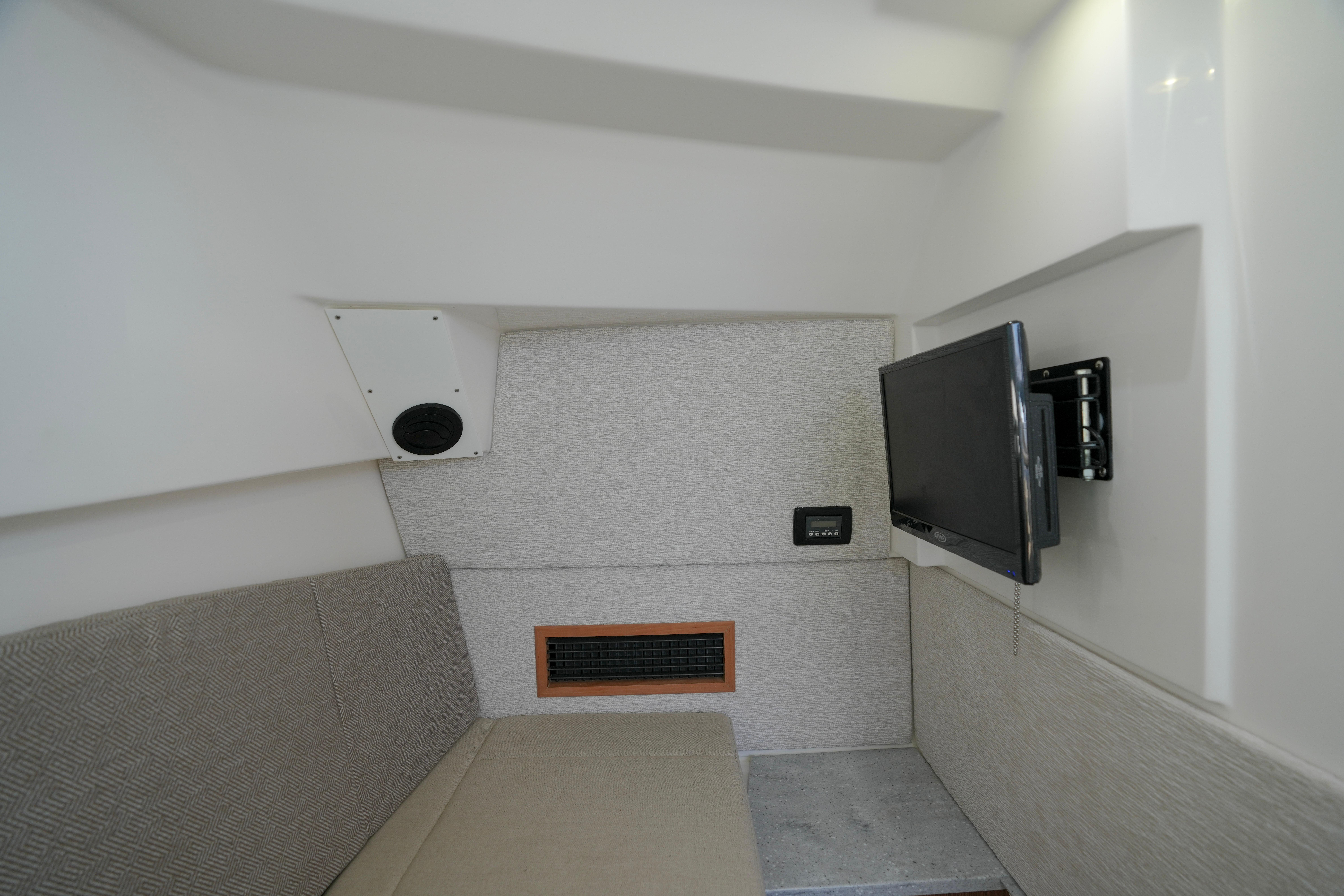One of the standout features of the 340DC is its fully enclosed, air-conditioned cabin. With two A/C units and a generator, the boat remains comfortable even on the hottest summer days or during overnight trips.