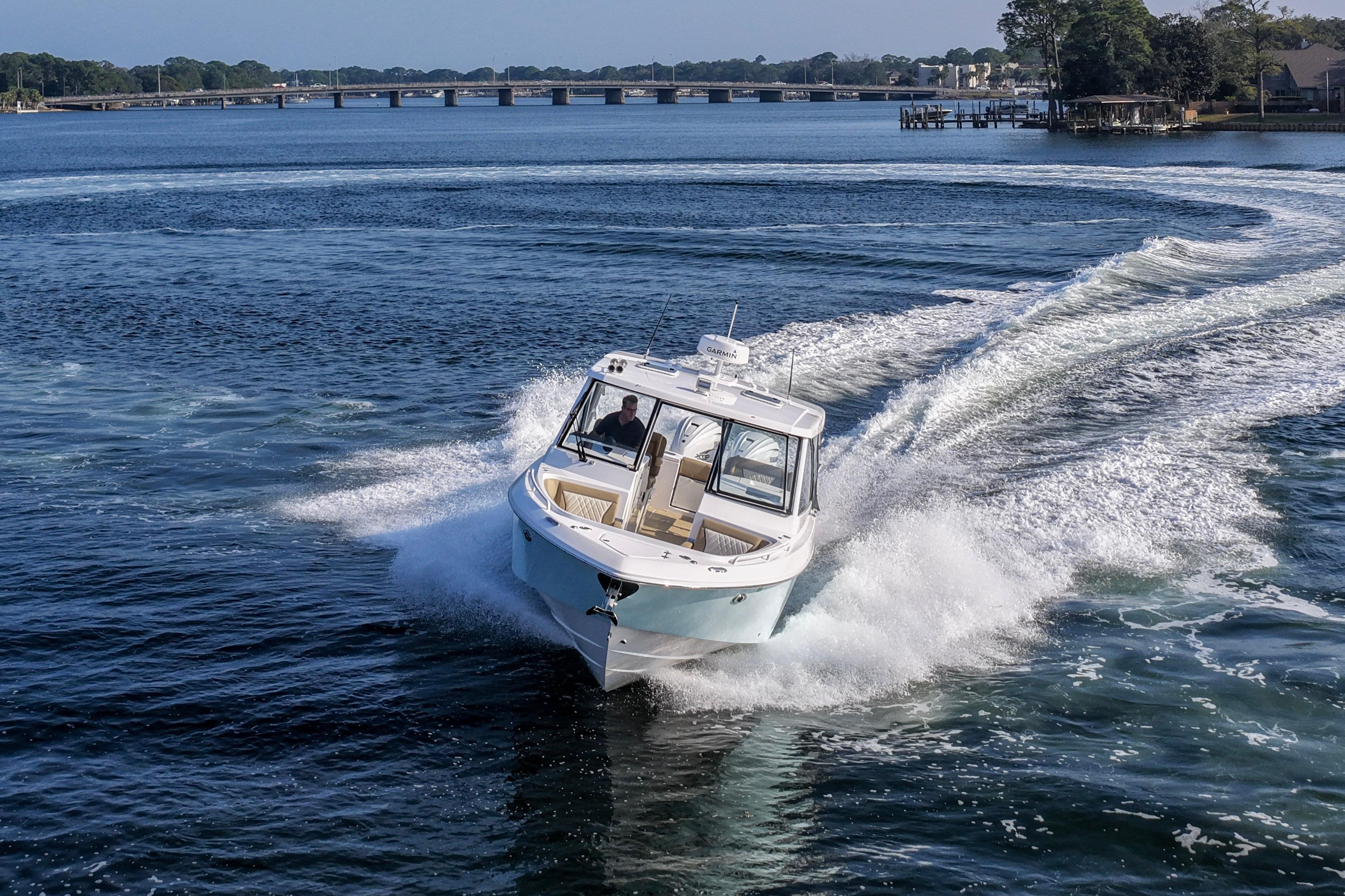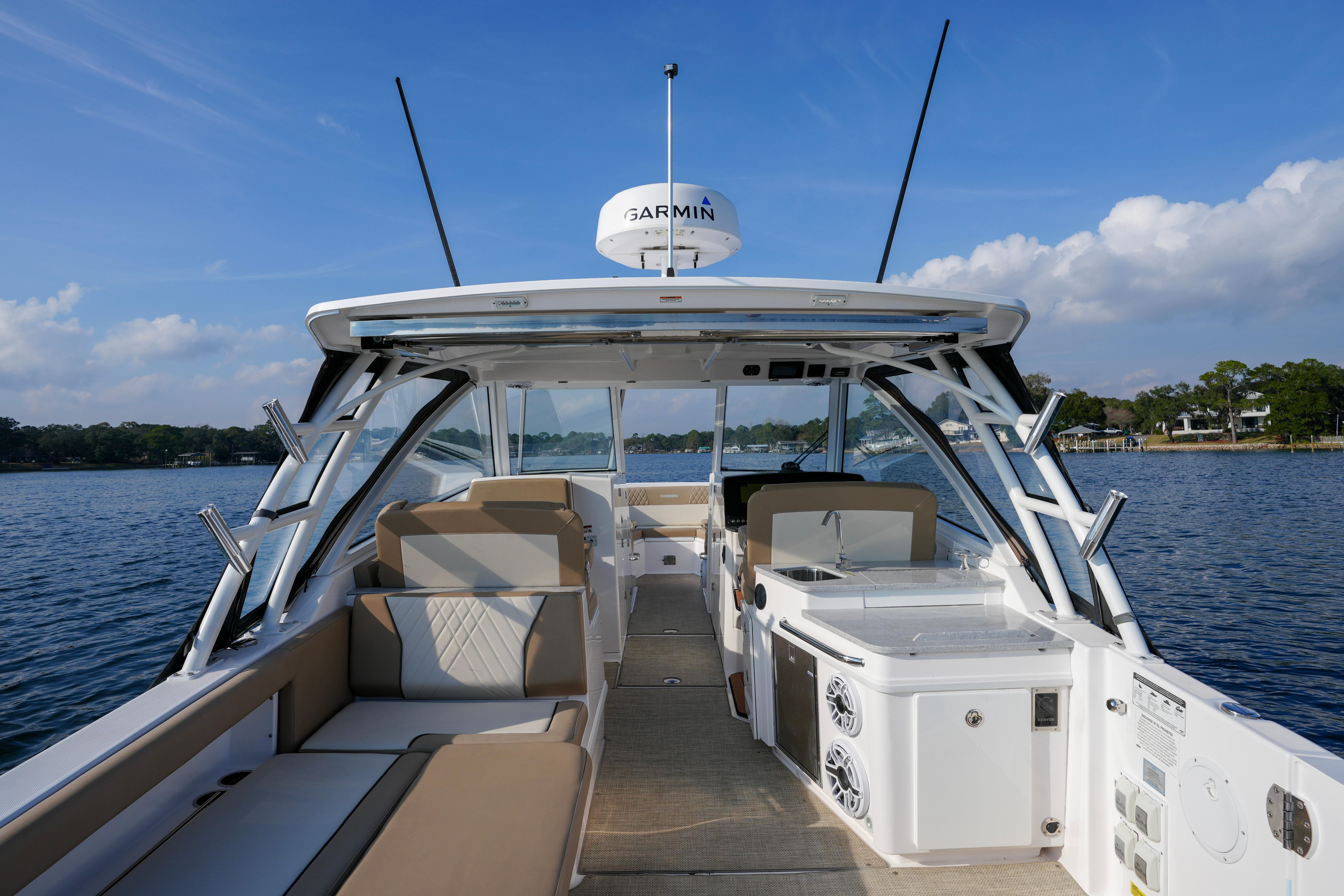Whether you’re cruising with the kids, hosting friends at the sandbar, or running offshore in less than perfect conditions, the 340DC offers a smooth, confident ride and a layout that keeps everyone comfortable and secure. Yamaha Helm Master joystick controls make docking and close-quarters handling easy, even for less experienced captains.