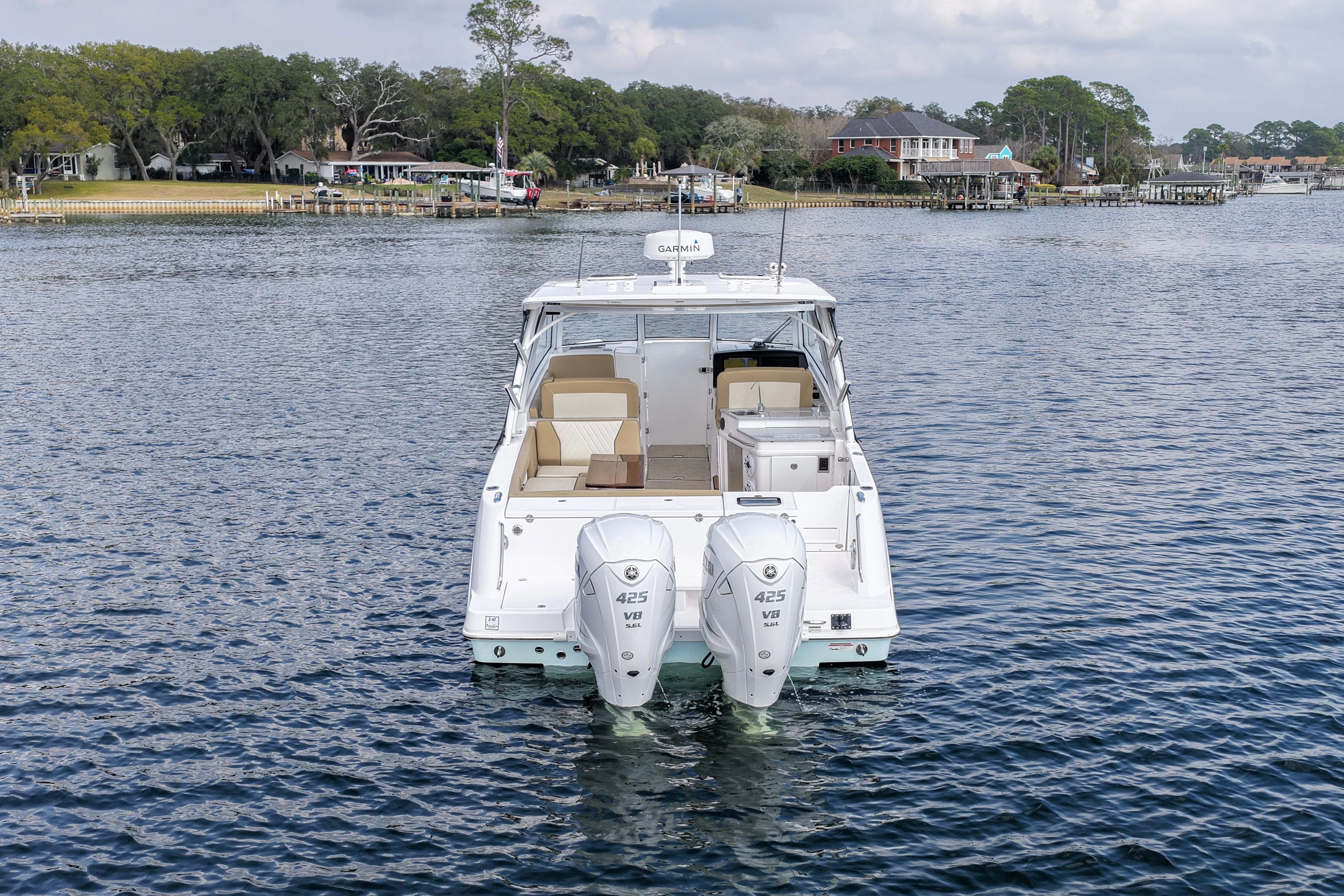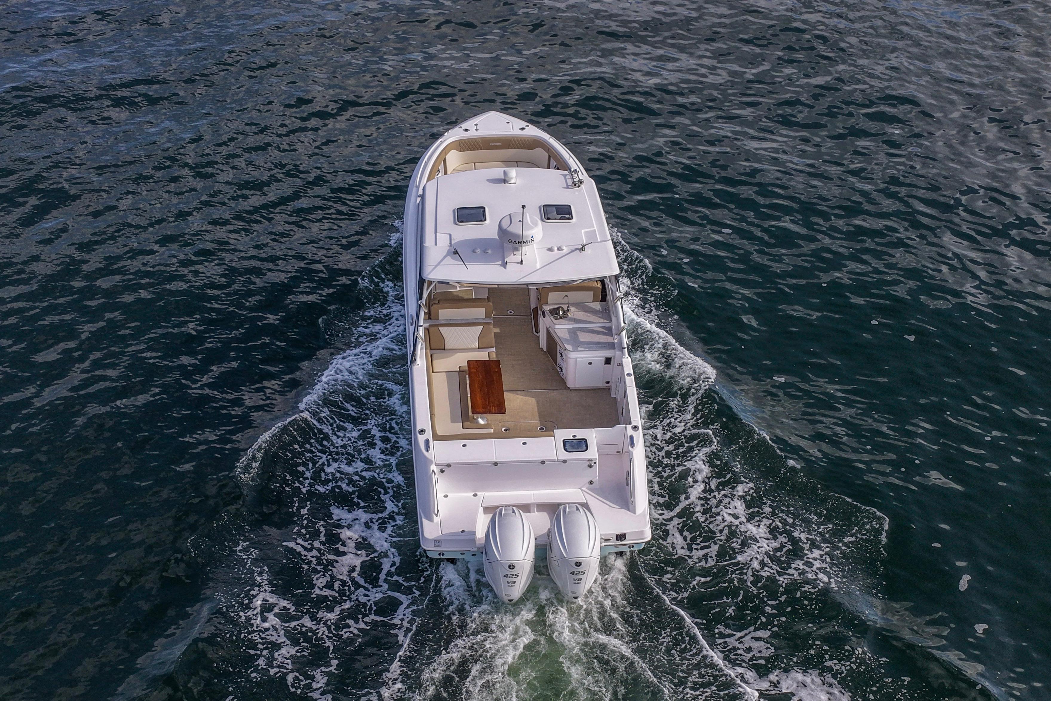 Twin Yamaha 425HP XTO Offshore outboards provide strong acceleration, excellent efficiency, and quiet, refined power. The deep-V hull and wide beam create a stable platform underway and at rest, inspiring confidence in a wide range of sea conditions.