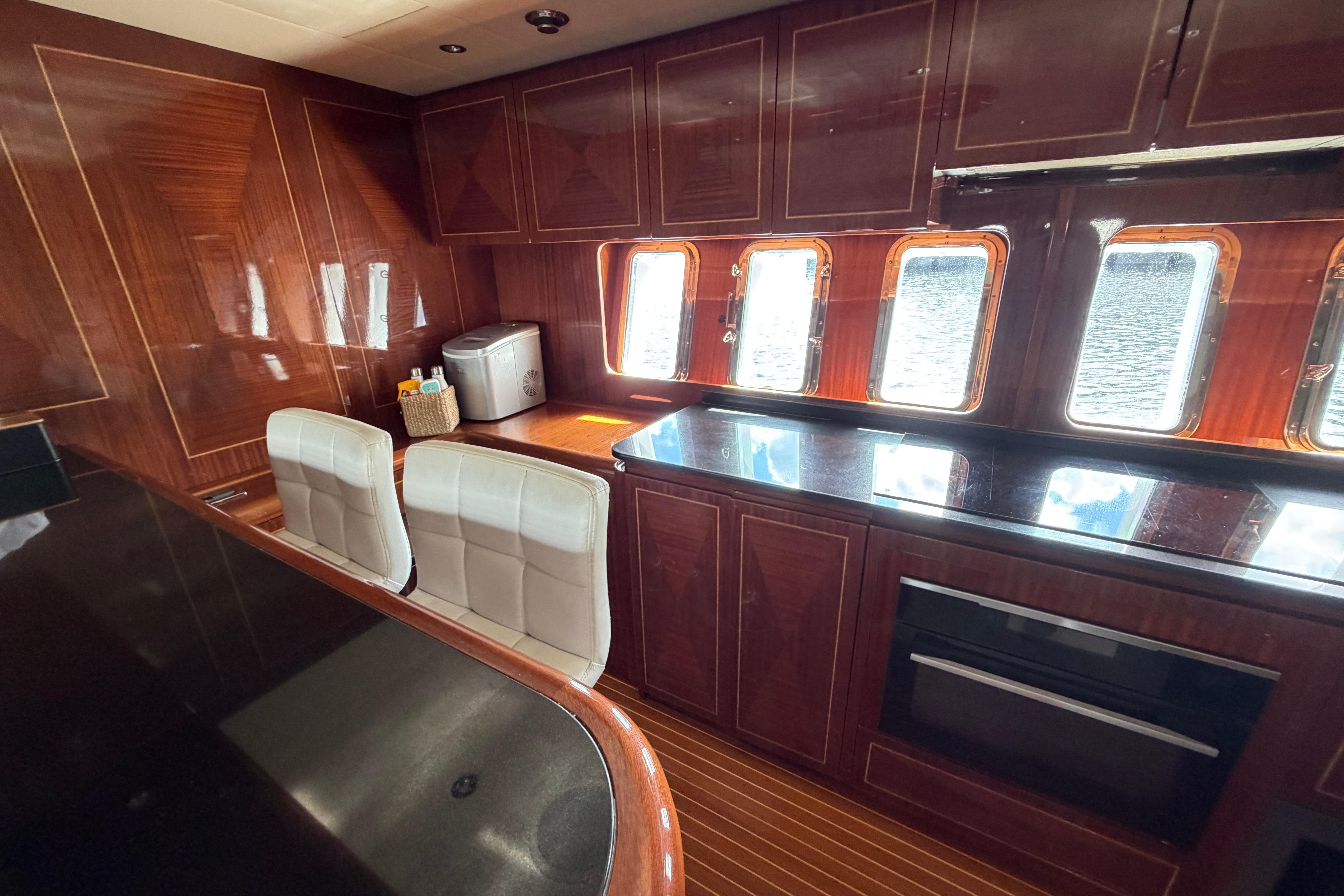 The yacht benefited from an extensive refit completed in 2022, which included significant interior upgrades, updated soft goods, refreshed galley appliances, modernized systems, and numerous mechanical and technical improvements throughout the vessel. This refit substantially enhanced both functionality and onboard comfort, bringing the yacht in line with contemporary expectations while preserving her iconic Mangusta styling.