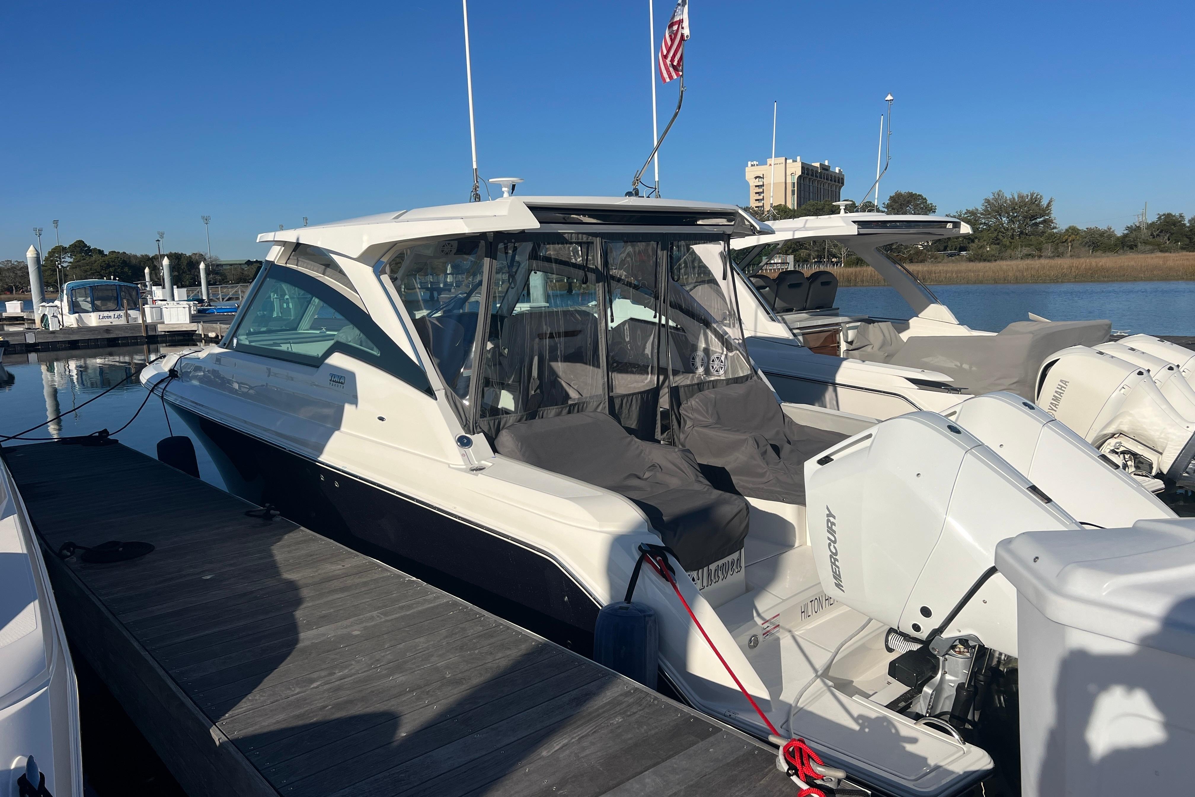 Mercury propulsion offers power and performance both Captain and guests are sure to appreciate. Integrated electronics and Garmin Marine Navigation Systems complement the package, providing intuitive and functional ease of use.