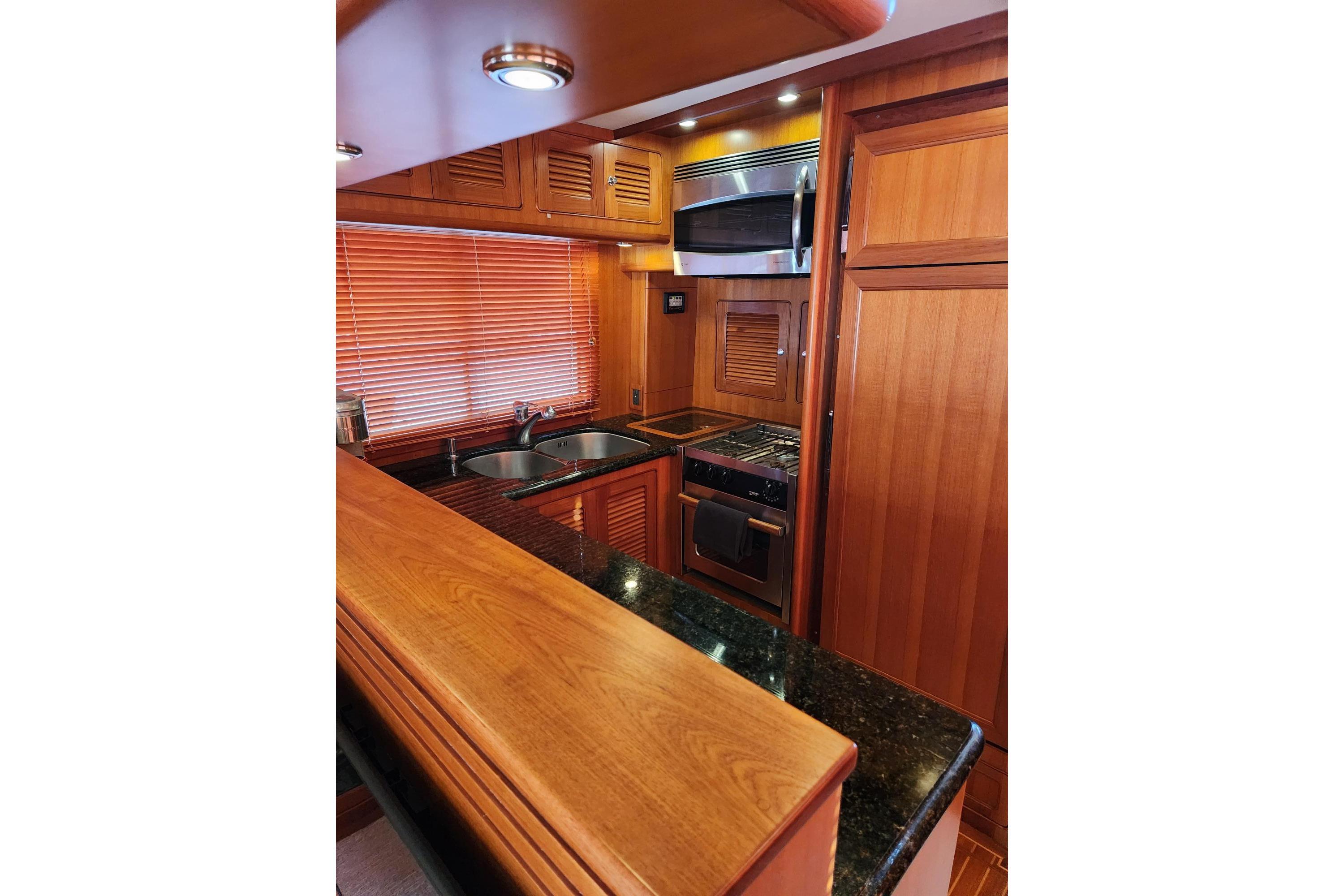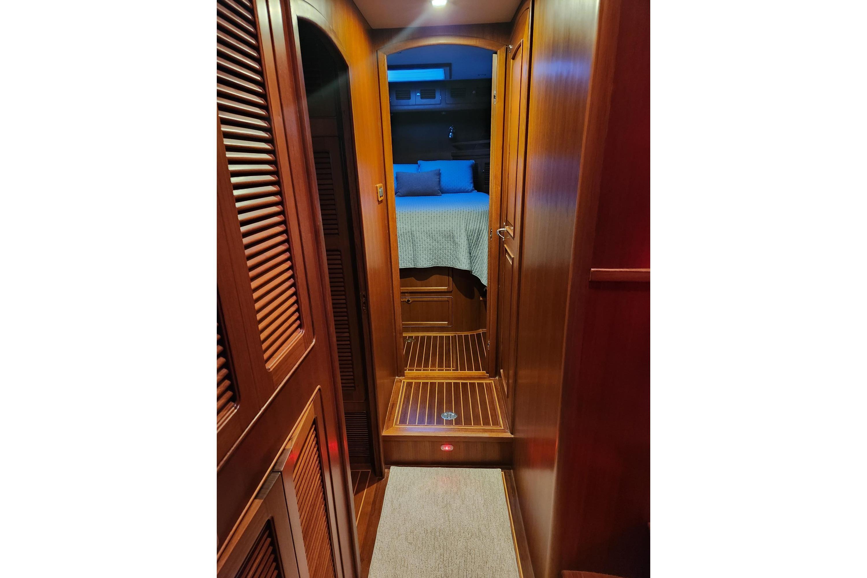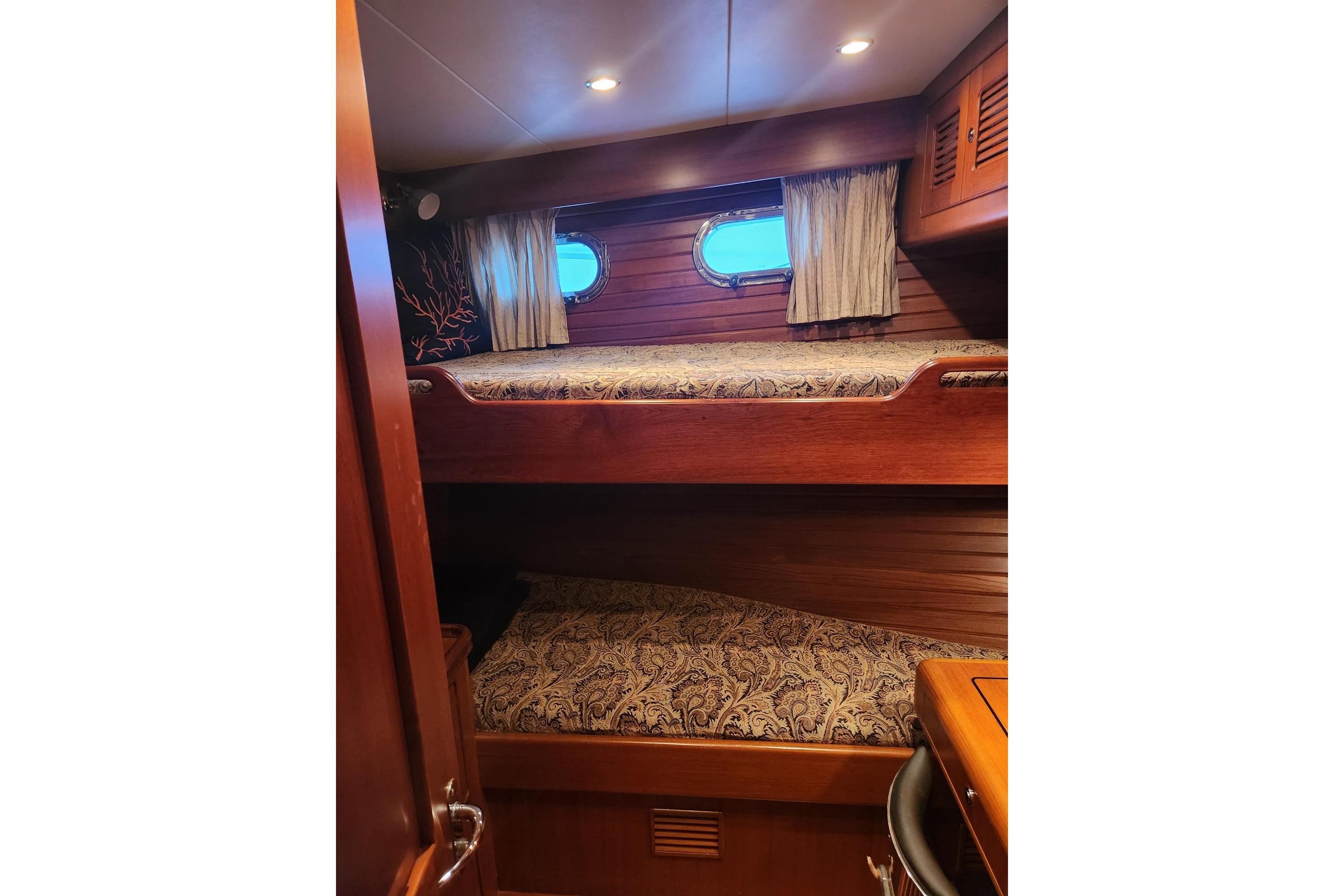 Her full-displacement, hand-laid fiberglass hull with deep forefoot and protective keel delivers exceptional stability, efficiency, and confidence in all conditions. A single reliable diesel engine, paired with impressive fuel capacity, allows for extended cruising at economical speeds, while a well-engineered engine room provides outstanding access for maintenance and systems management.