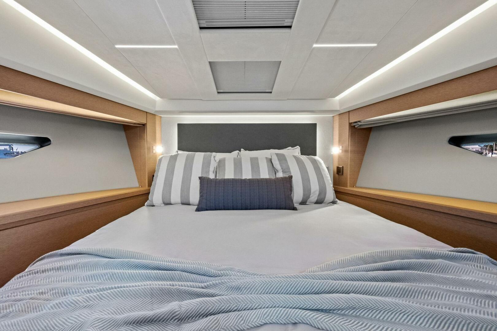 From a performance standpoint, NO PATIENCE delivers exactly what today’s owners demand - Upgraded twin Volvo IPS650s with extended warranty paired with Volvo’s Dynamic Positioning System for precise handling, excellent fuel efficiency, and stress-free docking in close quarters. Whether holding position off a beach, maneuvering in tight marinas, or cruising at speed, this boat inspires confidence at the helm.