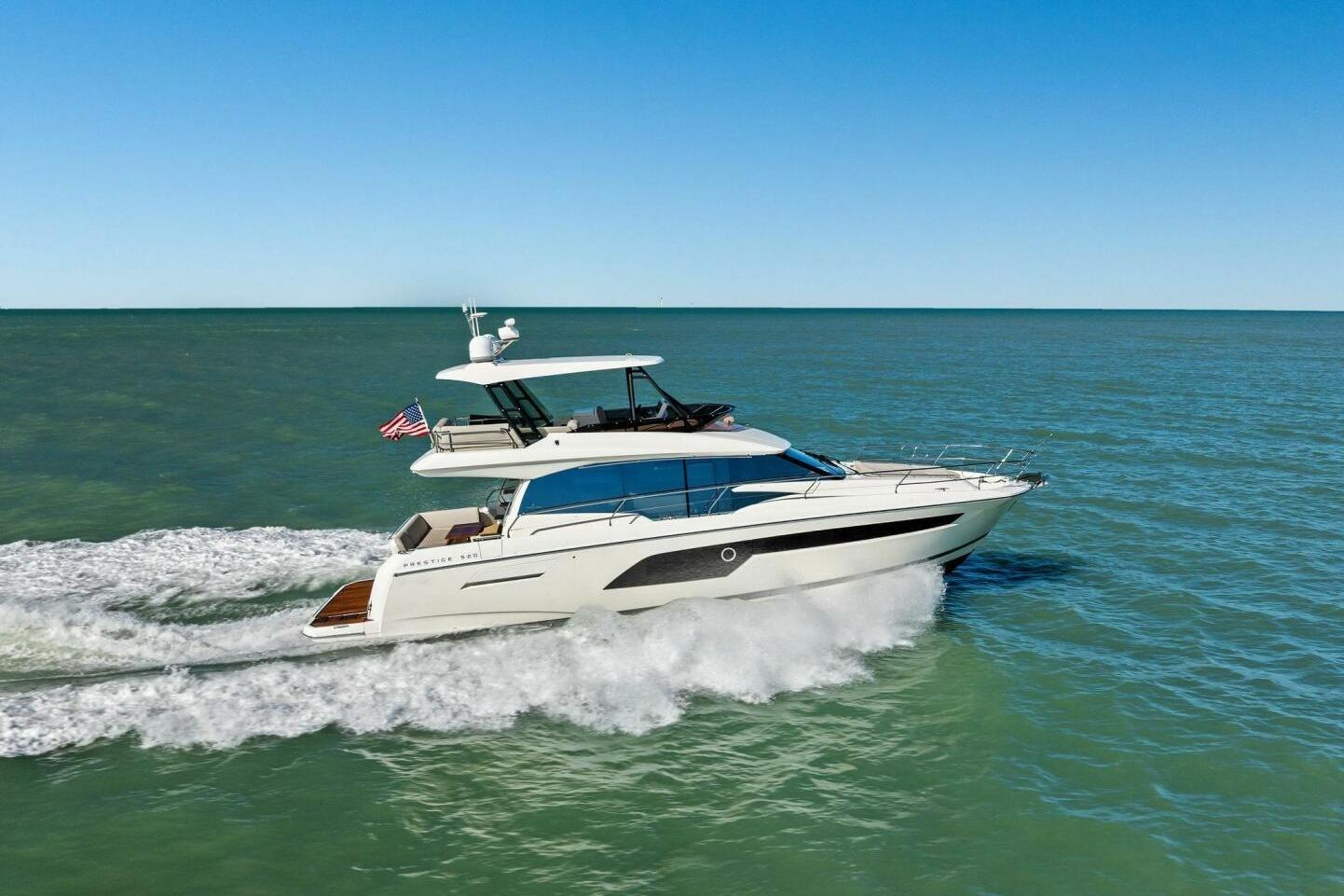 2022 Prestige 520 Fly “NO PATIENCE” is a prime example of well cared for yacht that effortlessly blends modern luxury, intelligent design, and confident performance. This 520 Fly is defined by her abundance of natural light, open sightlines, and a layout that feels far larger than her length overall. Expansive salon windows, seamless indoor-outdoor flow, and multiple entertaining zones create an atmosphere that is both refined and relaxed—ideal for long weekends aboard or extended cruising with family and friends.