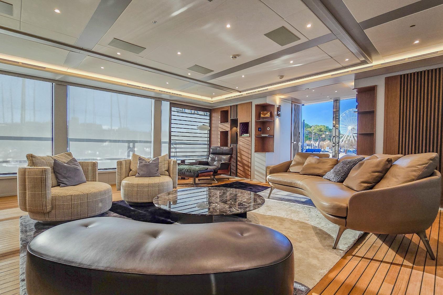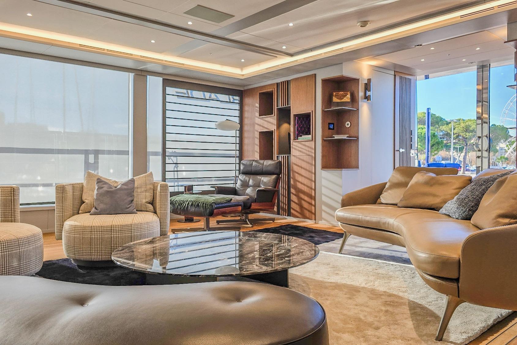 After her most recent multi-million 16-month refit in 2024-2025, she now features an outstanding marine blue hull colour with chrome finish. In addition, her current Owner well thought-out a complete redesign of the interior by Riccardo Solari with the assistance Michela Reverberi and Minotti new furniture.