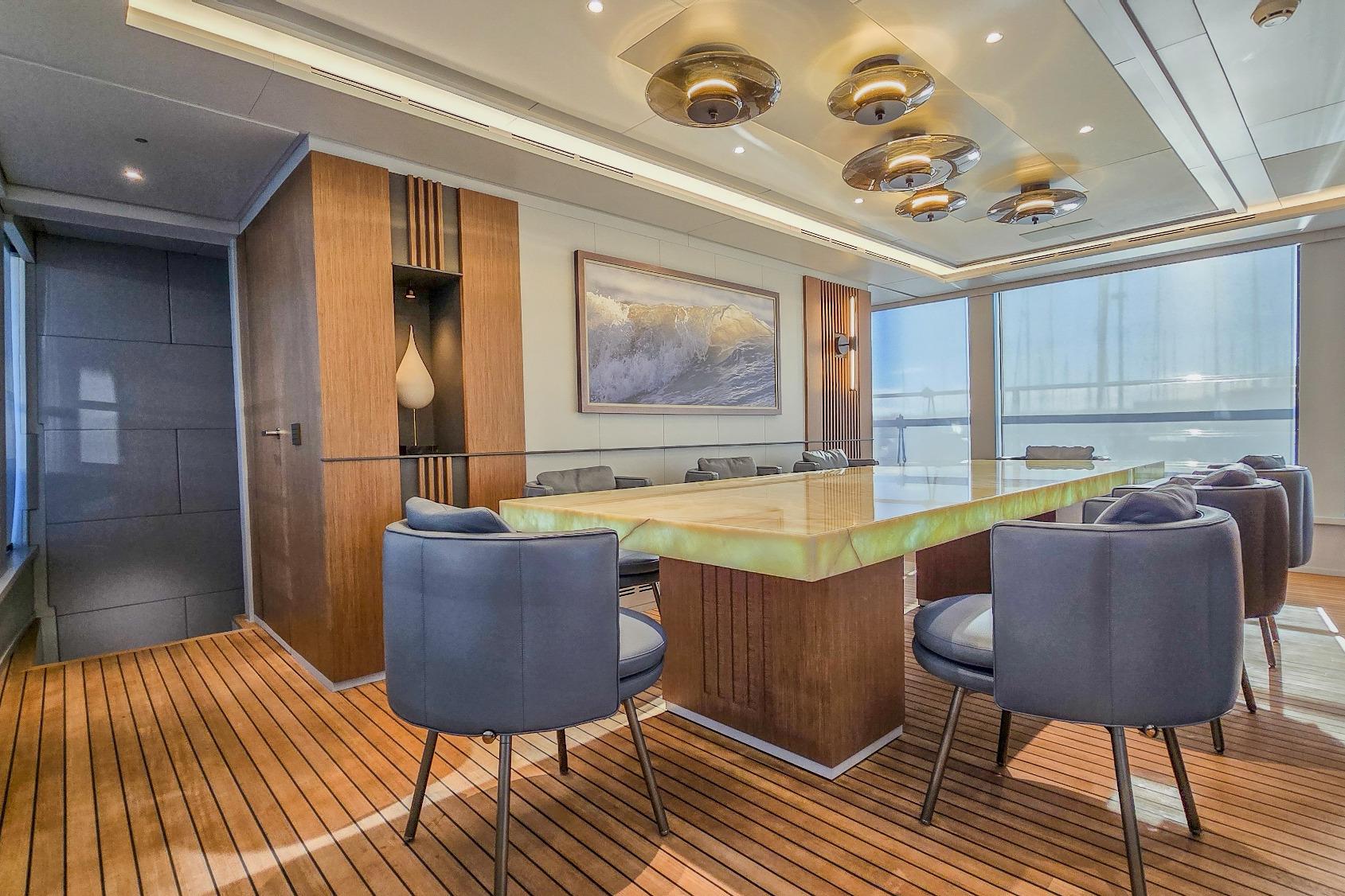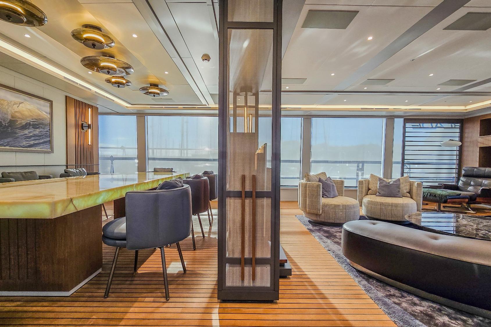 Other notable features include underway and at-anchor fin stabilizers to ensure a comfortable experience even when stationary, air conditioning and Wi‑Fi connectivity available throughout