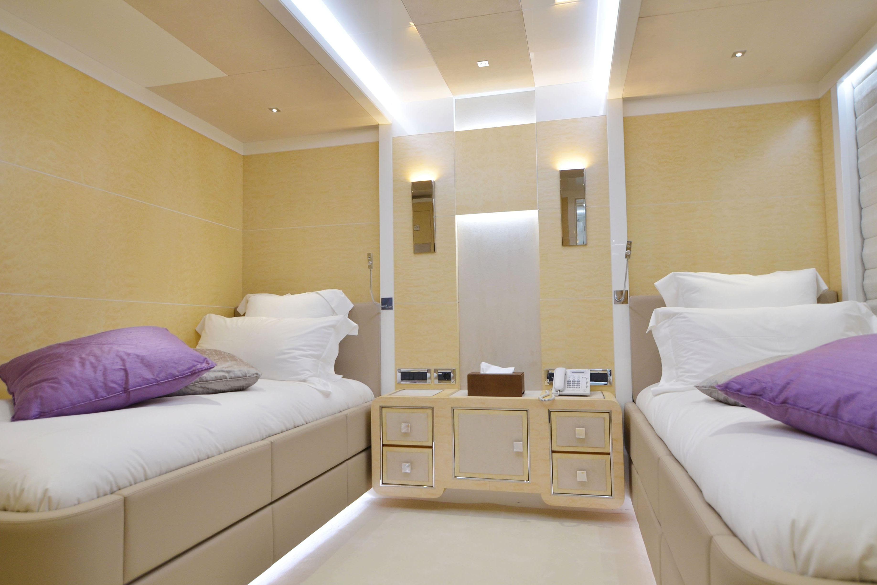 The yacht operates with a professional crew of 10, accommodated in five crew cabins, ensuring seamless service and attention to detail throughout your time on board.