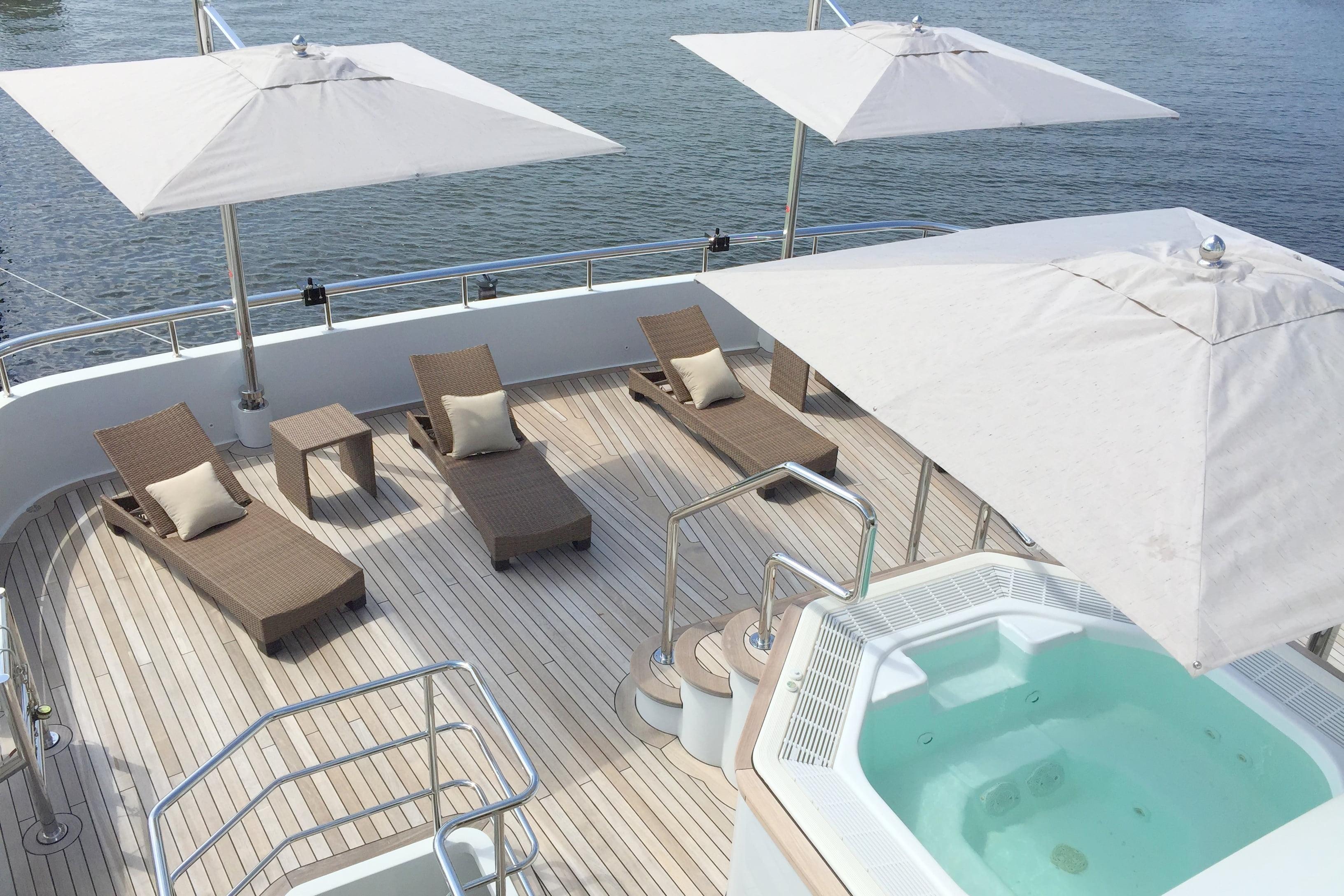 Designed to host up to 12 guests in supreme comfort, Jade 959 features six beautifully appointed cabins, including a rare configuration with two full-beam master suites. This thoughtful layout ensures exceptional privacy and comfort for all aboard.