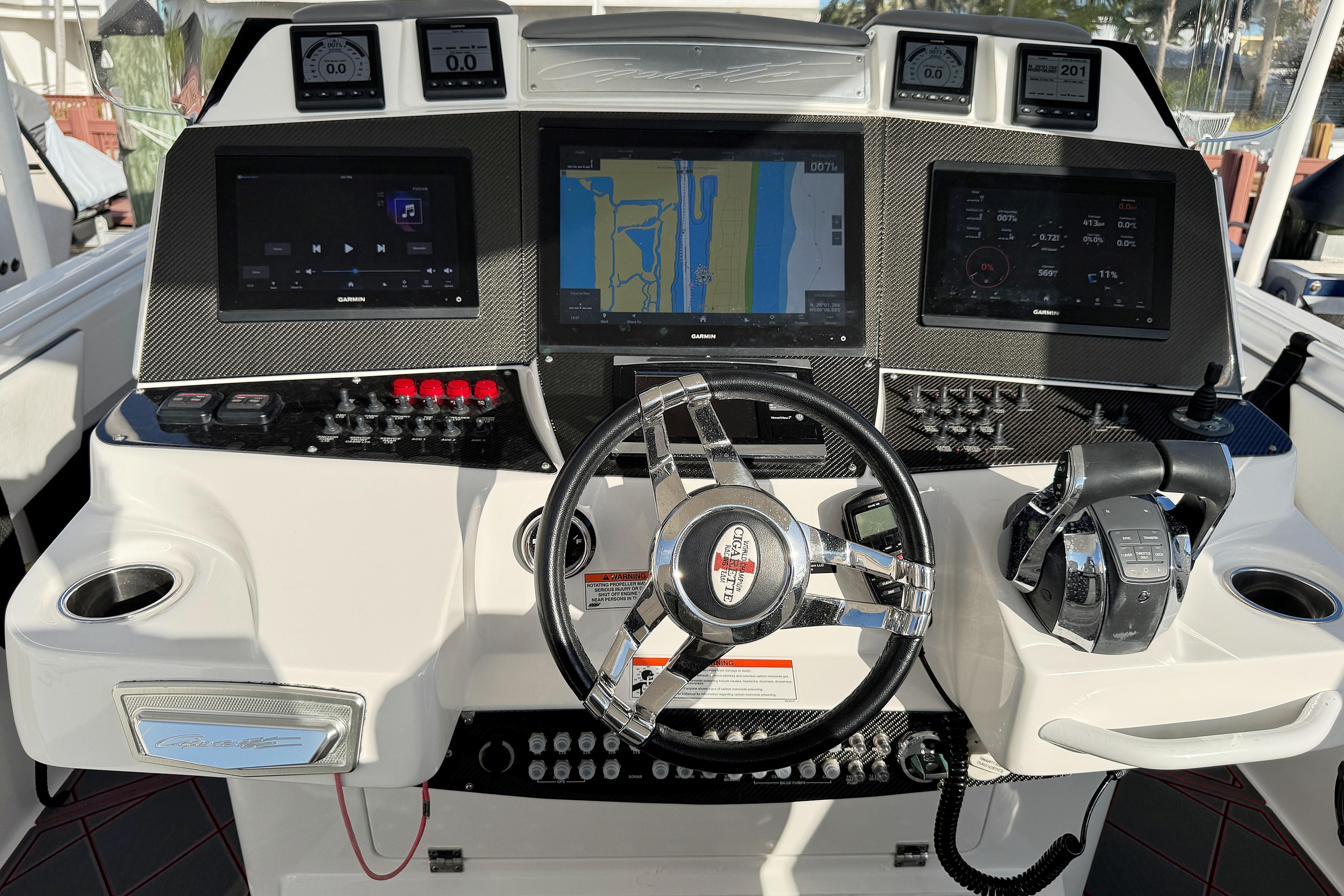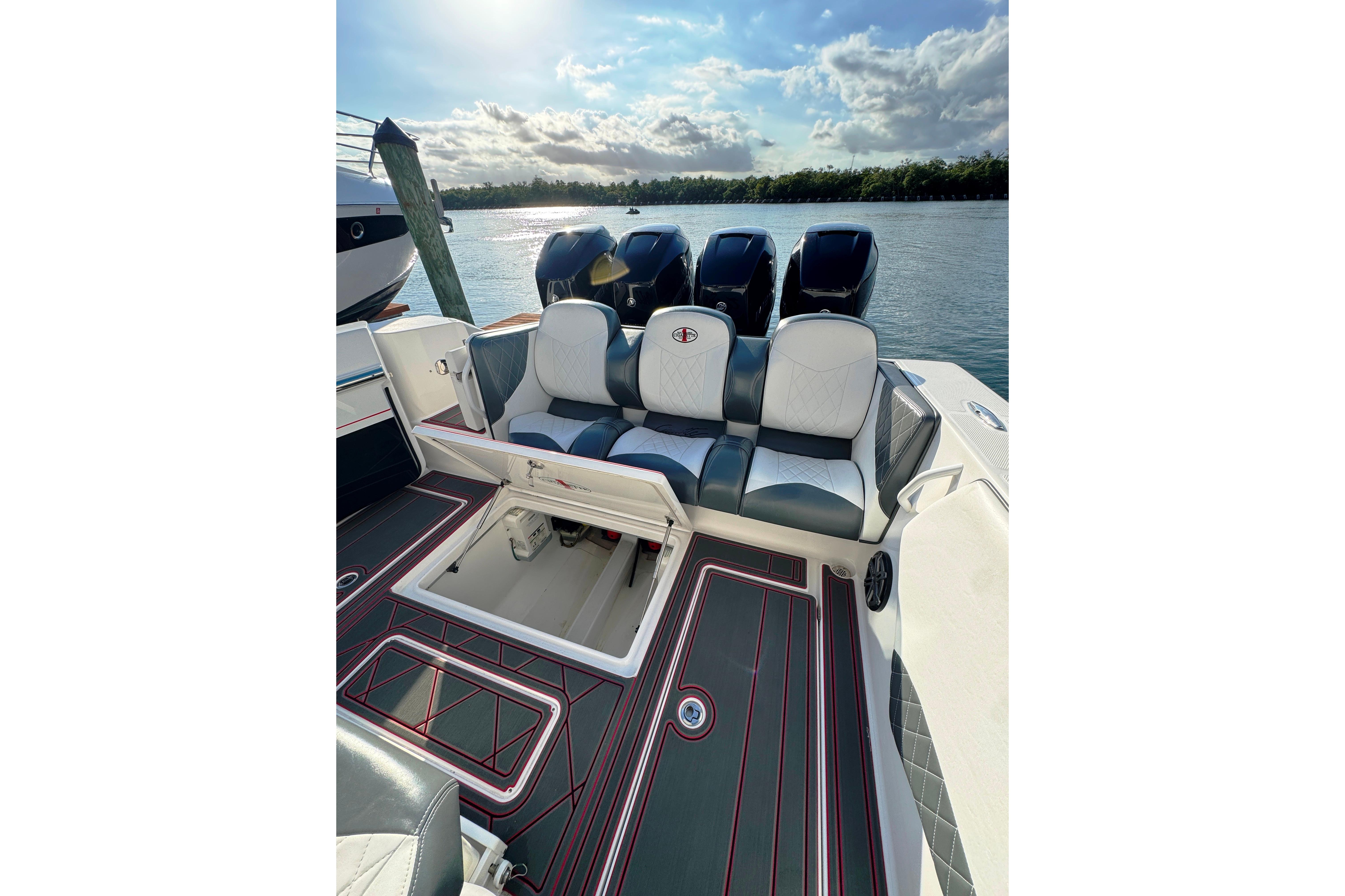 Powered by quad Mercury 350 Verado outboards with only 390 hours, this boat offers impressive acceleration, smooth cruising, and strong top end performance. The engines have been fully maintained, the boat has been lift kept, and it remains in top notch condition. It is truly turnkey for its next owner.