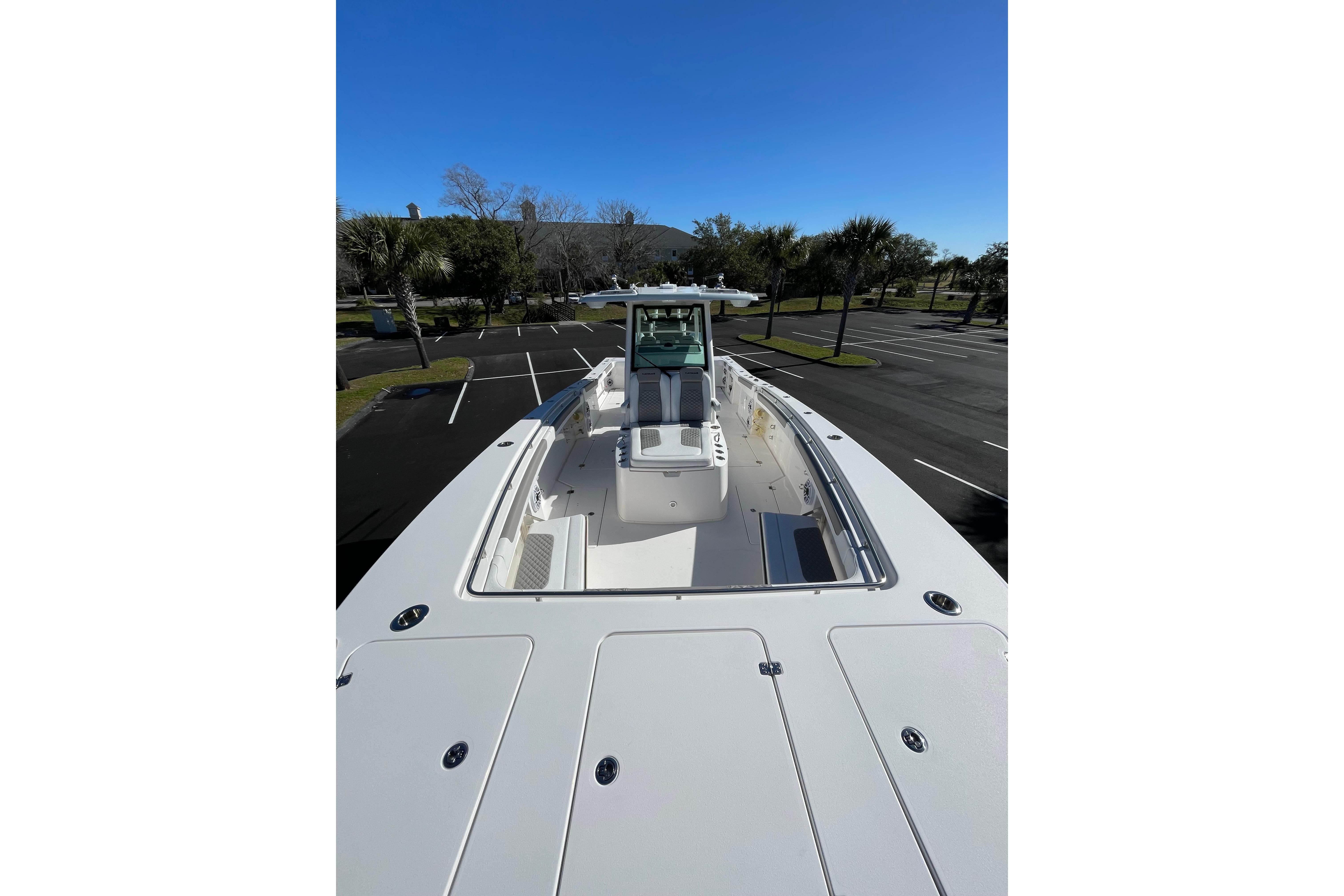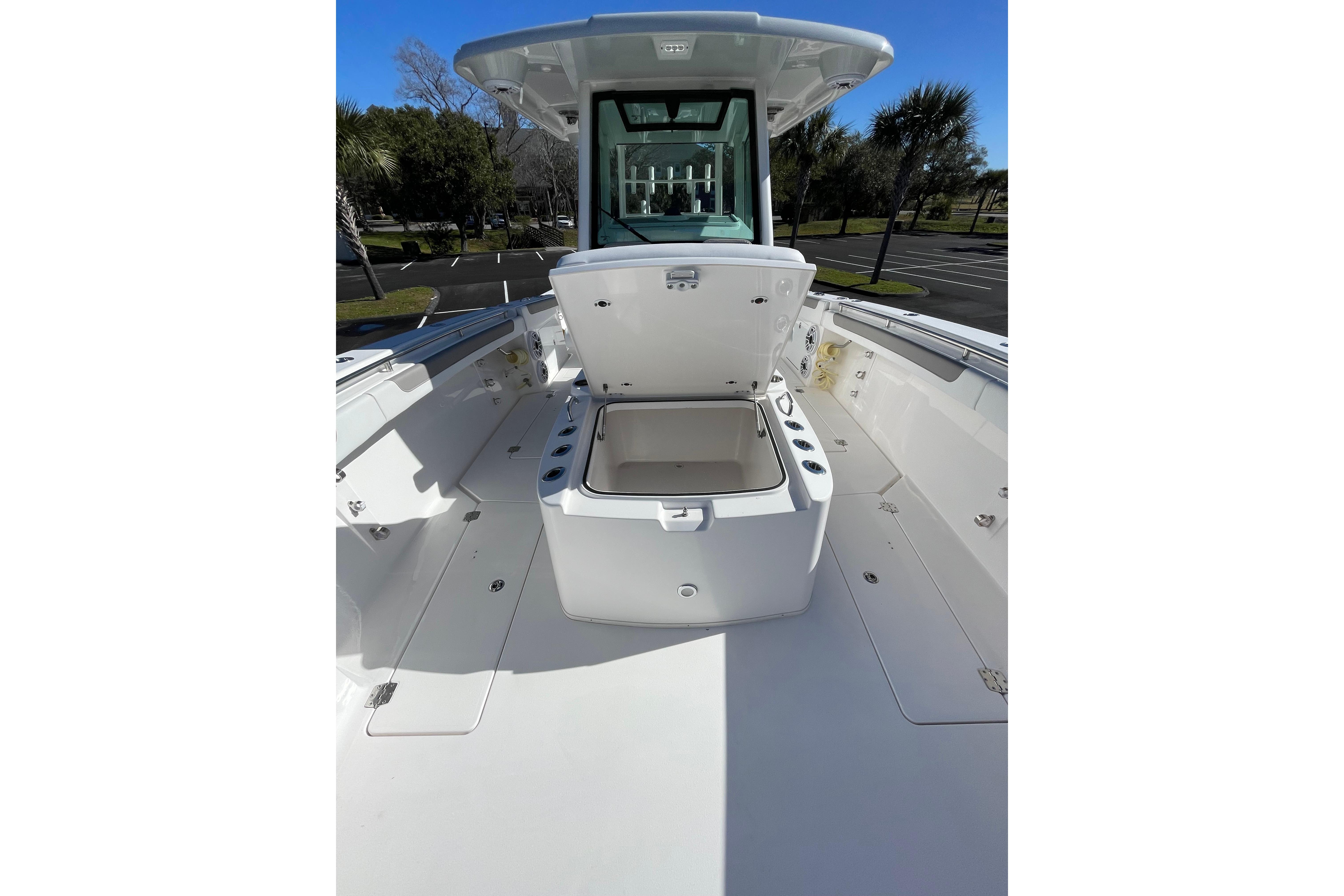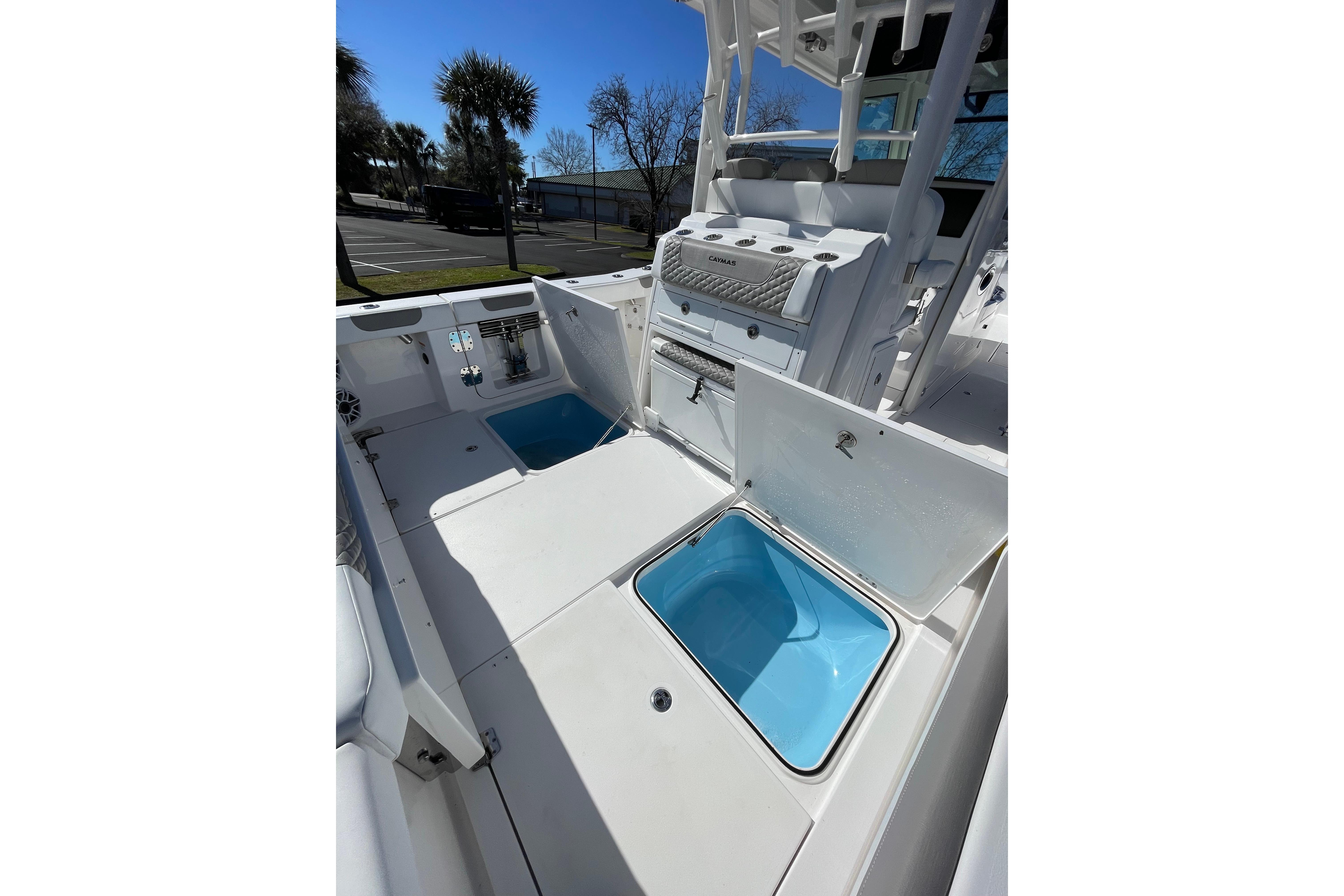 This 2024 Caymas 34 CT is a highly optioned offshore-capable center console, finished in Dove Gray with a full color-matched hardtop underside and powered by twin Mercury Verados. Built for serious fishing and long days on the water, this boat blends performance, comfort, and premium hardware throughout.