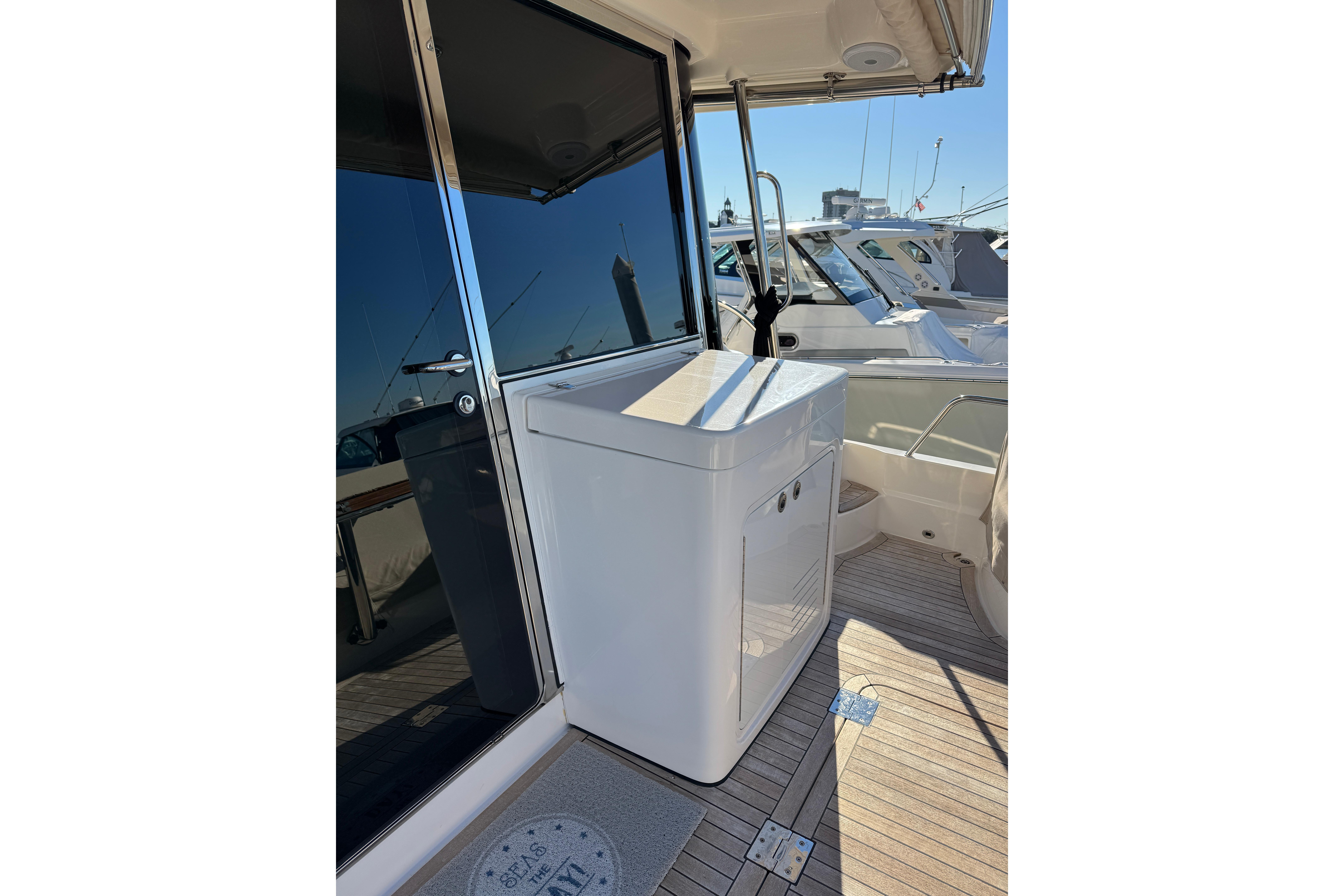 Performance & Handling: Powered by Twin Volvo Penta D8-IPS700 (550hp) engines with only 119 hours. The joystick control and "Skyhook" dynamic positioning make it exceptionally easy to dock, even in challenging currents.