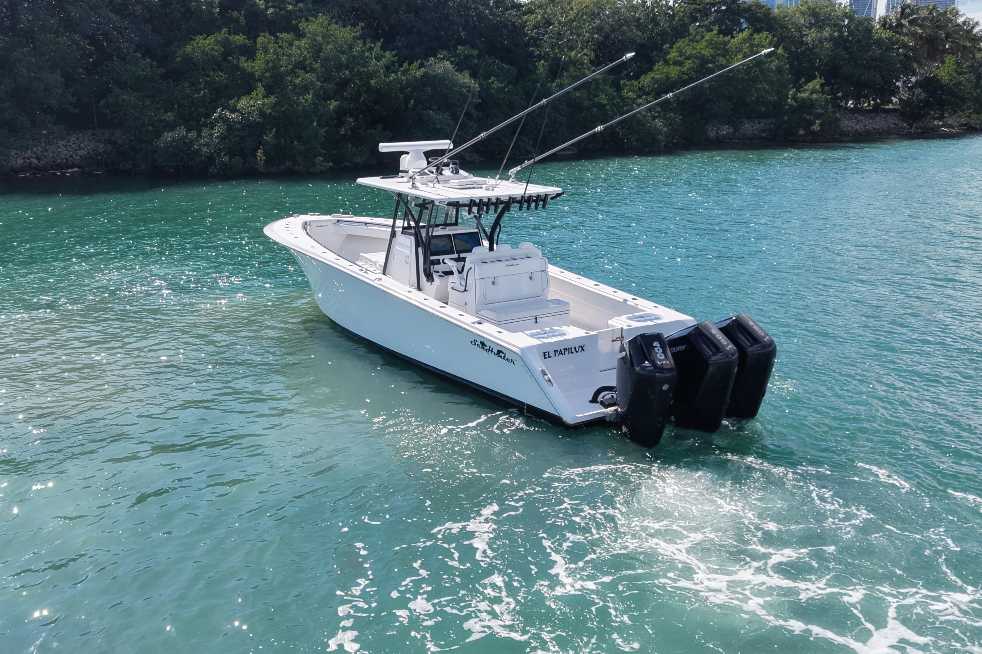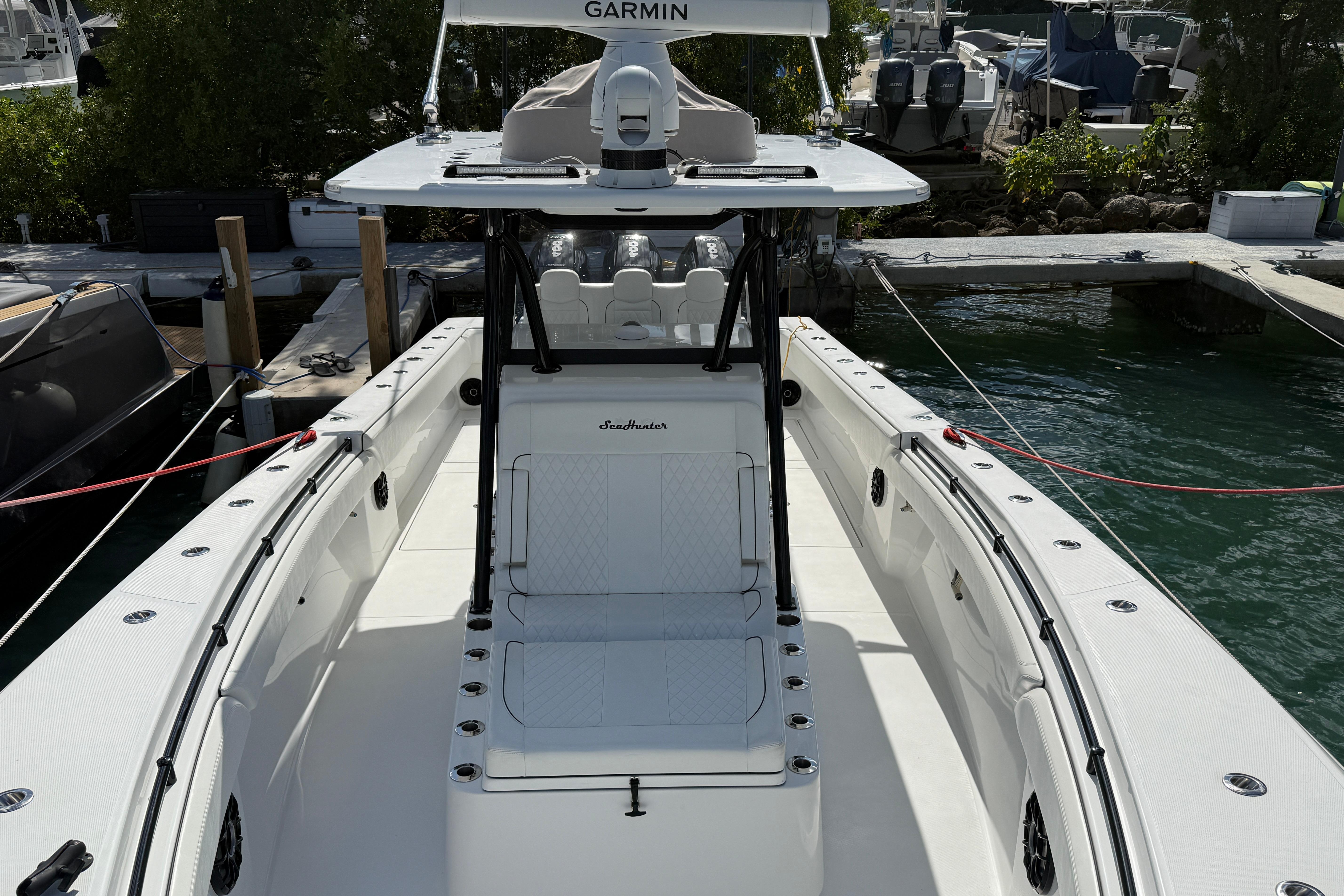 With the classic SeaHunter deep V and oversized chines, the Tournament 35 is an excellent mid-30 foot center console that offers a top-of-the-line comfortable, dry ride. At 35 feet long and a beamy 11.5 feet, this boat offers more room & storage than any other center console in this size class. Its wider beam means more power options, more fuel capacity and more interior room than ever before. The boat also comes standard with two 50-gallon and one 75-gallon live well. 430 gallons of fuel capacity means that this offshore center console can go as long as you do.