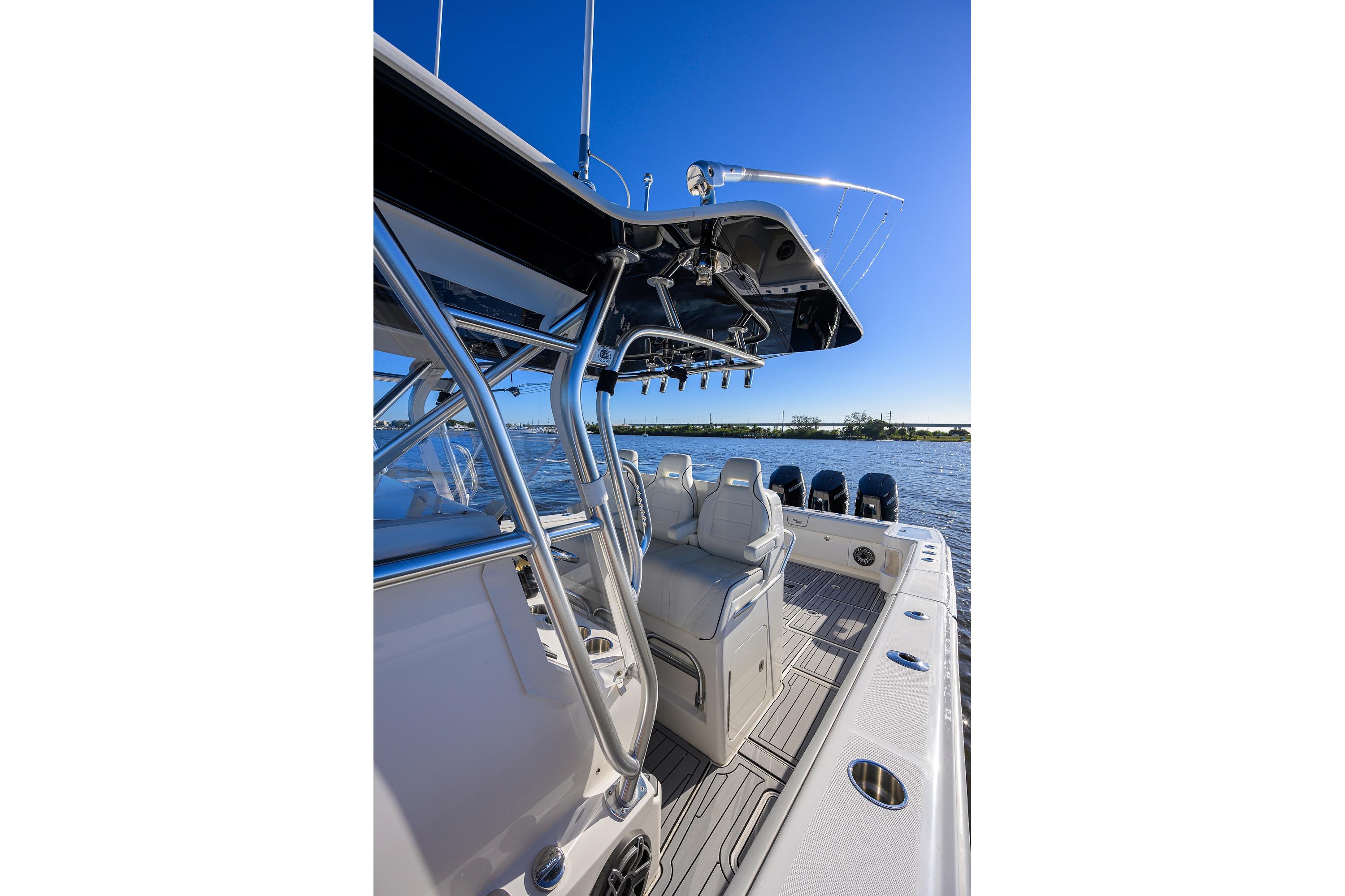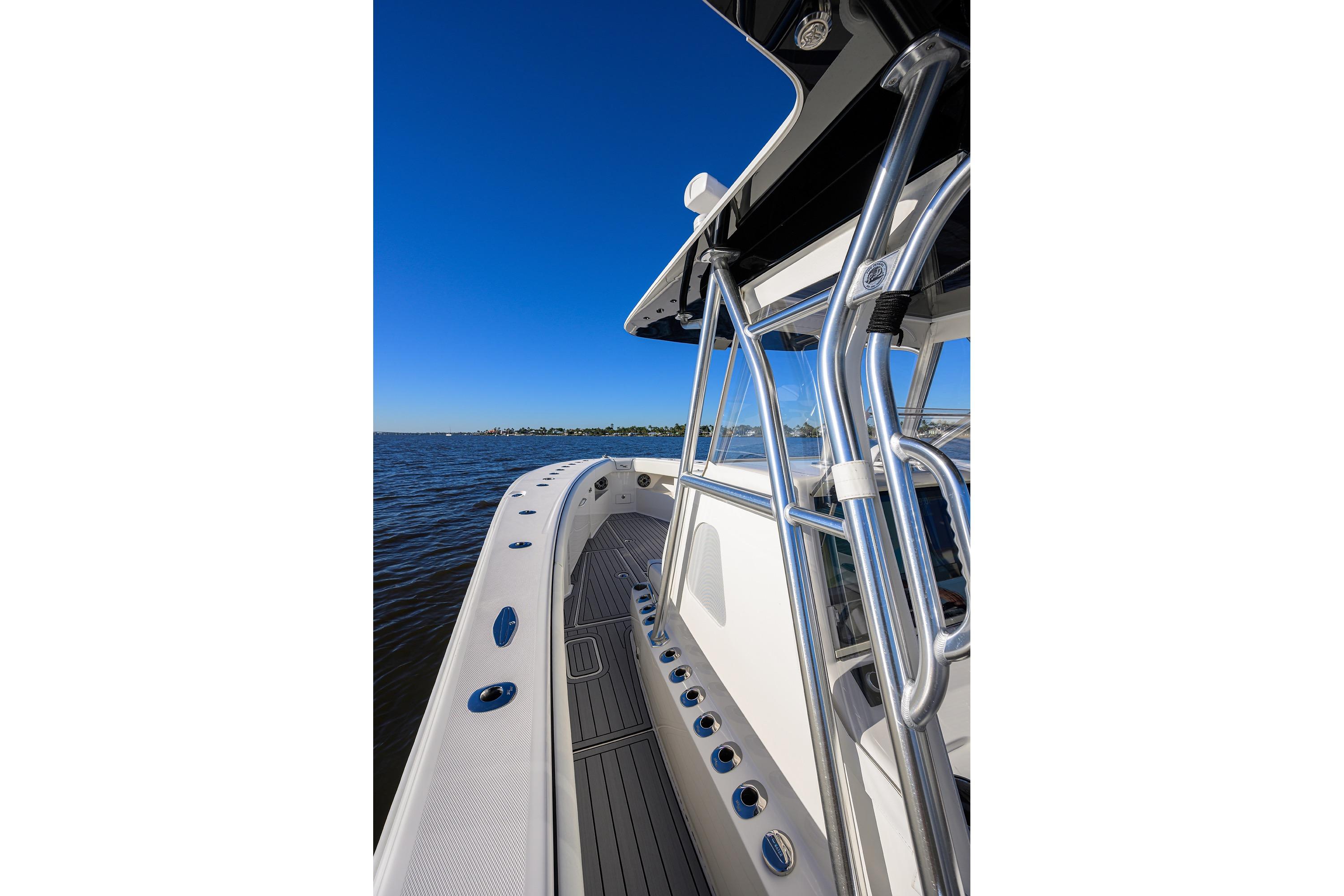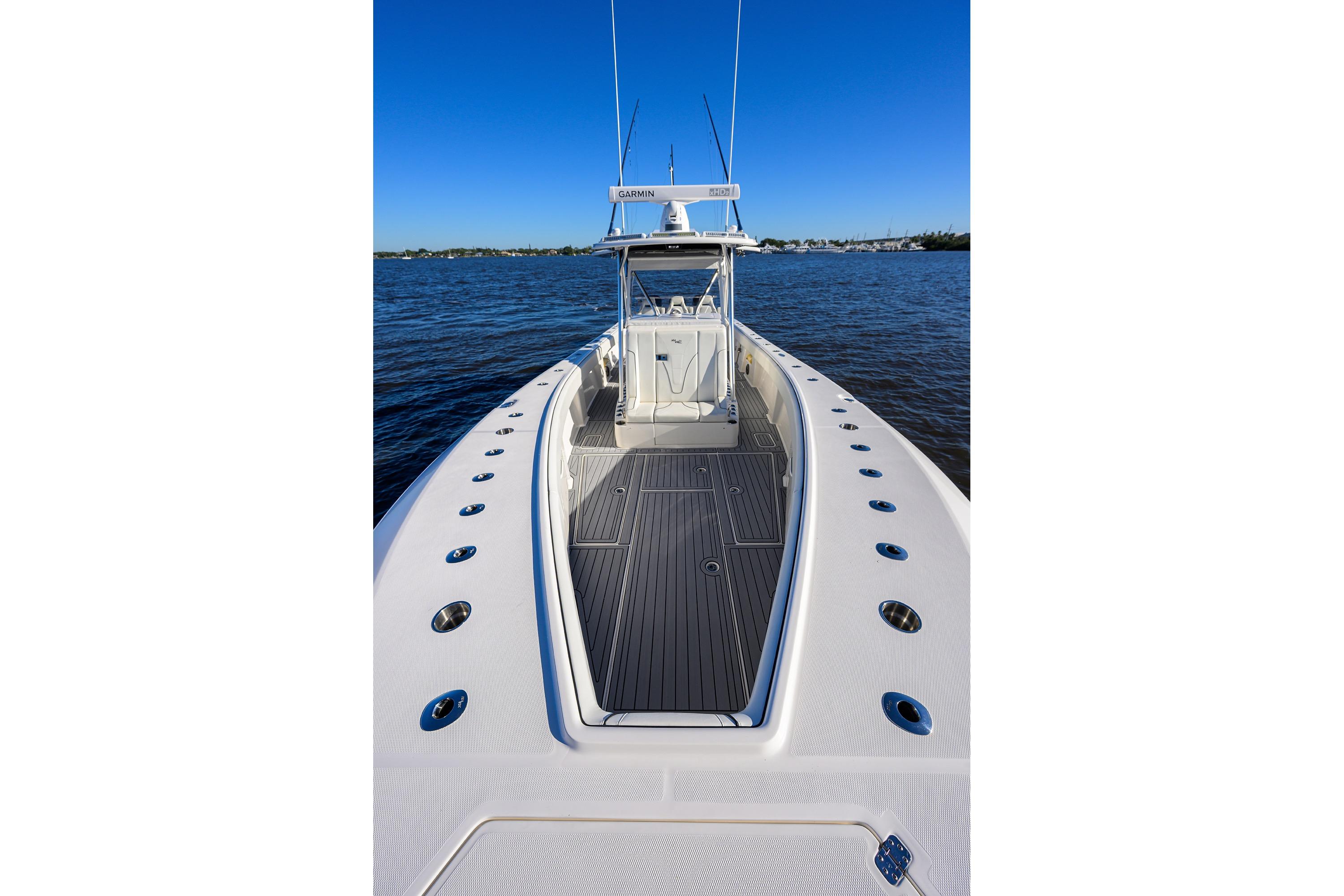 - Additional Options for Listing: Often includes white hull with black gelcoat bottom, powder-coated aluminum accents, second station/tower, bow thruster, windlass, and luxury seating. Pre-owned 2023 models may have low hours and warranties extending to 2030.