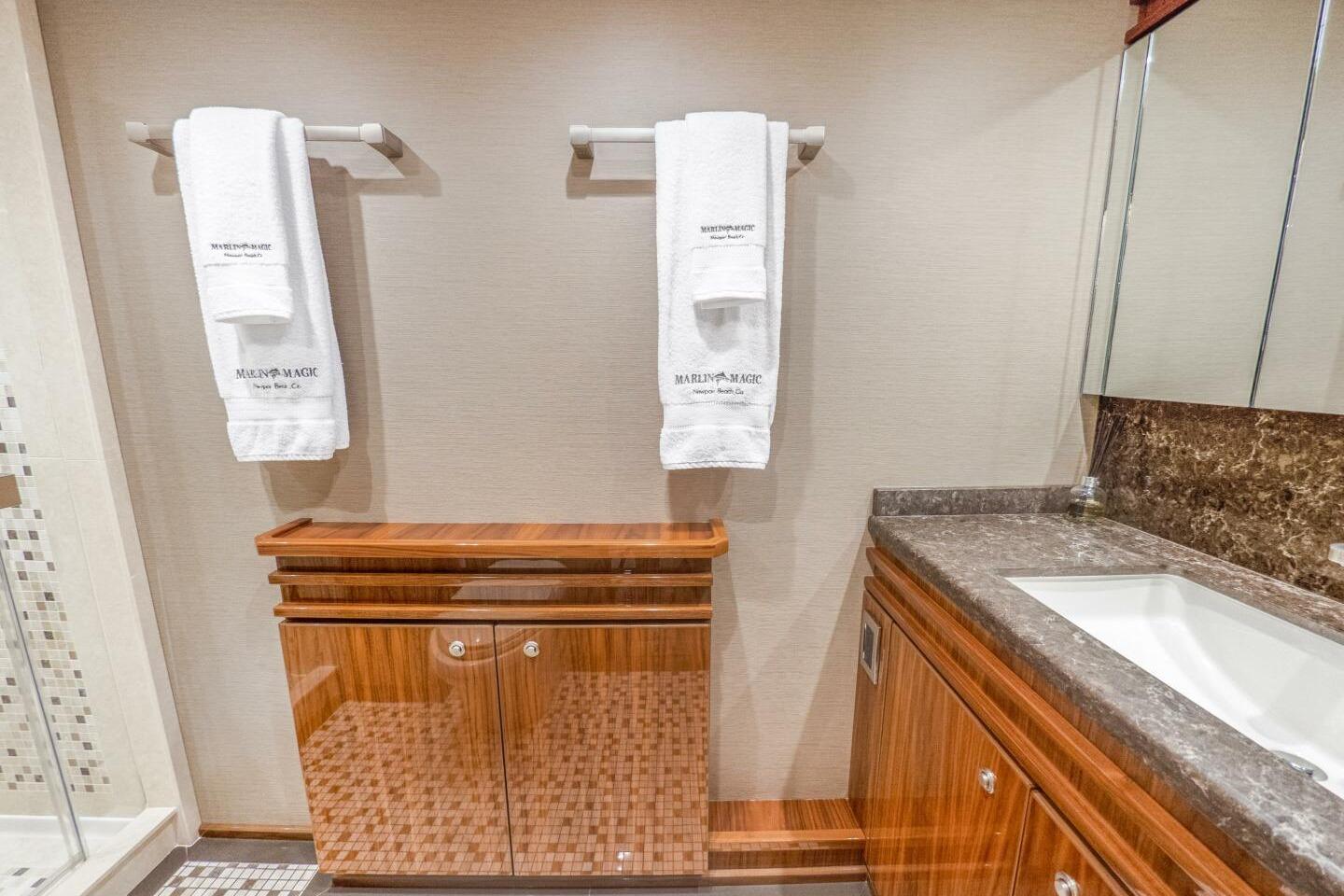 MARLIN MAGIC is a 2021 Viking 92 Skybridge, professionally maintained with a full-time American captain, engineer, deckhand, and stewardess. She is the last of the largest Vikings ever built, a flagship platform that cannot be duplicated today. Featuring the highly sought-after Skybridge design, she offers excellent visibility and added versatility without sacrificing the clean lines Viking is known for. She offers five guest staterooms, all ensuite, plus crew quarters and an additional berth in the pantry for nine total berths, making her well suited for extended cruising, entertaining, or tournament use. This is a serious fishing machine, equipped with a Omni sonar, Tuna Tubes, and Release Fighting Chair to replace Cockpit Bait Tank which is NOT Included in the Sale. She cruises comfortably at 26 knots and is stabilized with Seakeeper 35, delivering an extra smootride offshore. Extended engine warranties are in place, adding peace of mind for the next owner. Opportunities to acquire a Skybridge Viking of this size, capability, and condition are rare—MARLIN MAGIC stands alone in the current market.