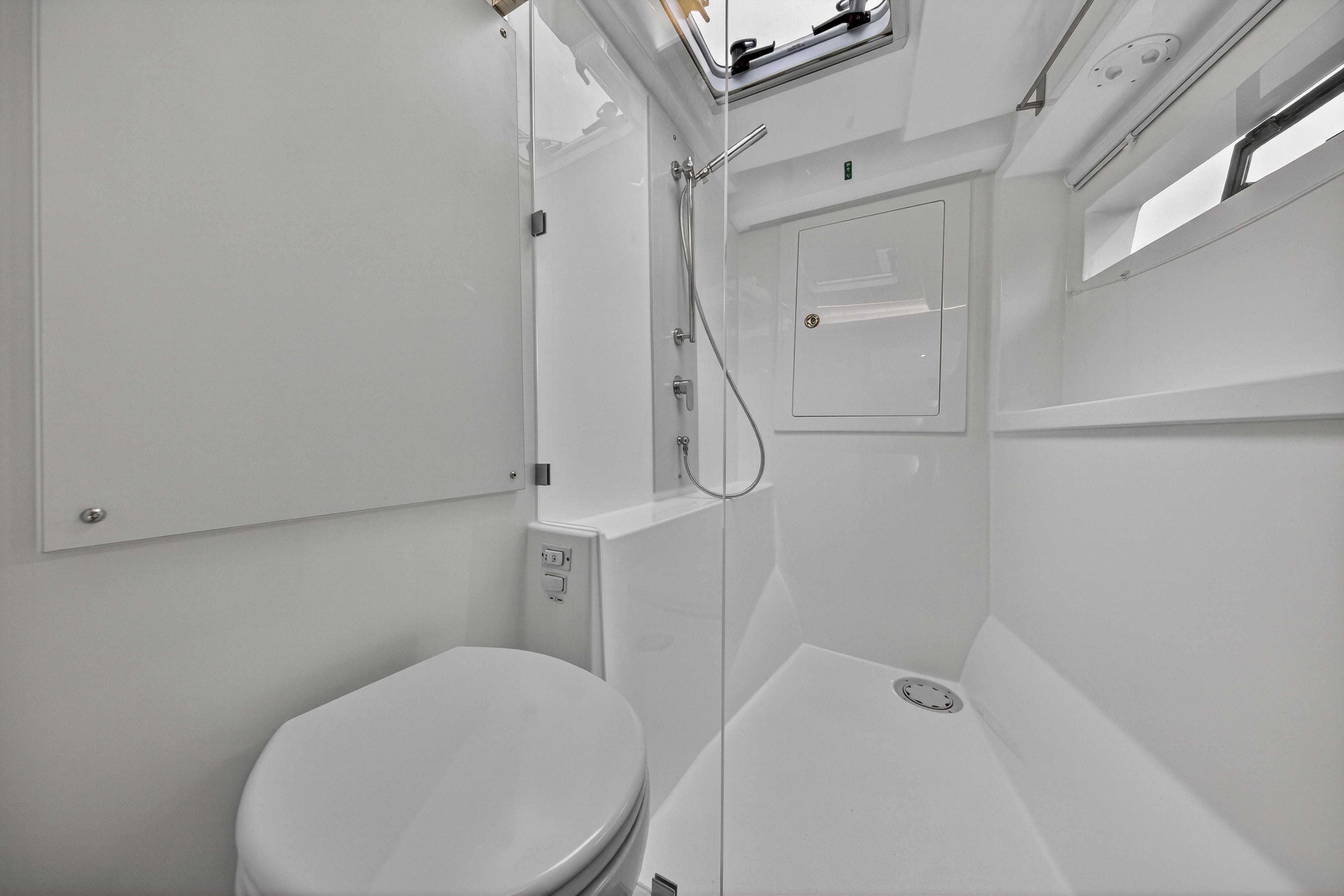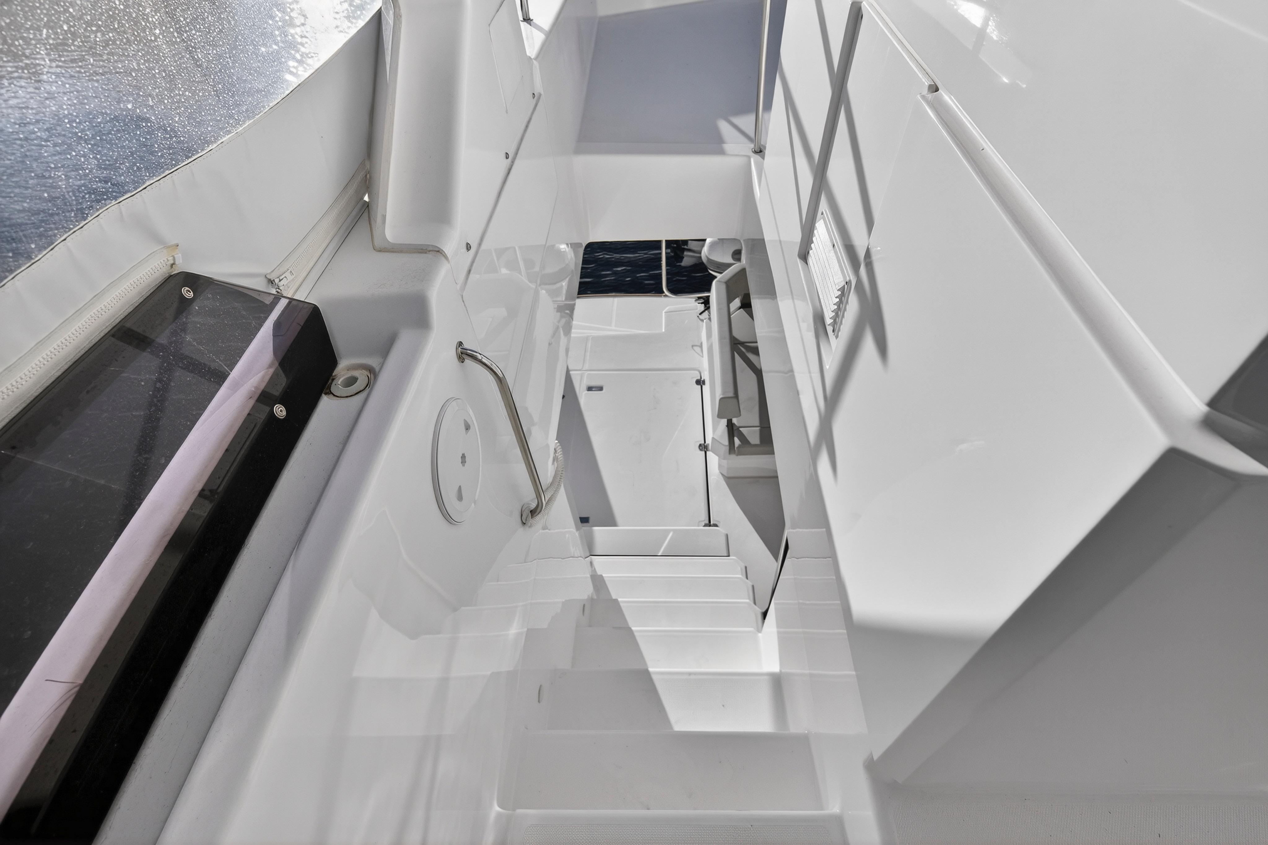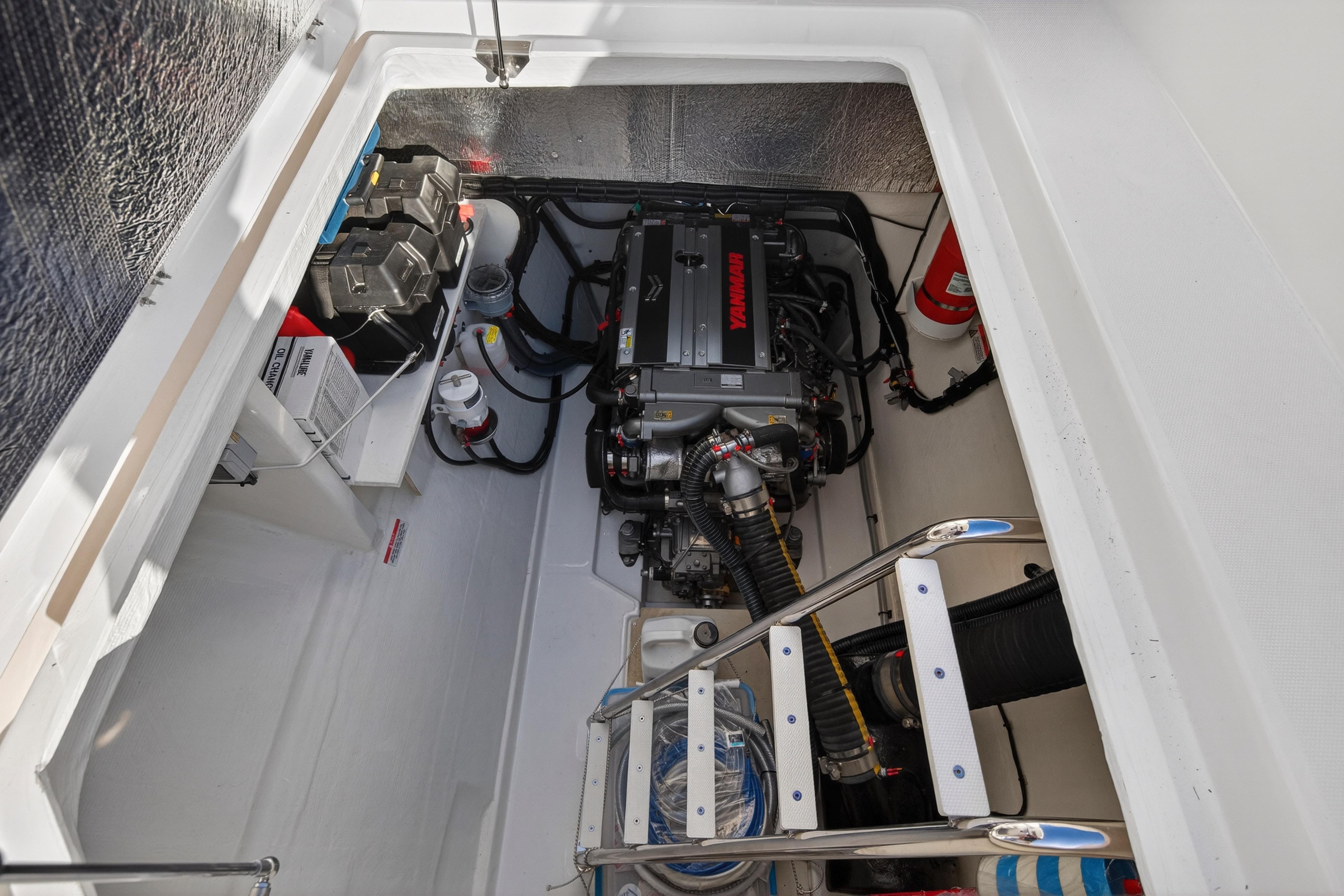 A separate engine room is completely sealed off from the living space, substantially reducing engine noise and odors. Here, access can be found via a large deck hatch with a step ladder for easy entry. All major systems, complete with intuitive functionality, are housed in the engine room.