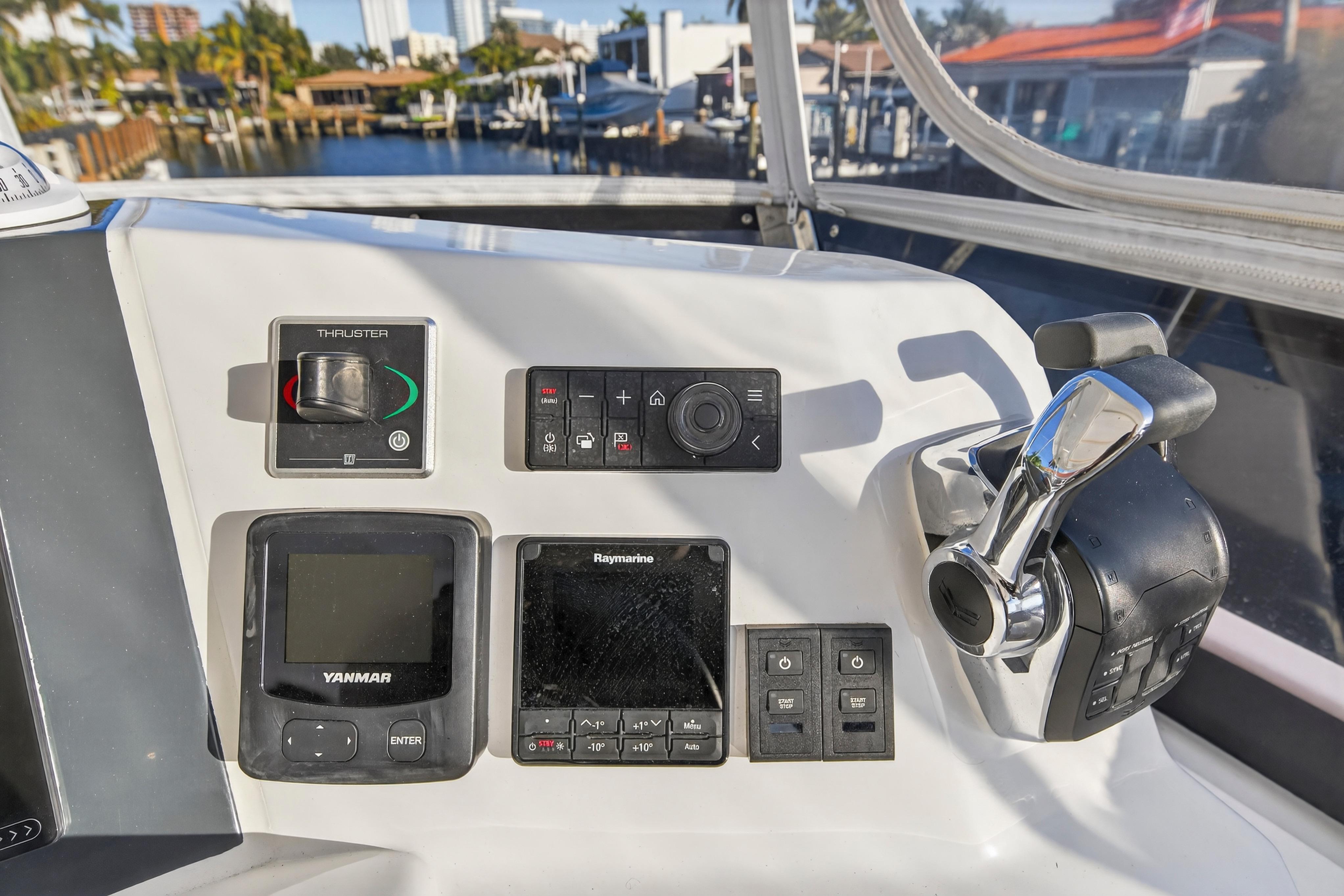 - Raymarine Base Pack: Includes VHF (Multizone with AIS receiver) at internal helm & additional VHF handset at flybridge helm, p70s autopilot display at internal and p70Rs autopilot display at flybridge helm, AXIOM XL16 Multifunction display in lieu of AXIOM7 Multifunction display at Helmstation. With retractable depth transducer