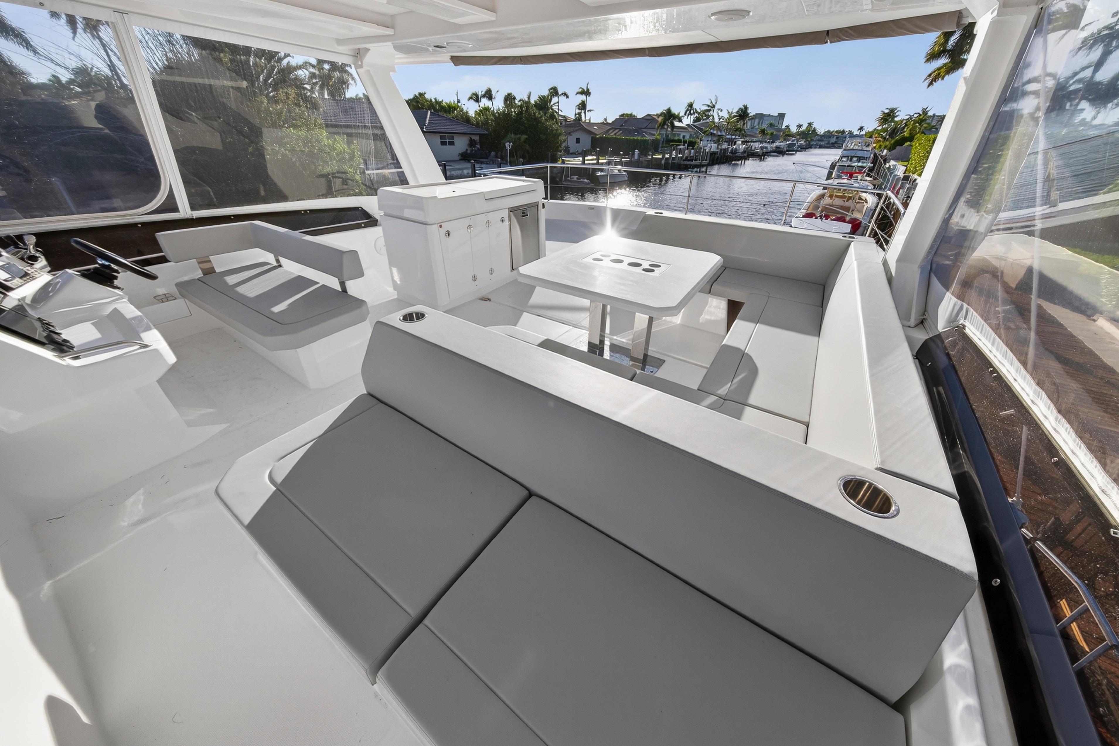 - Polycarbonate Macrolon 5 front flybridge enclosure. Superior clarity and durability
