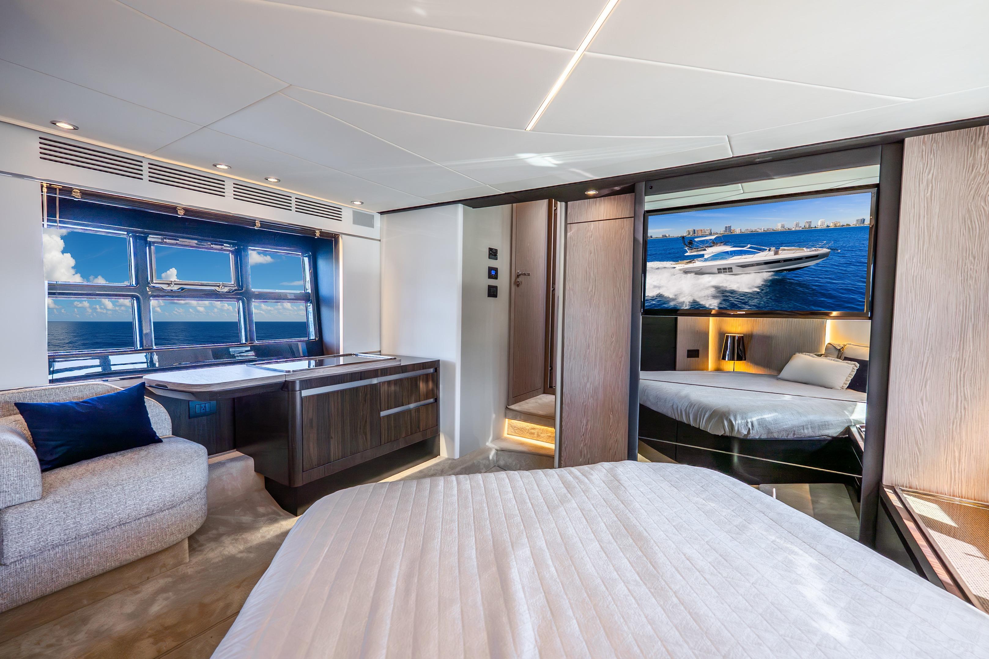 The layout aboard this 2021 Azimut S6 59-foot yacht is ideal for entertaining. The salon is filled with natural light, premium Italian finishes, and seamless indoor-outdoor flow. Below deck, the Azimut S6 2021 – 59 feet offers three beautifully appointed staterooms plus crew quarters, making this a true owner-operator yacht with space for family and guests. The 59’ 2021 Azimut S6 delivers the level of comfort expected from a much larger vessel.