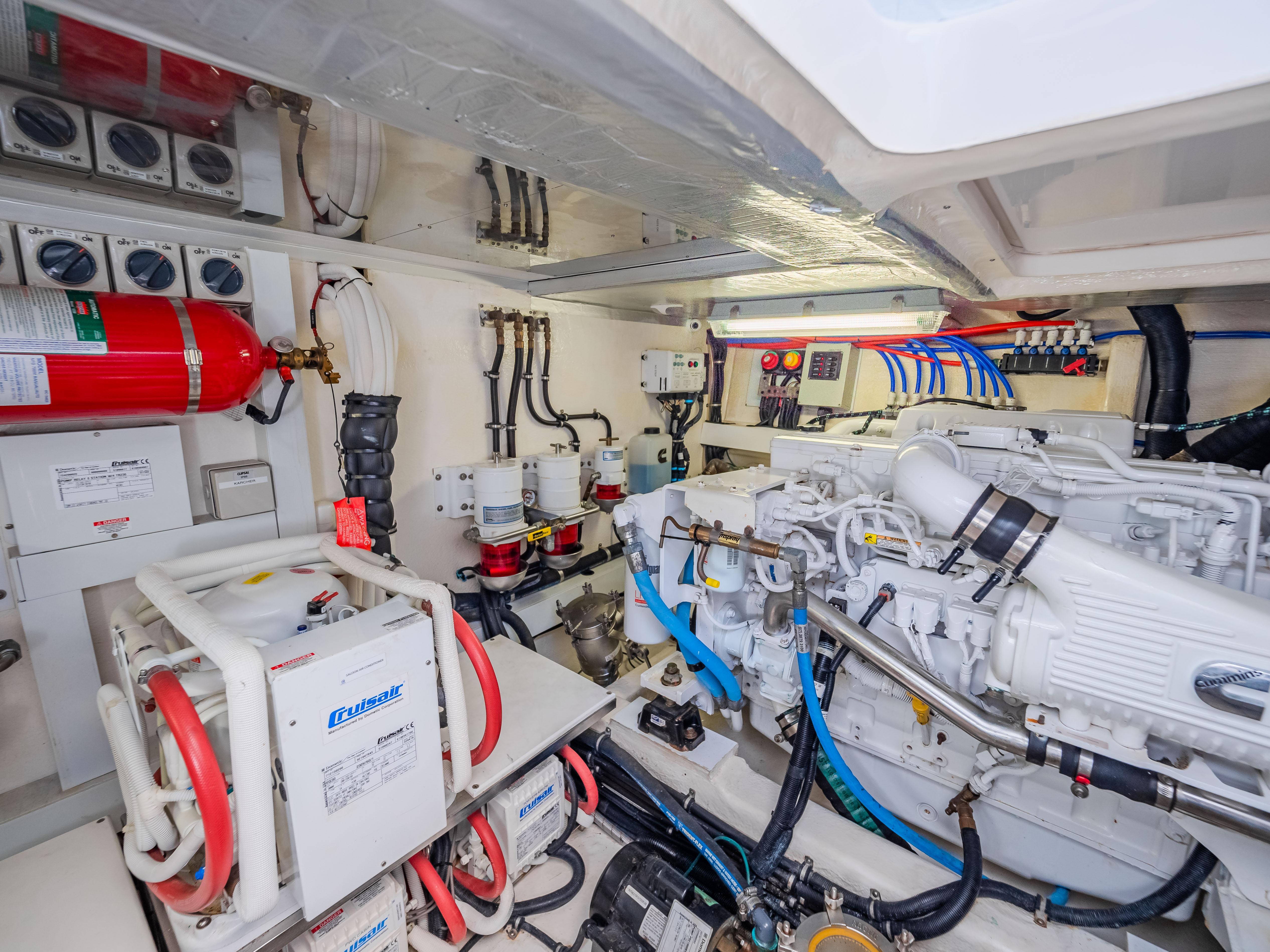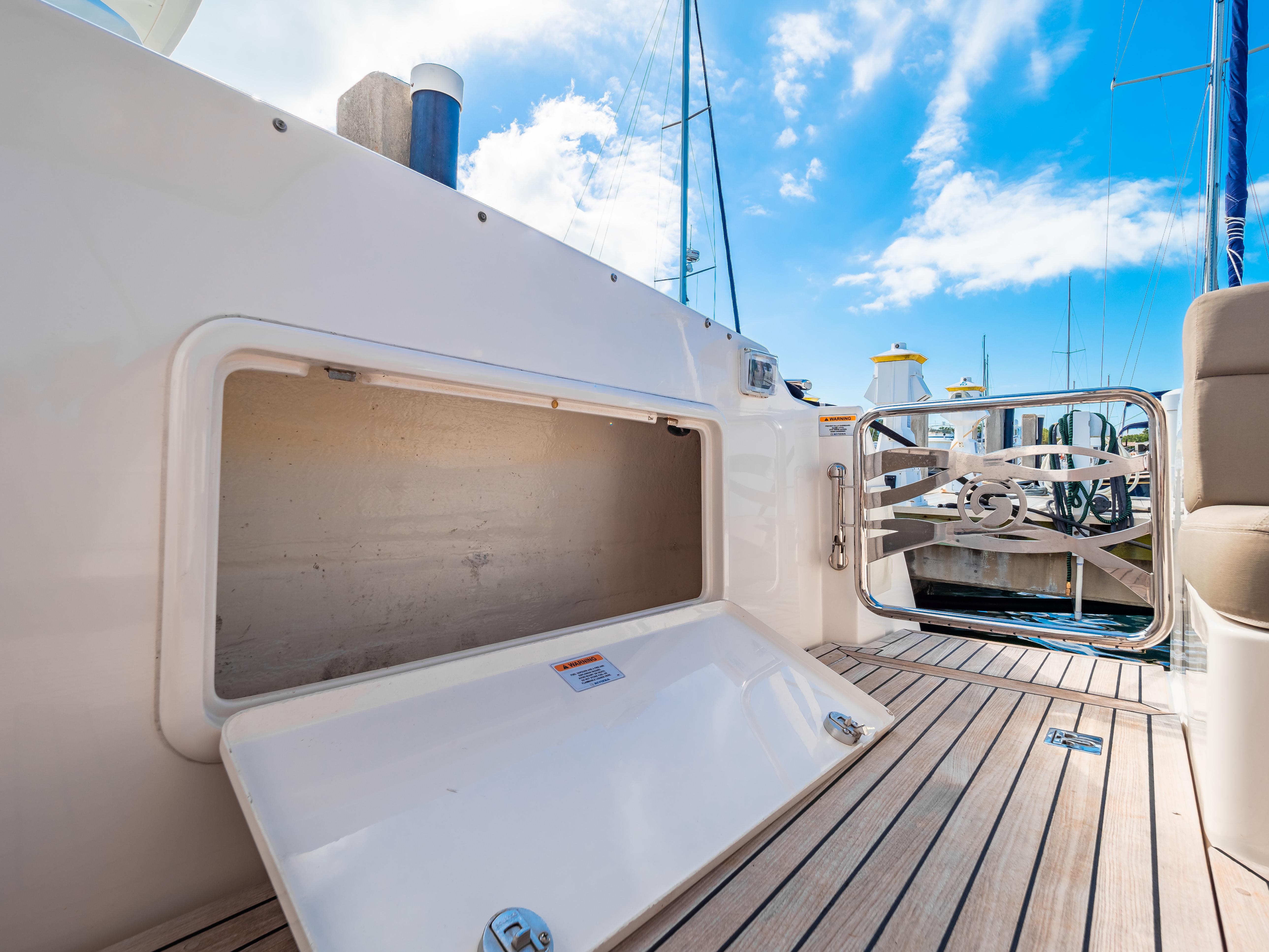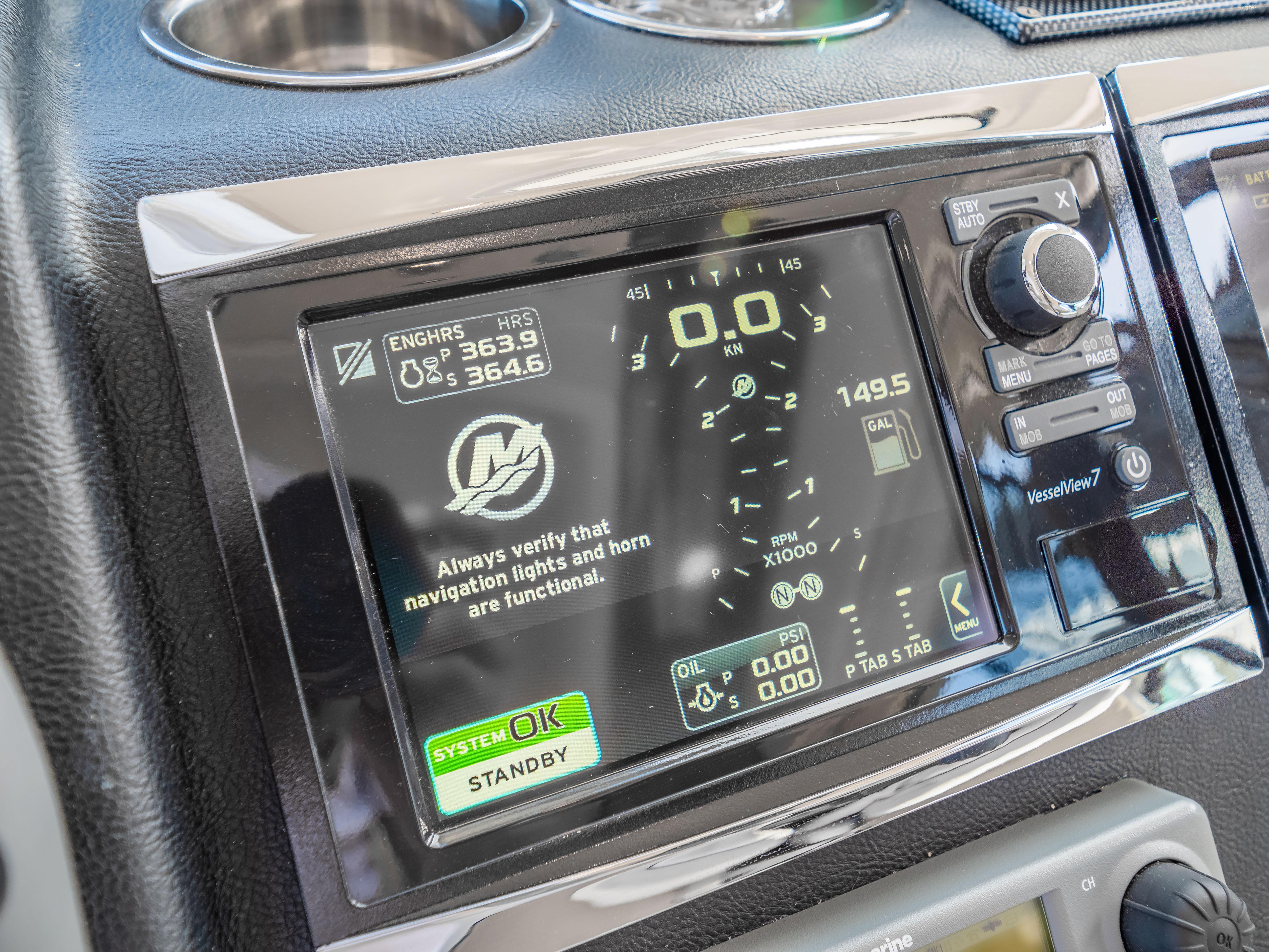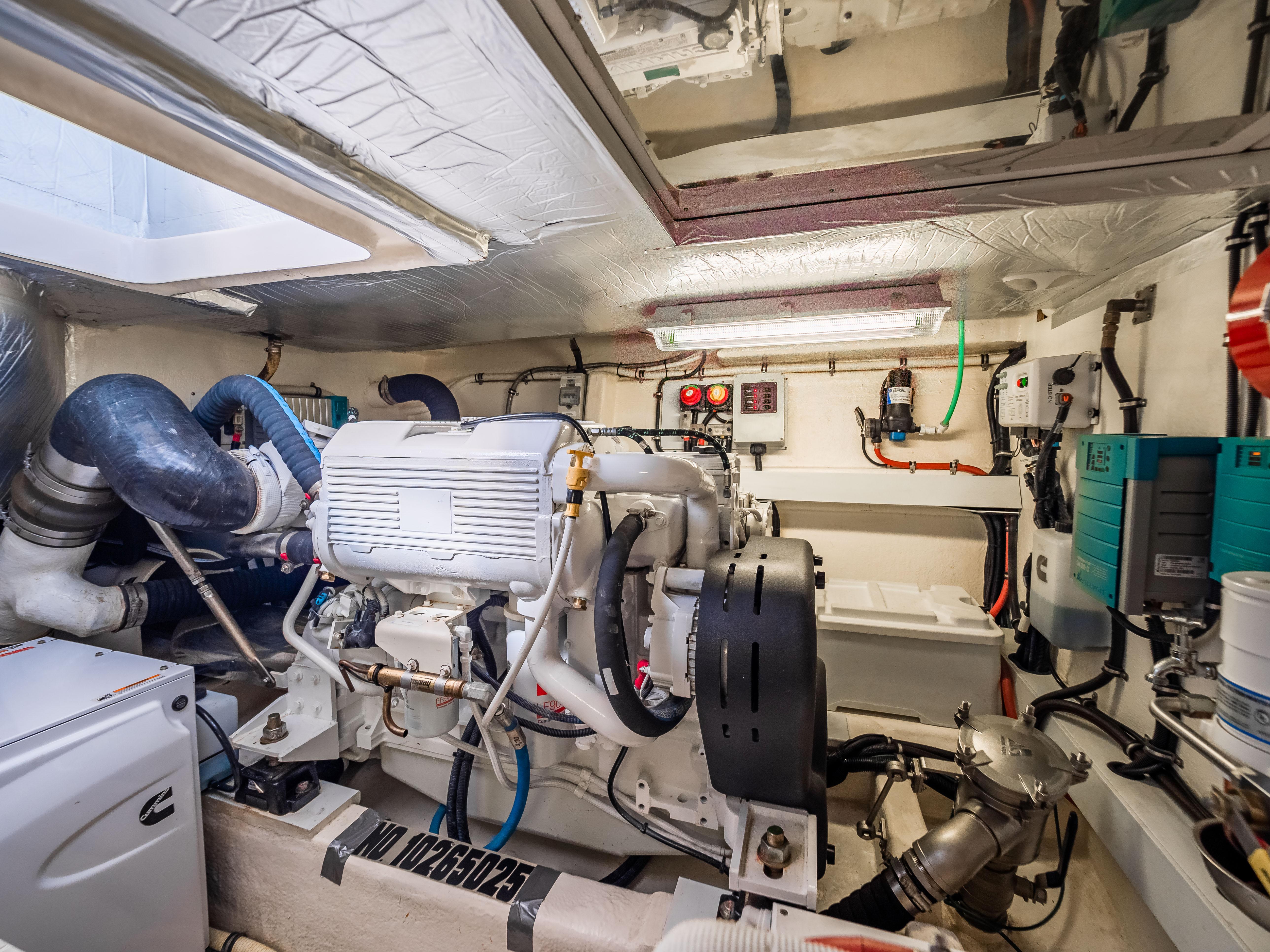 She is powered by the efficient Cummins-Zues POD drive package, which provides conveniences like Joystick docking and Sky-hook position holding capabilities. The boat is fun, safe, fast, and easy to operate.