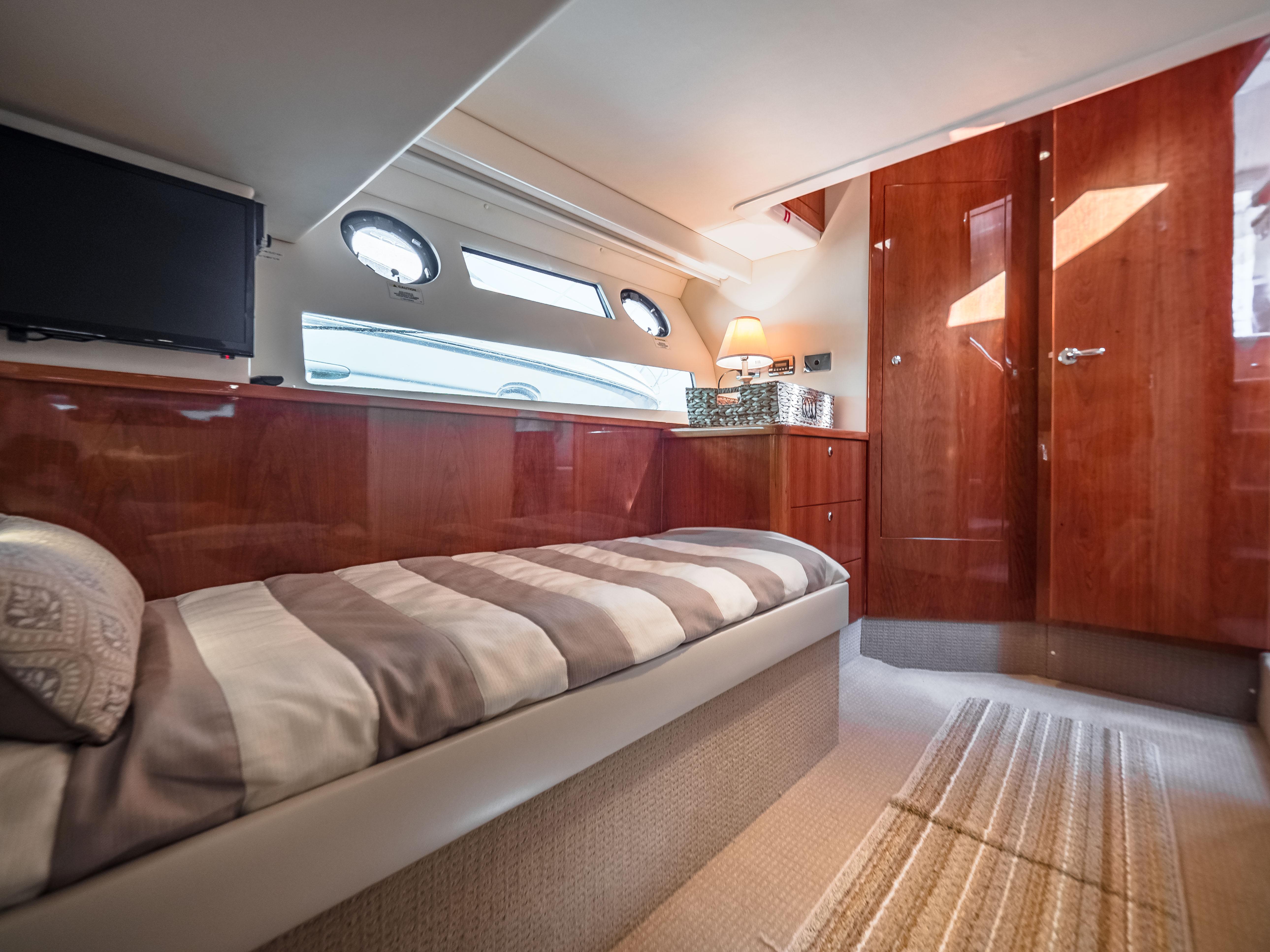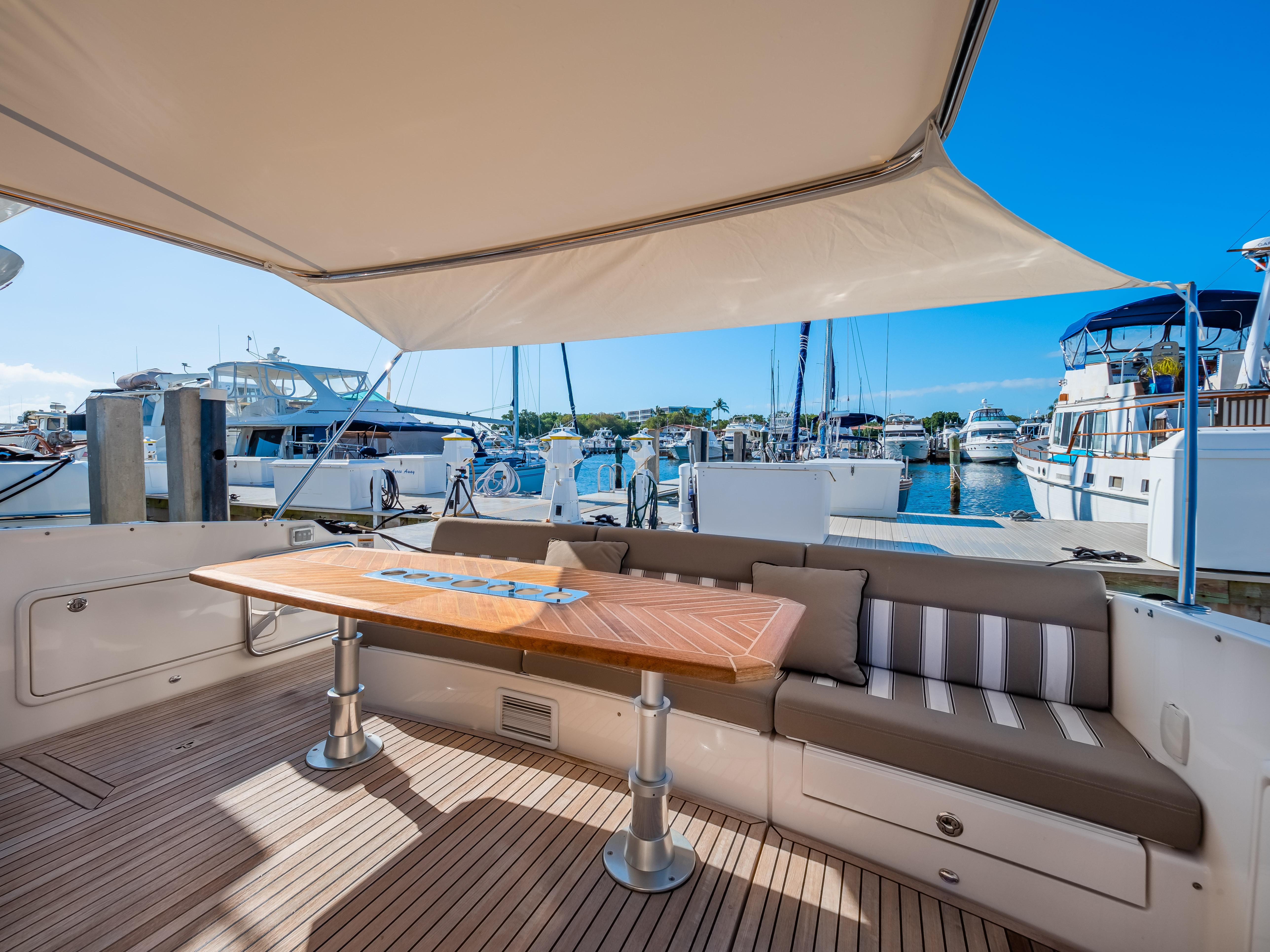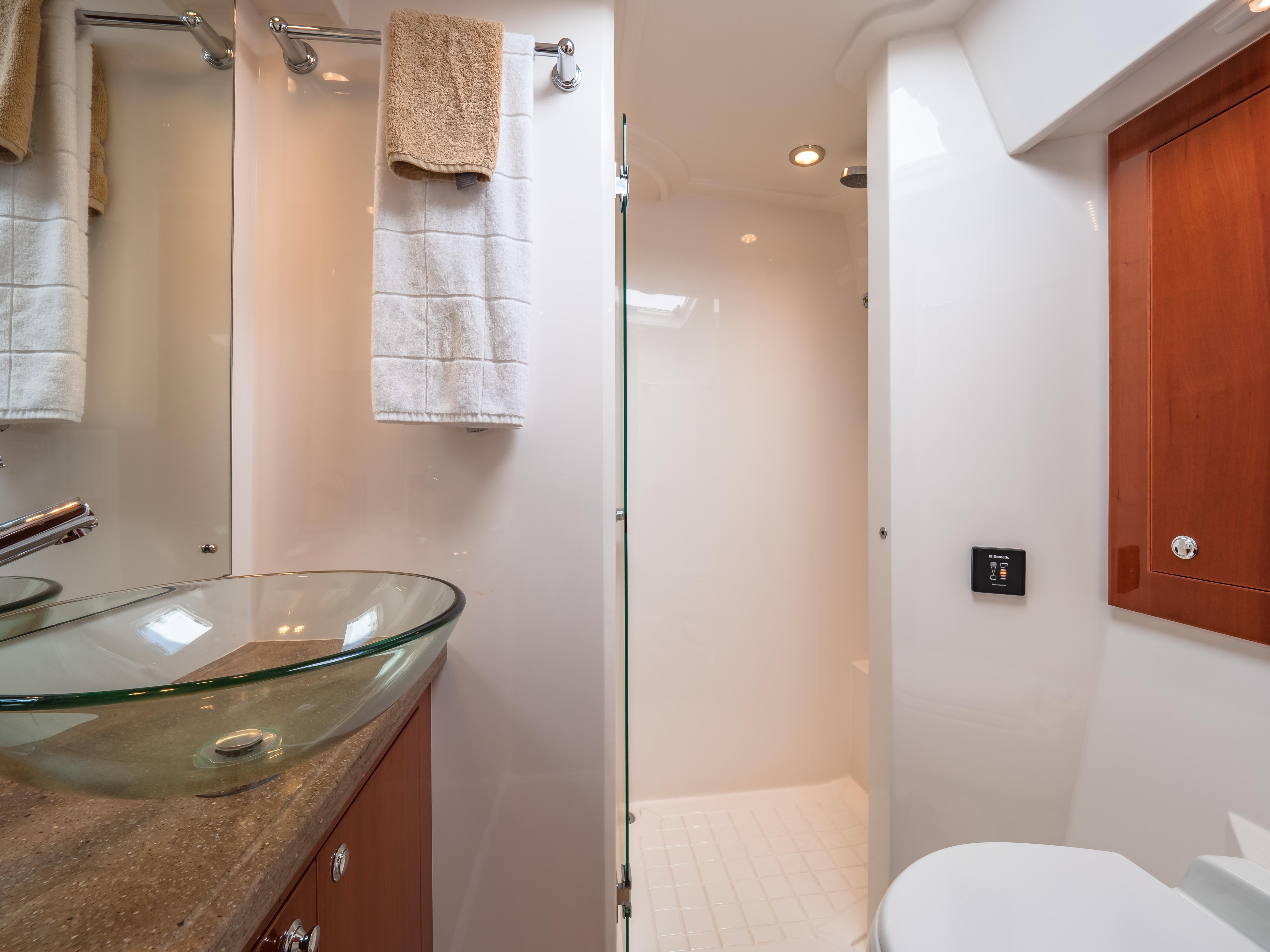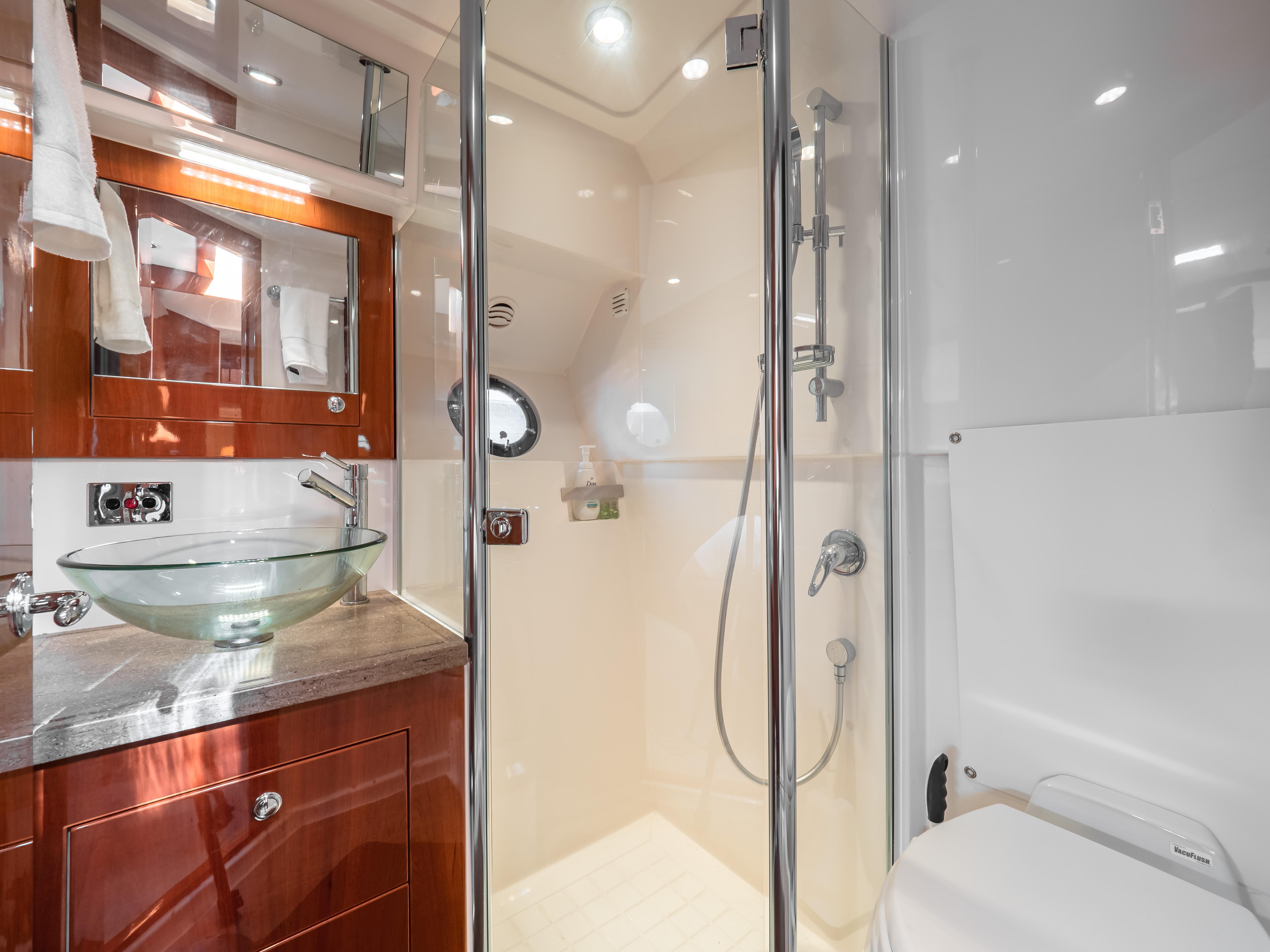 She is powered by the efficient Cummins-Zues POD drive package, which provides conveniences like Joystick docking and Sky-hook position holding capabilities. The boat is fun, safe, fast, and easy to operate.