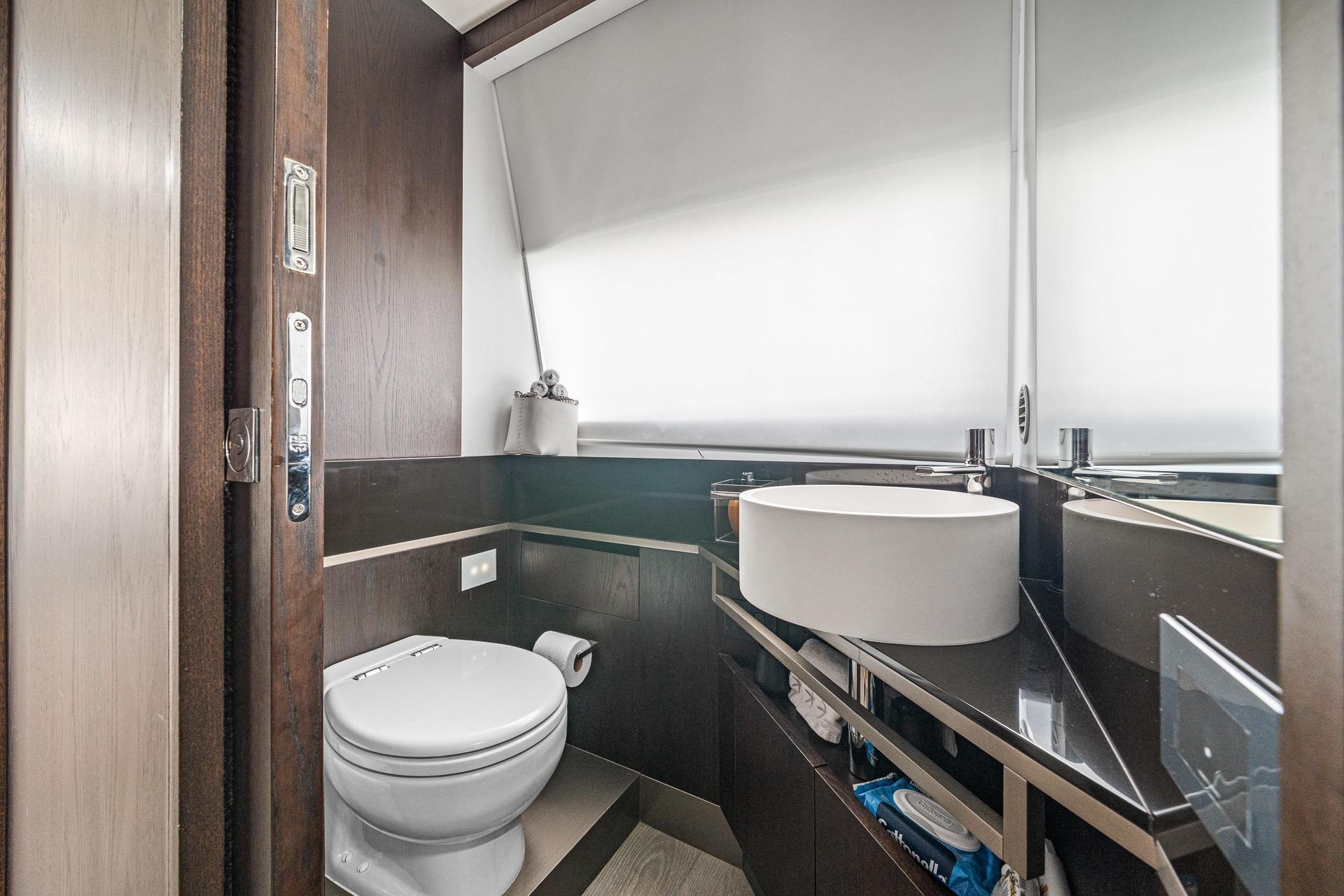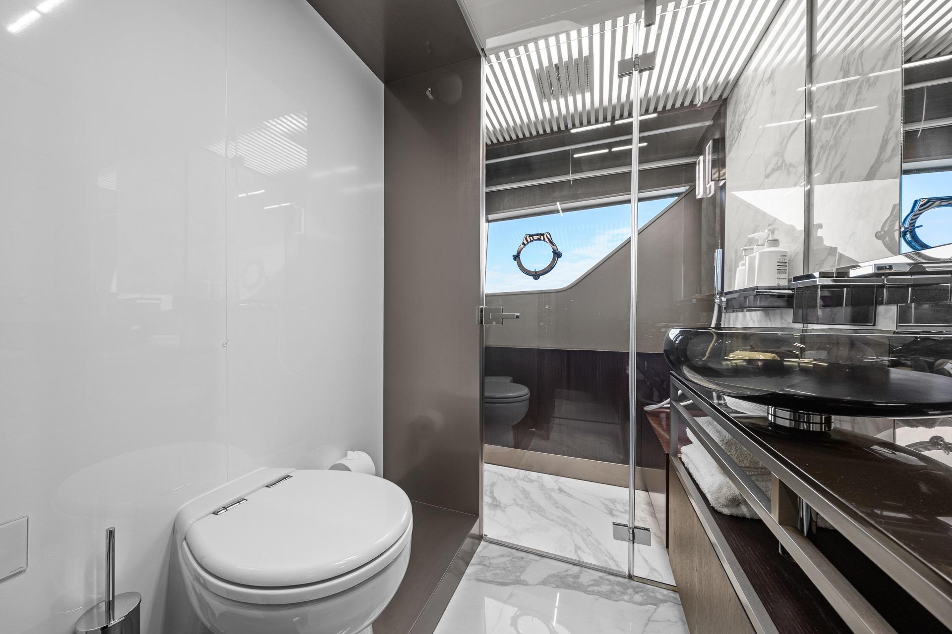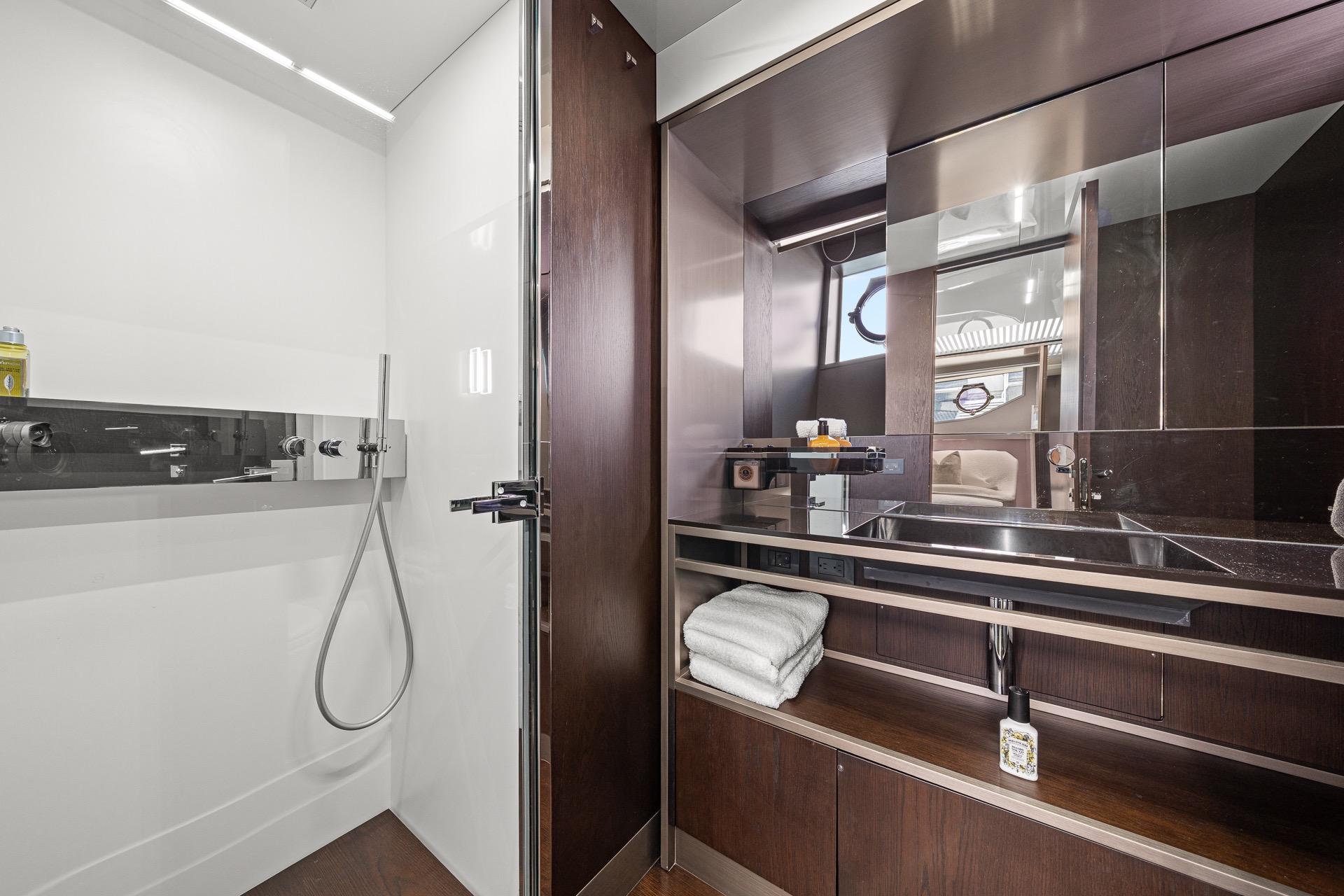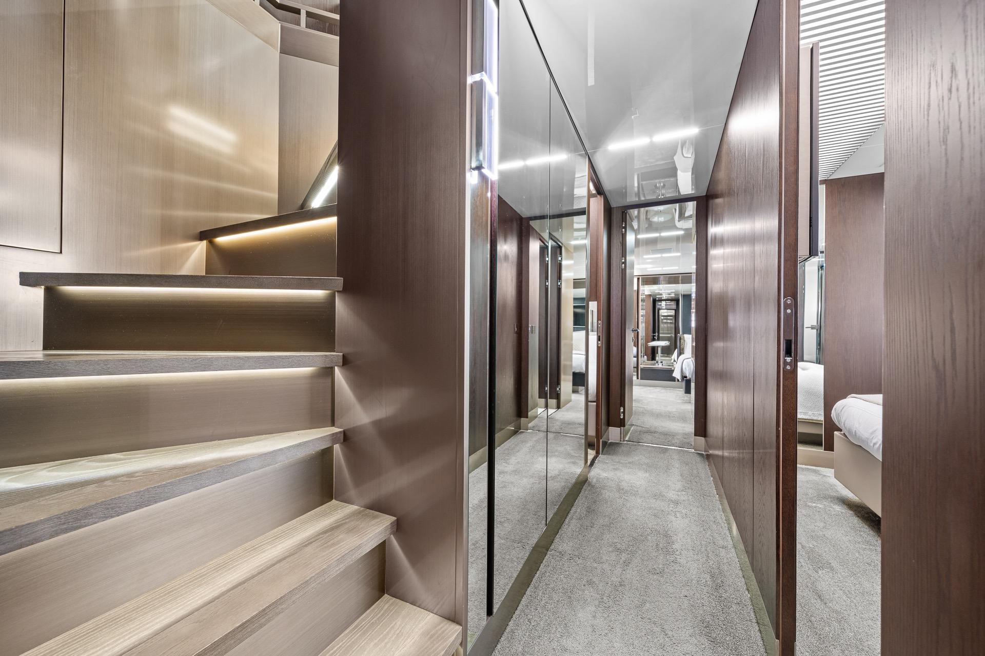 Below deck, the yacht accommodates guests in luxurious staterooms, including a spacious full-beam master suite, all designed to maximize comfort, privacy, and natural light. Each cabin reflects Ferretti’s attention to detail and high standards of build quality.