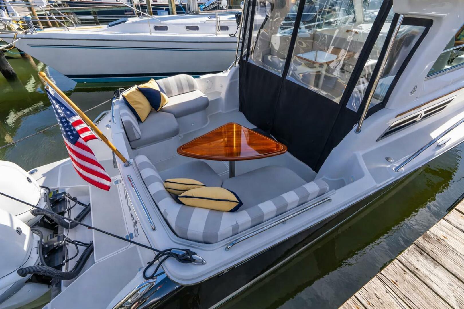 - Aft dinette seat converts to face cockpit