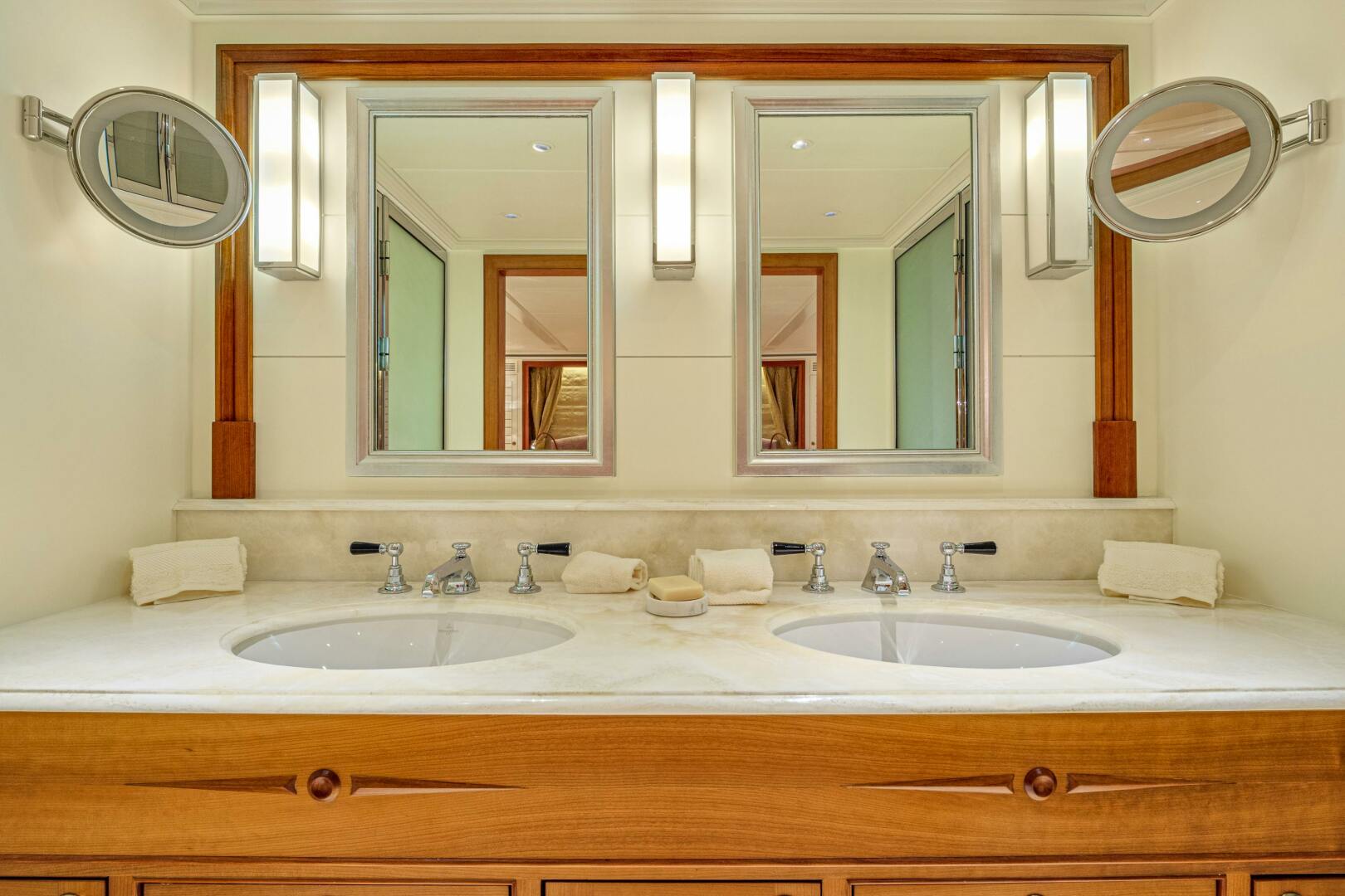 All faucets, towel rails, and bathroom pieces. Engine room sinks and faucets supplied by Global