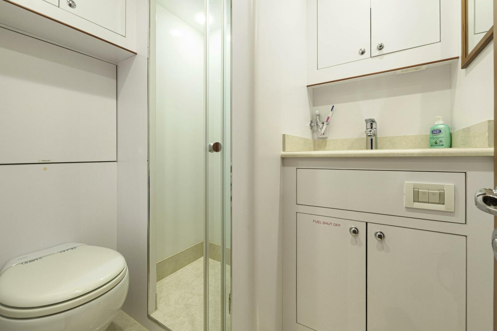 Engine room finish, in white, flow coated Gelcoat, and brushed Polyurethane