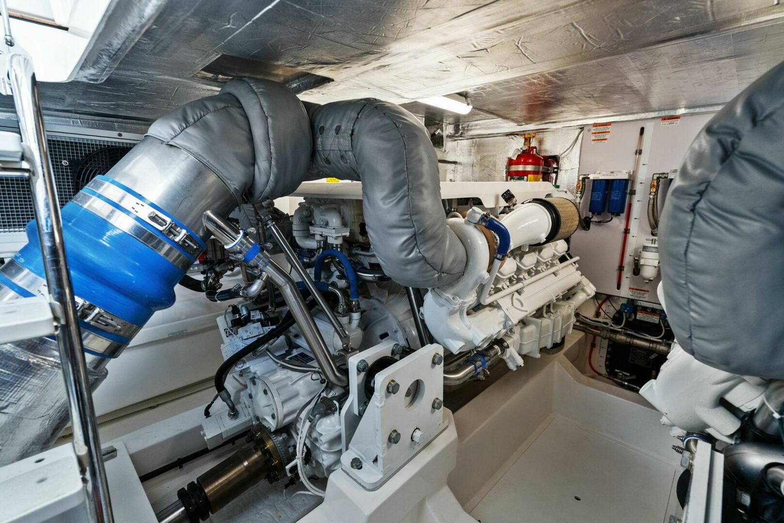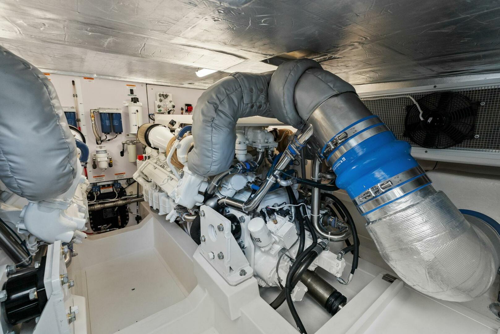 - Continuous fan ducted to lazarette and engine room light switch, additional waterproof 110V outlet on flybridge along with a water spigot for easy washdowns