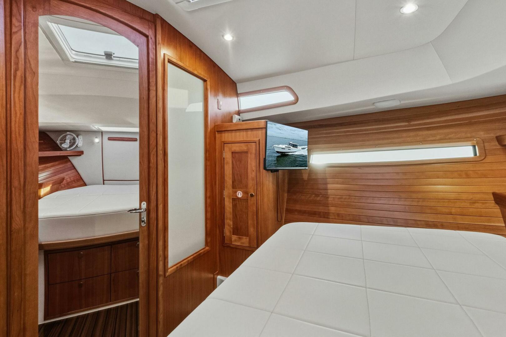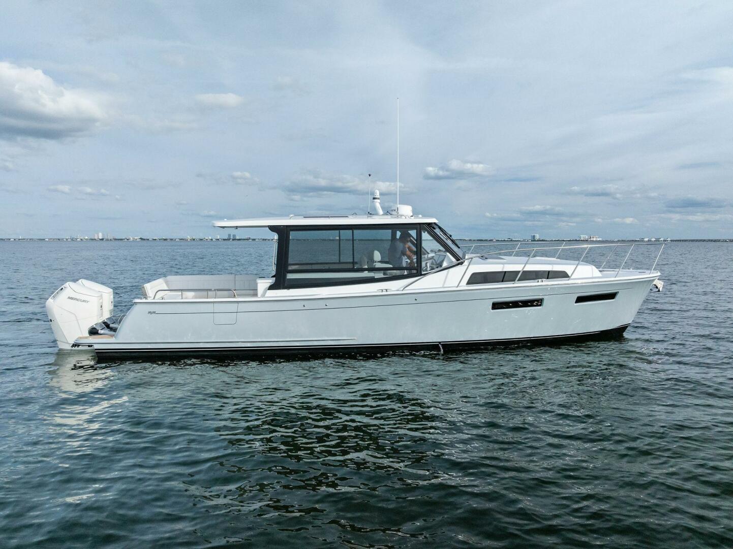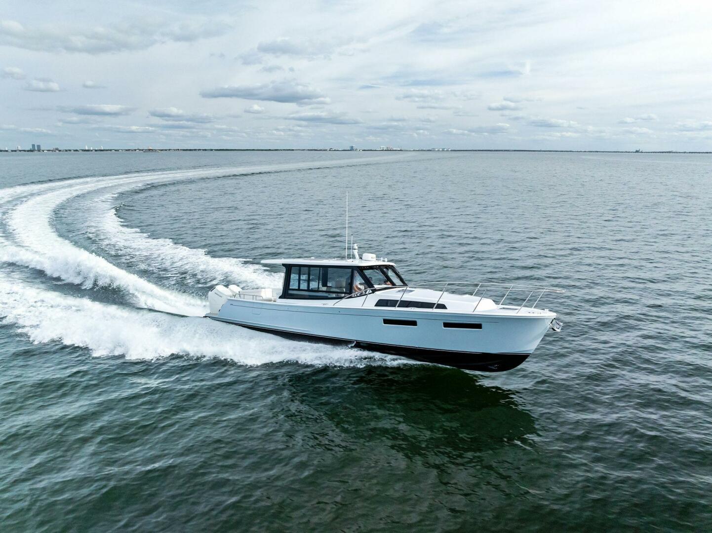 The MJM 42 is a uniquely capable Carolina Downeast cruiser combining all-weather confidence, exceptional fuel efficiency, and liveaboard luxury in a beautifully engineered package. Featuring an indoor/outdoor pilothouse with 360-degree visibility, galley-up entertaining space, high-tech composite construction, and a smooth, level ride that planes from 12–22 knots, she offers unmatched comfort, ease of maintenance, and versatility—perfect for couples cruising in any conditions with room for the whole family on weekends. Ask about our factory incentives on the 2025 models to make way for our new 2026 models.