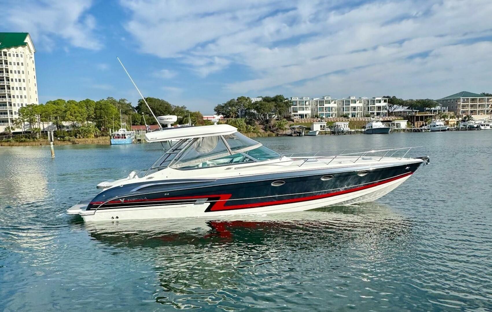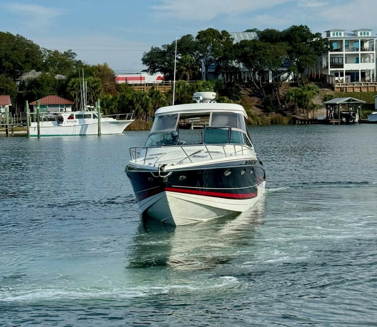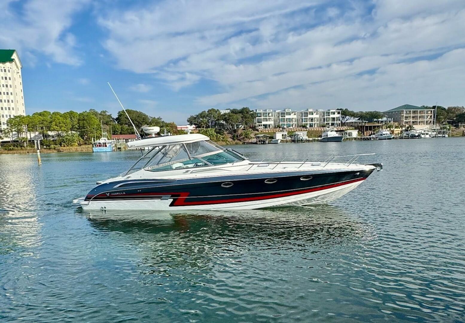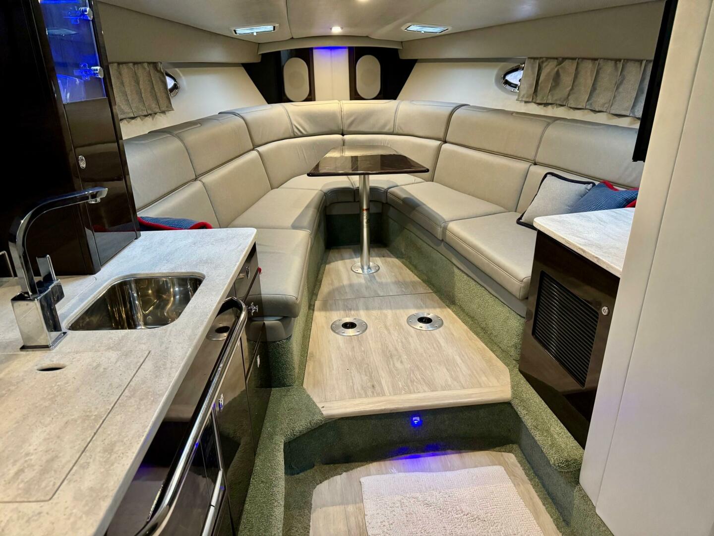 2016 37' Formula 370 Super Sport "Hoody" for sale- This Formula 370 Super Sport sits high and dry on a lift and is maintained by a yacht management company. She’s super sleek with a low profile that cuts through wind and waves with ease. She also has a complete cabin to take you to those overnight spots or long afternoon naps. The 370 SS cockpit adds more versatility than ever with a doublewide captain’s helm, wet bar, and sun lounger. Drive in style with easy joystick controls, with a fully equipped radar and chart plotter. The aft-facing lounge is electrically activated to create a generous sun pad. There's also a hard top with Sure Shade. Her expertly presented textures and colors, recessed alcoves with stainless railing, integrated, blue LED lighting, and cupholders set in eye-catching Corian® position the 370 SS at the forefront of marine design. Contact us today for an immediate showing.