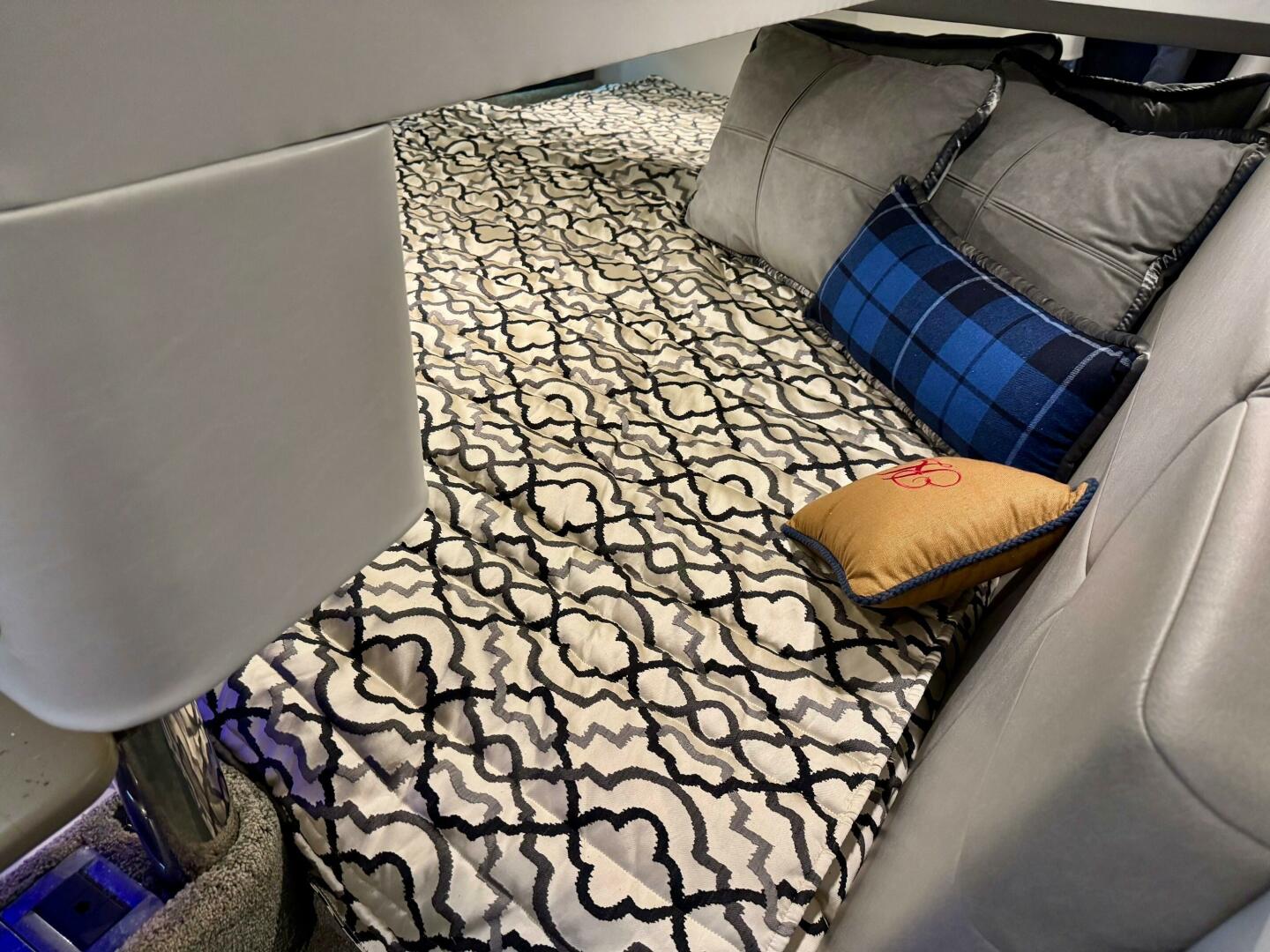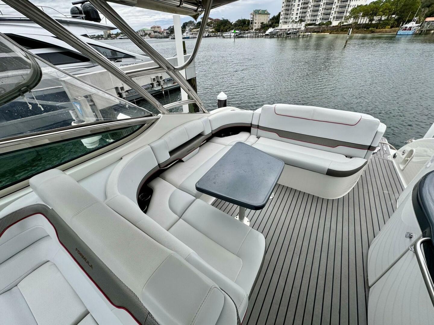 - Aft-facing sun lounge package w/storage below for tables, cushions & four fenders-converts to full-length sunpad