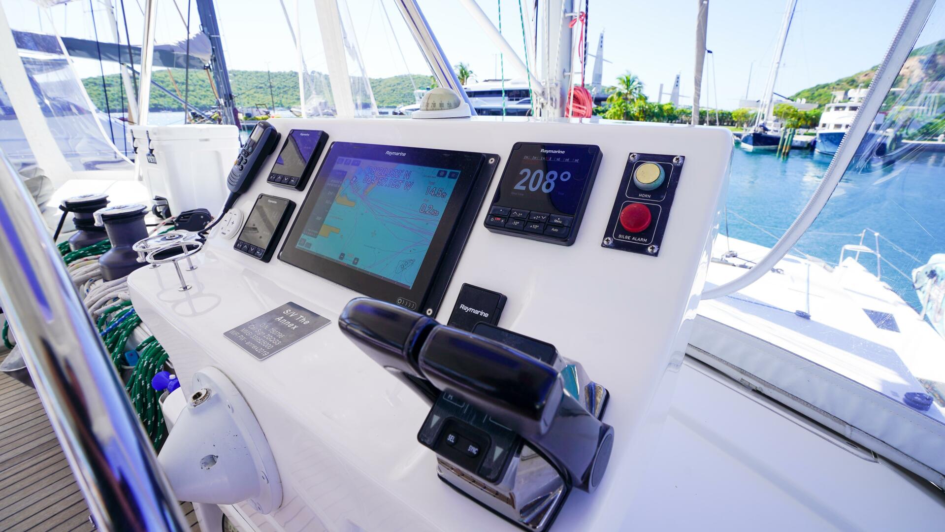 Throughout the vessel, the benefits of continuous care are evident: the tender platform operates smoothly after servicing, the Northern Lights 20 kW generator runs reliably under load, and the overall structure—hulls, decks, chainplates, deck hardware, and crossbeam—tested sound with no delamination noted. Safety gear has also been updated, including SOLAS lifejackets, a serviced 6-person life raft (valid to 2026), an EPIRB, updated flares, bilge alarms, and fire suppression systems, making ANNEX fully prepared for immediate cruising.