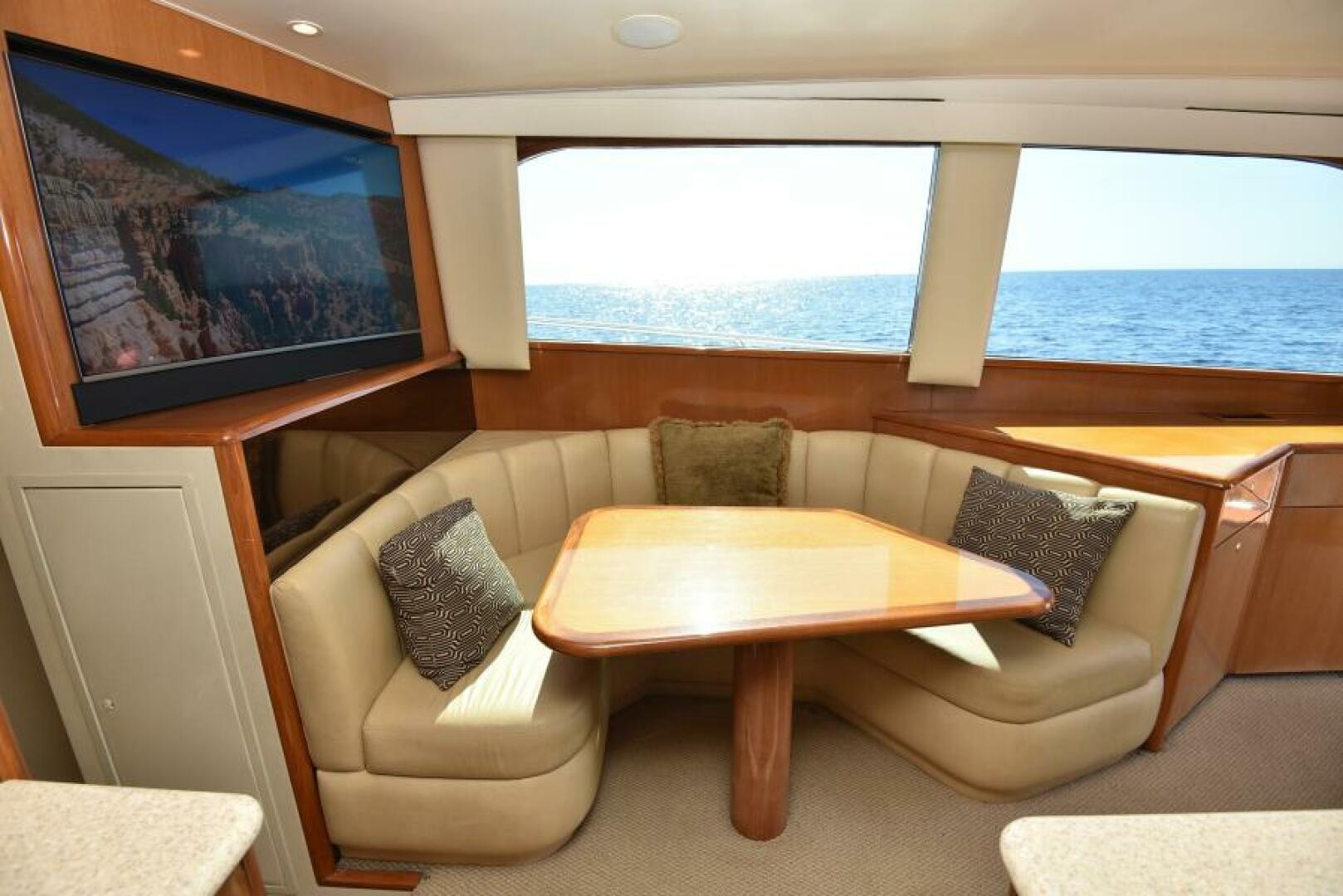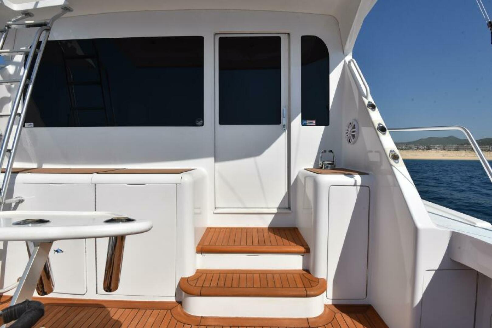 Three stateroom, galley up floorplan, arranged with the master suite amidships, a VIP stateroom forward and two full heads, both with separate stall showers. 200 square foot salon is spacious and includes starboard side peninsula galley and port side dinette. Outside, the large cockpit is fitted with a bait prep station, freezer, baitwells, tuna tubes and access to the engine room, new covering board non-skid, teak on deck, and fighting chair highlight the area. The flybridge is large and well appointed, peninsula console houses new electronics. Seating forward and to port provides guest seating, Seadec flooring compliments the area well and is easy on bare feet.