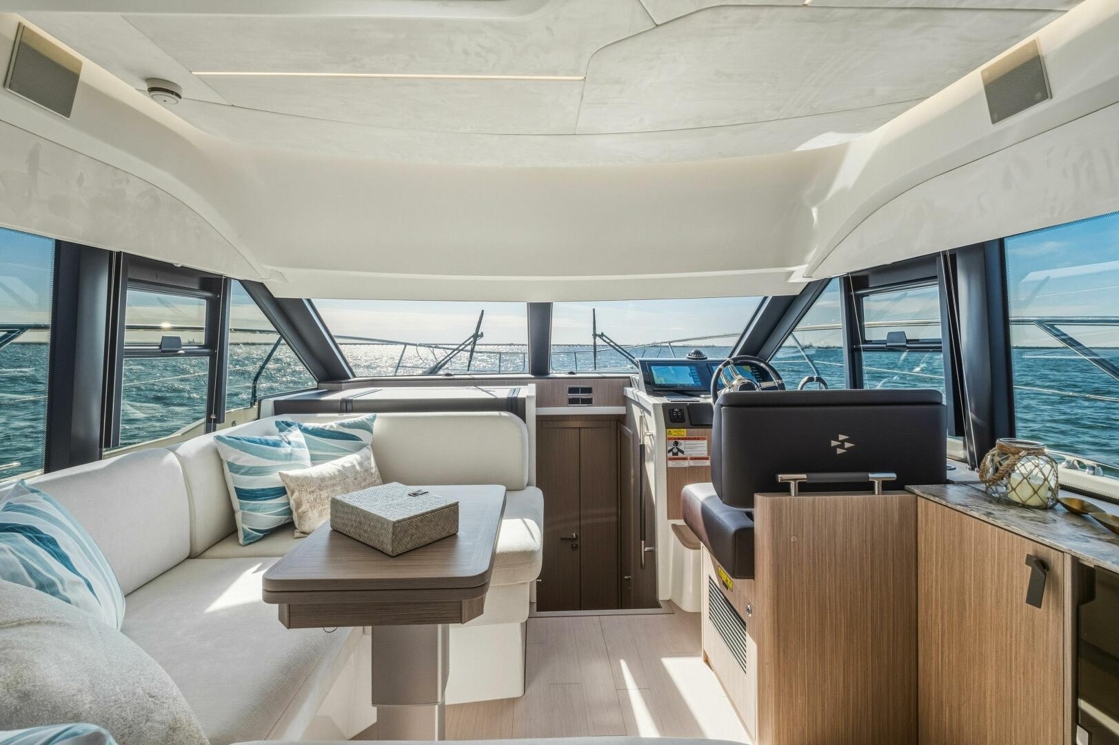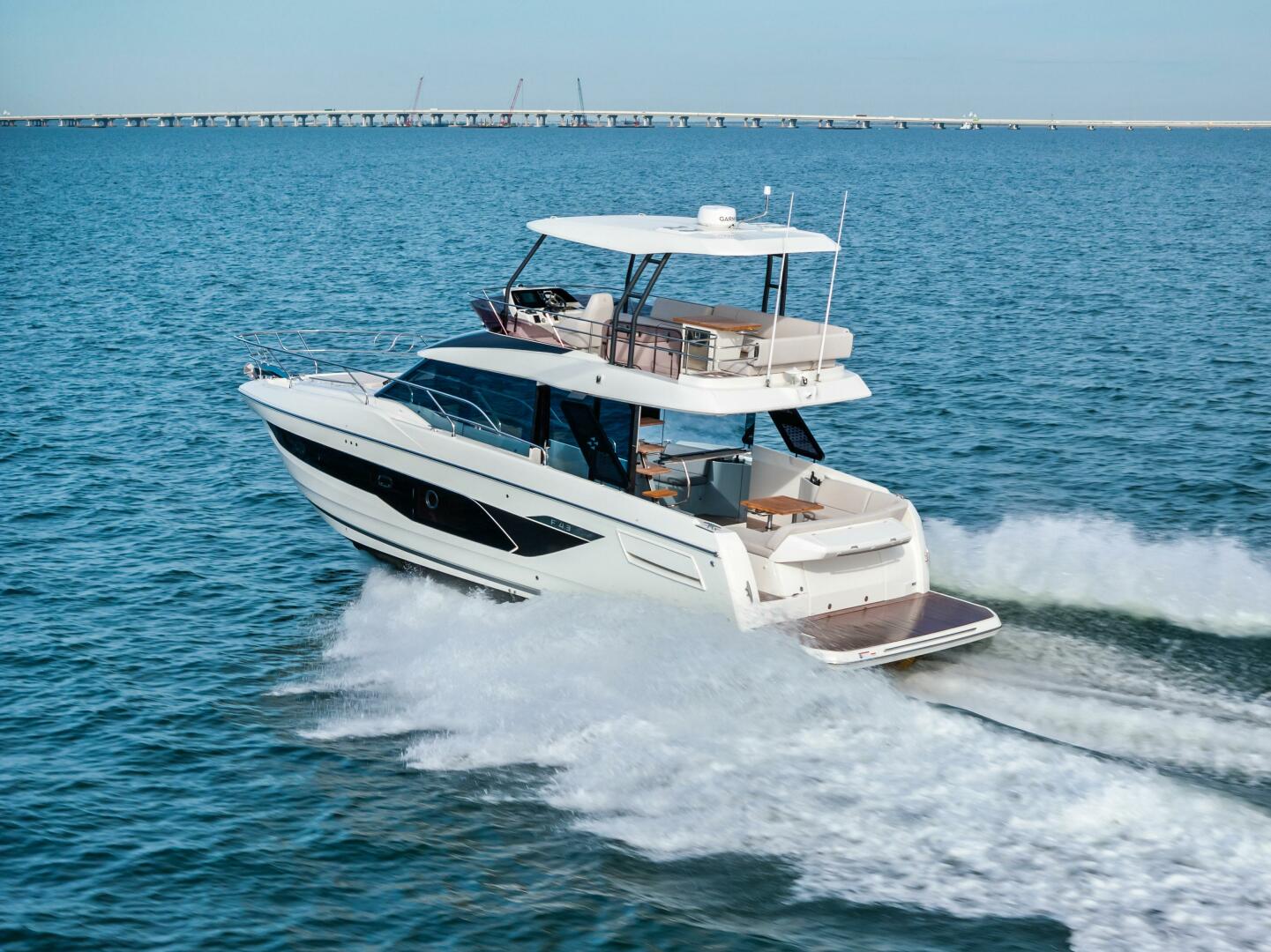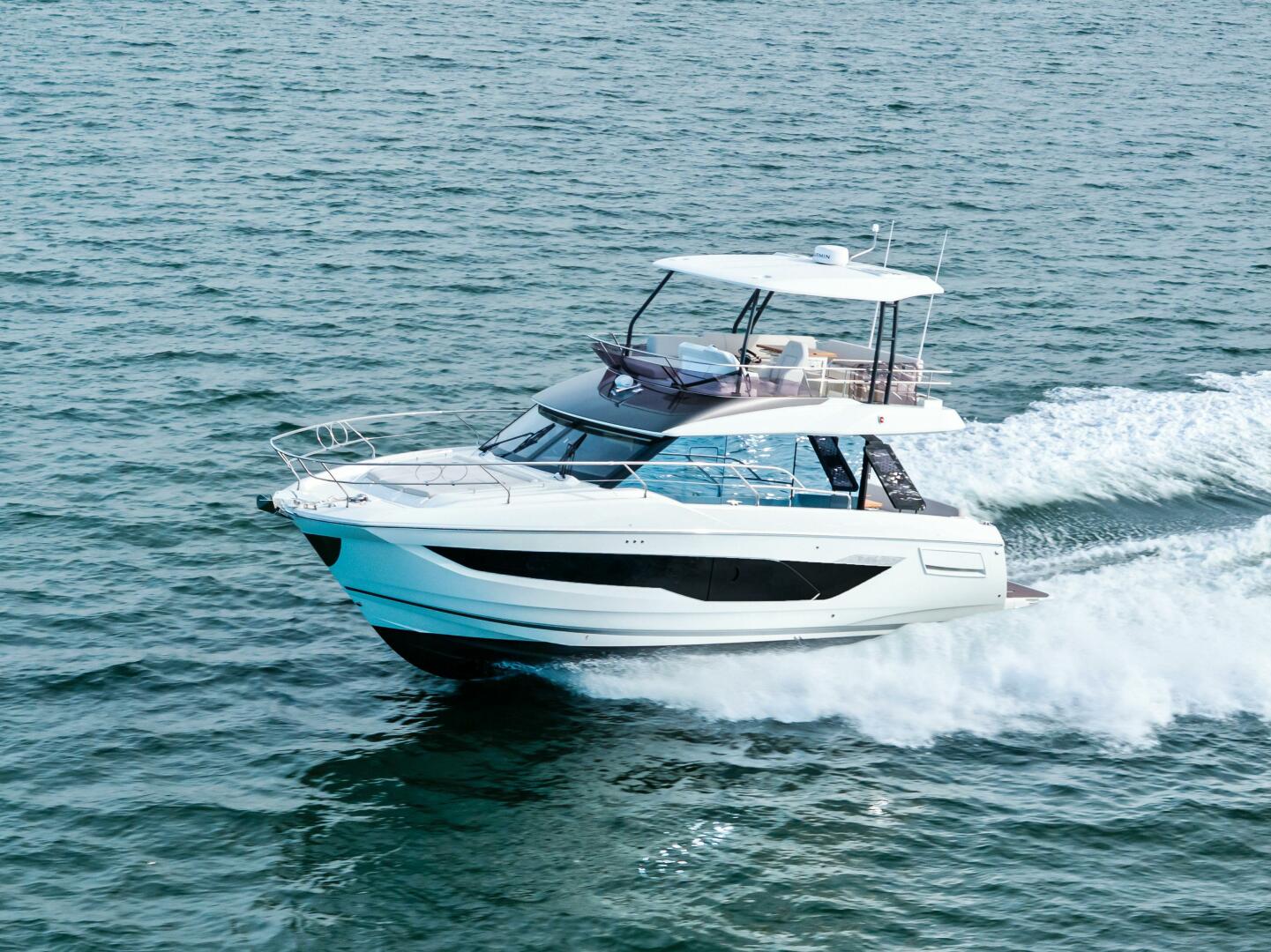 Designed to embrace the natural surroundings, it offers numerous opportunities for enjoyment, complemented by soft, refined details that create serene spaces for relaxation and privacy. Both the interior and exterior living areas exude an ambiance of luxury, security, and comfort. Crafted with bold innovation, this 43-foot model invites you aboard with the signature elegance and sophistication of the new F-Line generation.