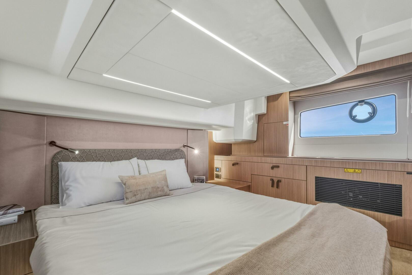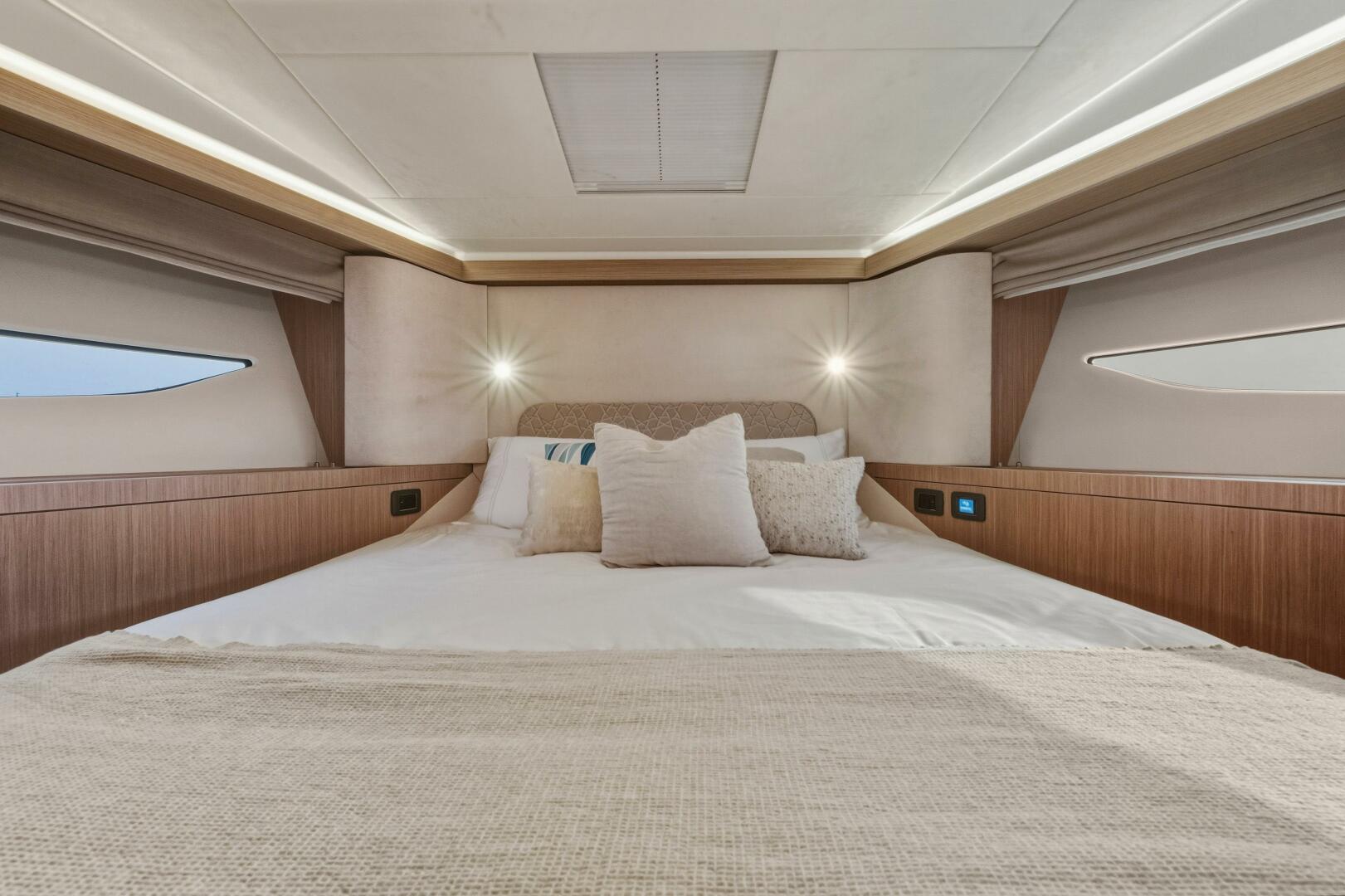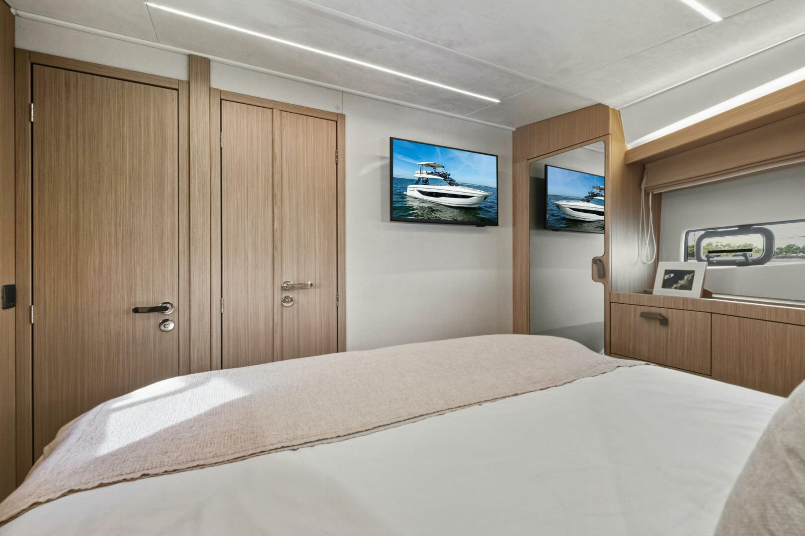 Designed to embrace the natural surroundings, it offers numerous opportunities for enjoyment, complemented by soft, refined details that create serene spaces for relaxation and privacy. Both the interior and exterior living areas exude an ambiance of luxury, security, and comfort. Crafted with bold innovation, this 43-foot model invites you aboard with the signature elegance and sophistication of the new F-Line generation.