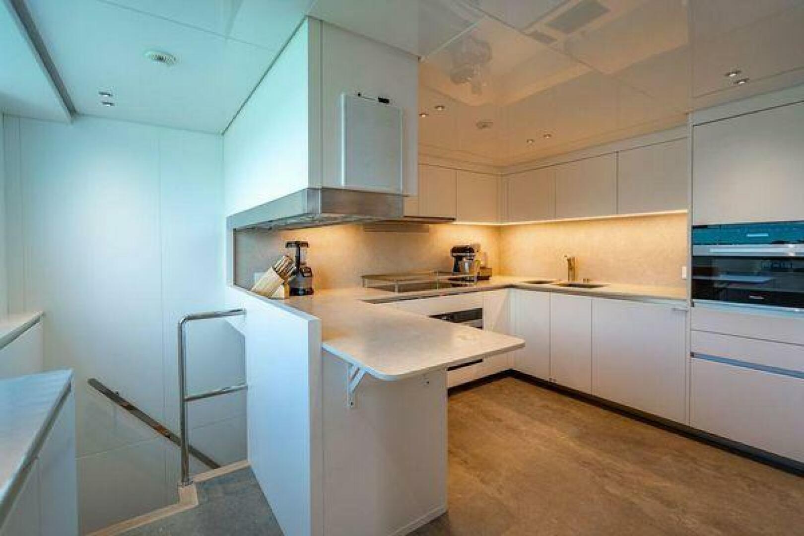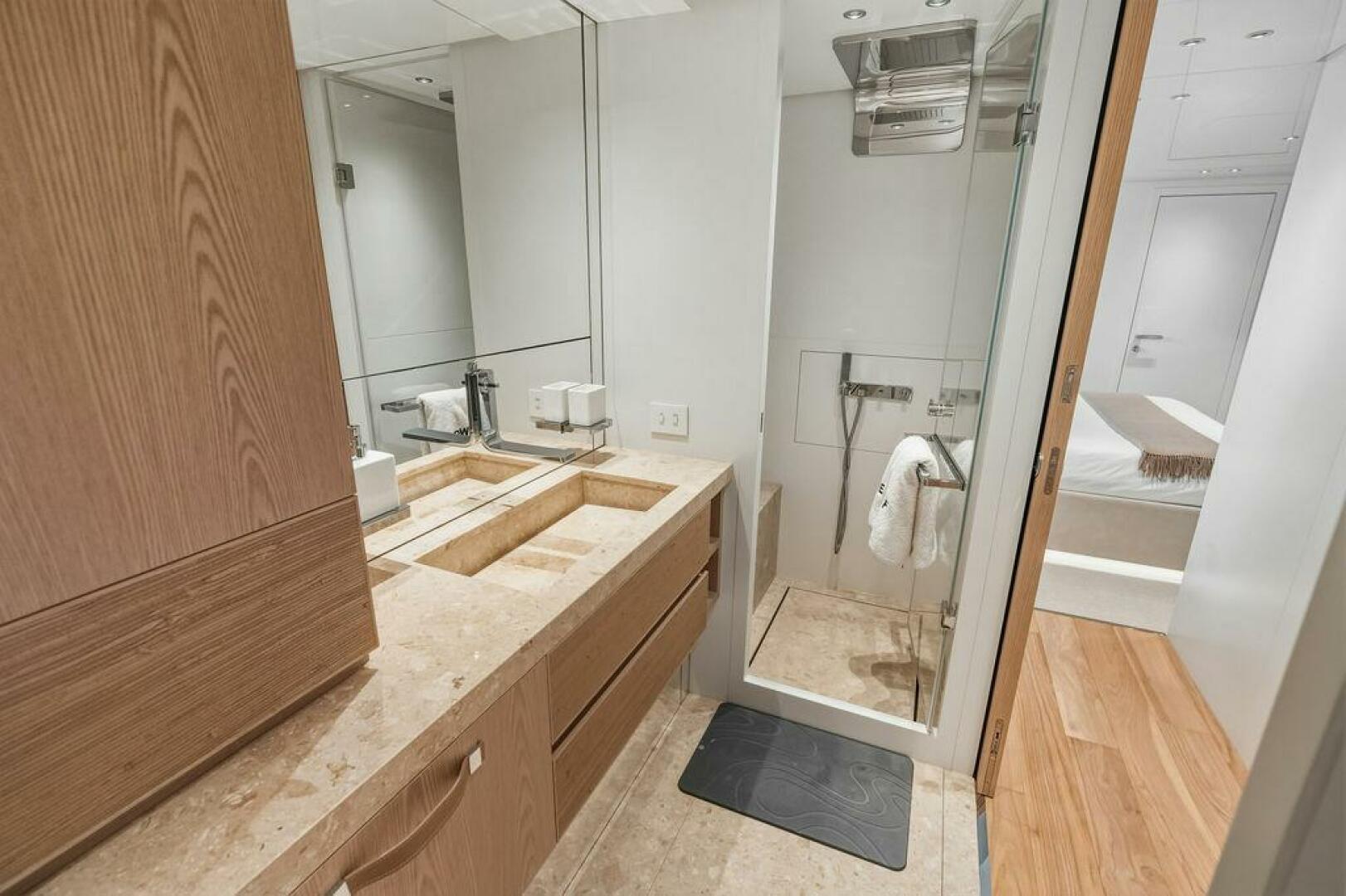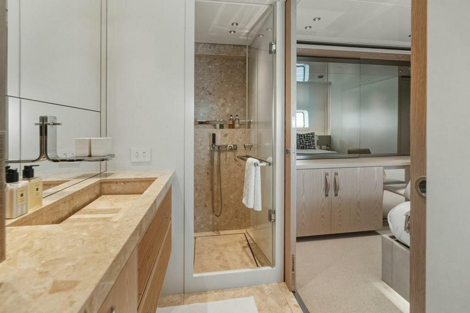 Step inside and you are welcomed by a custom interior by Marty Lowe, thoughtfully curated to feel both contemporary and timeless. Natural textures, bespoke furnishings, and a calming, sophisticated palette create a warm residential atmosphere, one that feels instantly inviting and entirely unique. This is a yacht designed to be lived on, not just admired.
