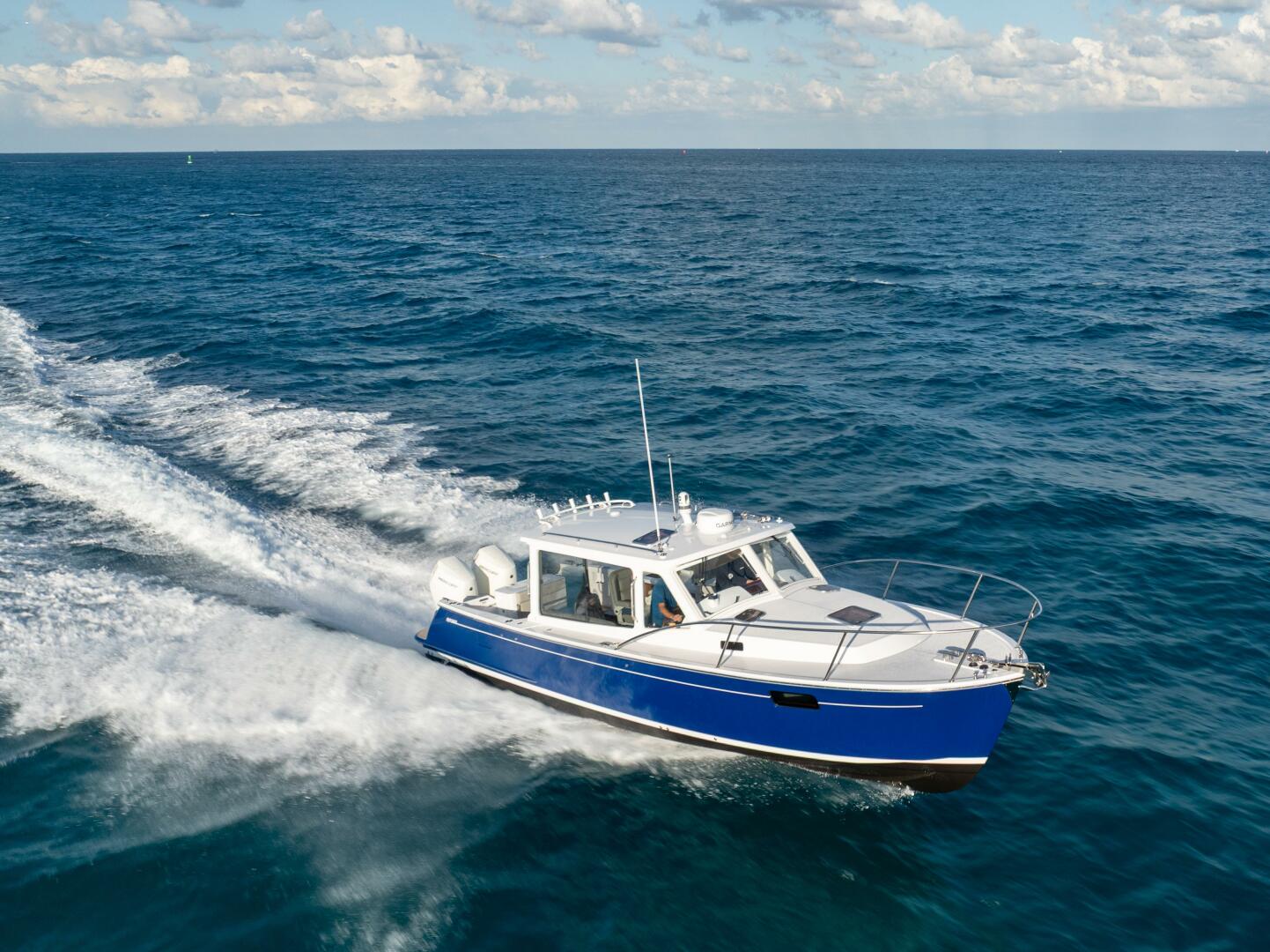 This 2026 MJM 38 RS exhibits MJM’s hallmark efficiency, stability, and smooth ride. Crafted in the Carolinas, the 38X’s Downeast style design and craftmanship is top-of-the-line. The versatile hull design ensures the boat runs clean, dry, and confident in all conditions, whether you’re chasing fish offshore or cruising home with family and friends.