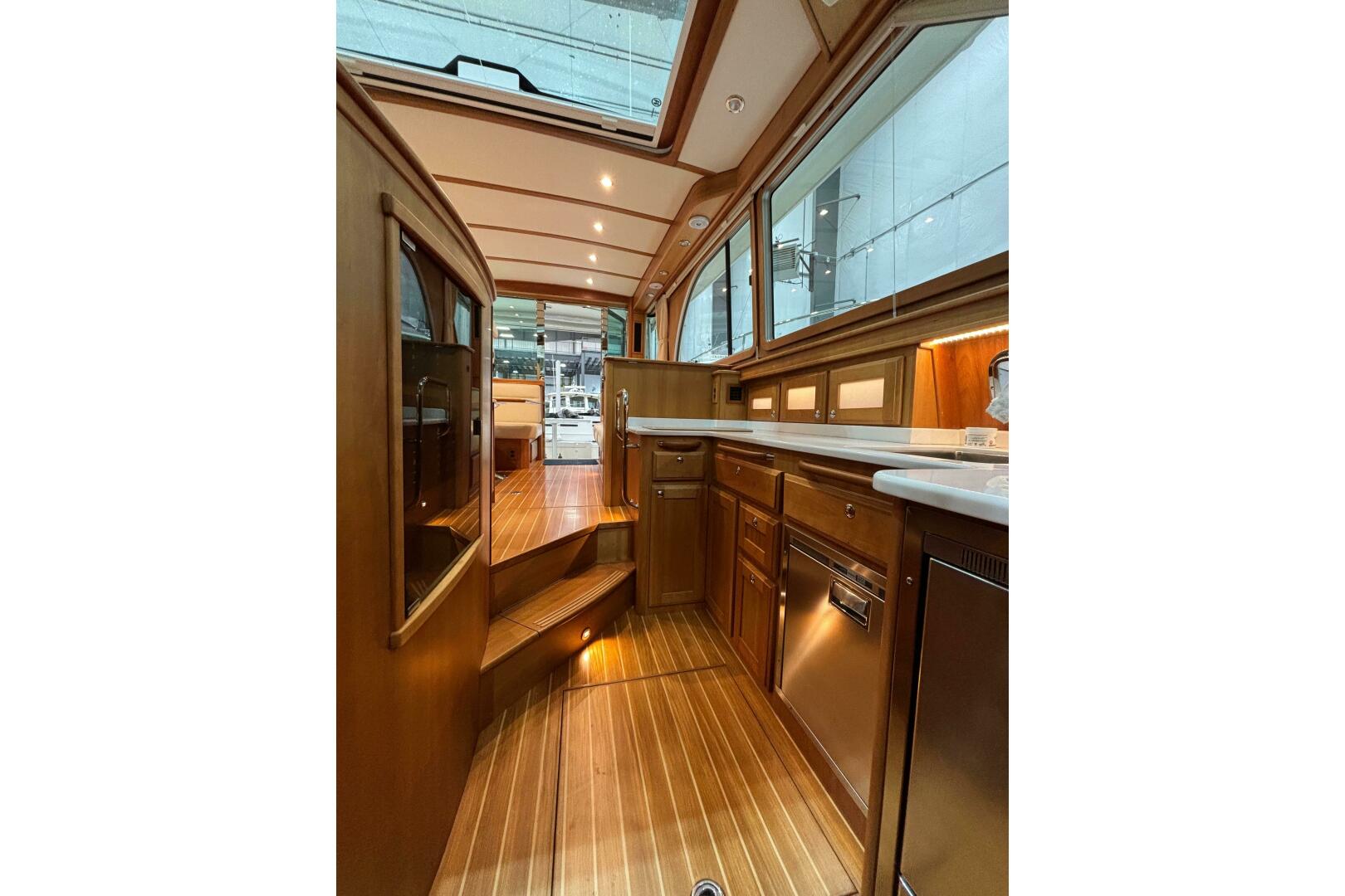 A U-shaped settee transforms her cockpit into an elegant and livable space, equally suited to entertaining or enjoying some peace on the water. Her functional side decks, with handholds wherever they are needed, provide a previously unheard of level of security and comfort.