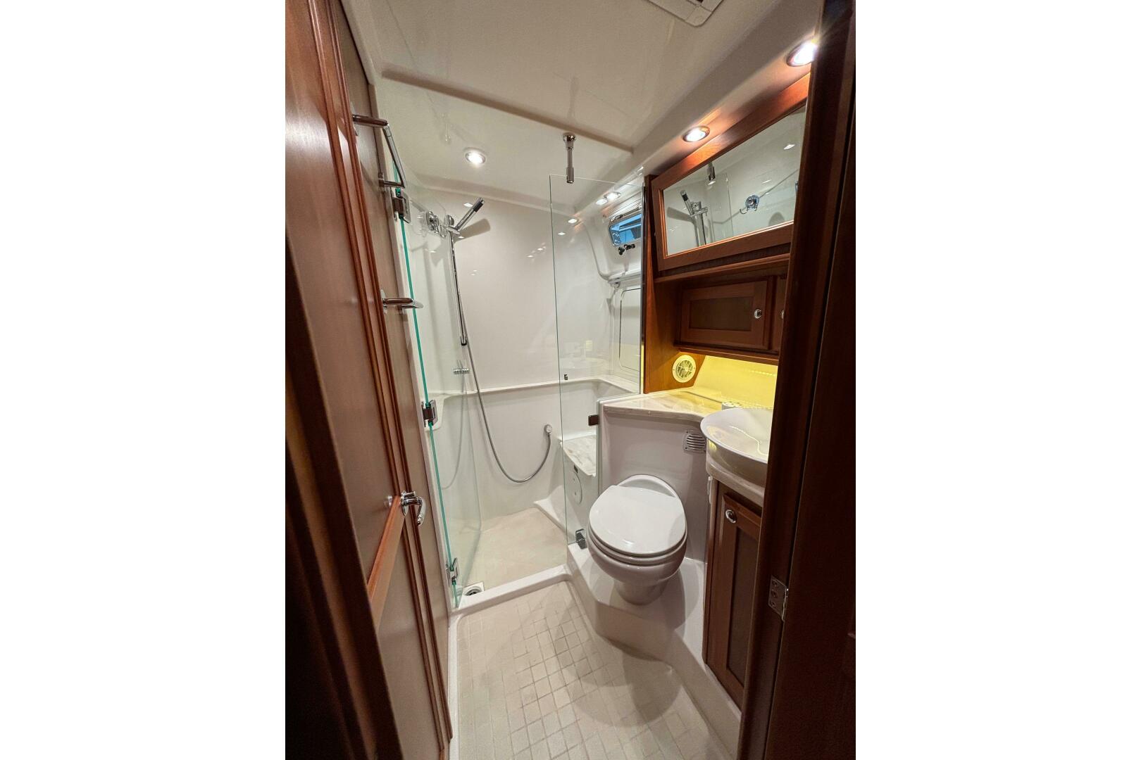 - - Storage locker outboard of the shower.