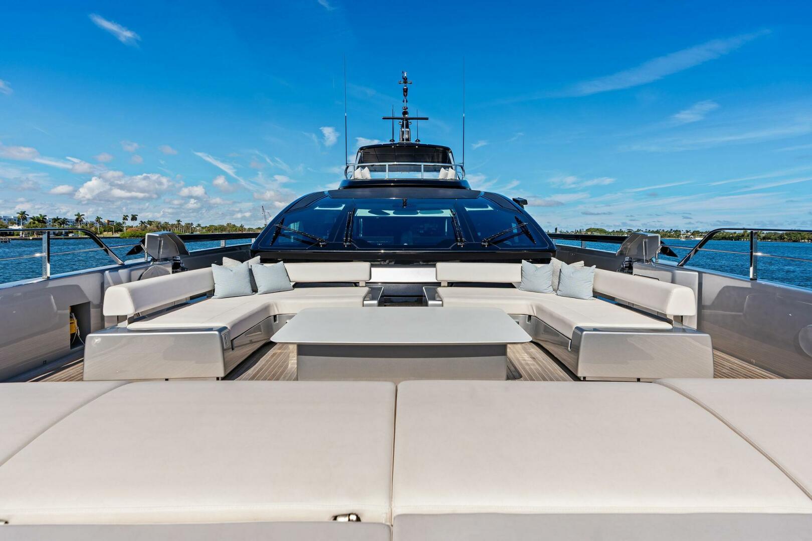 BOW LIVING AREA: An extreme large sun pad forward with an incredible jacuzzi.