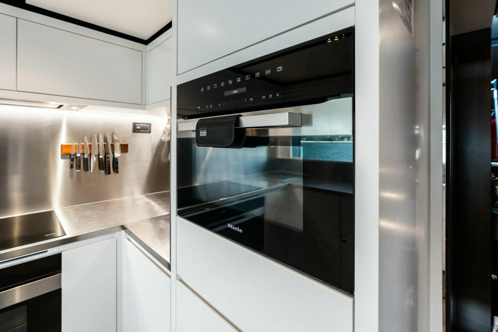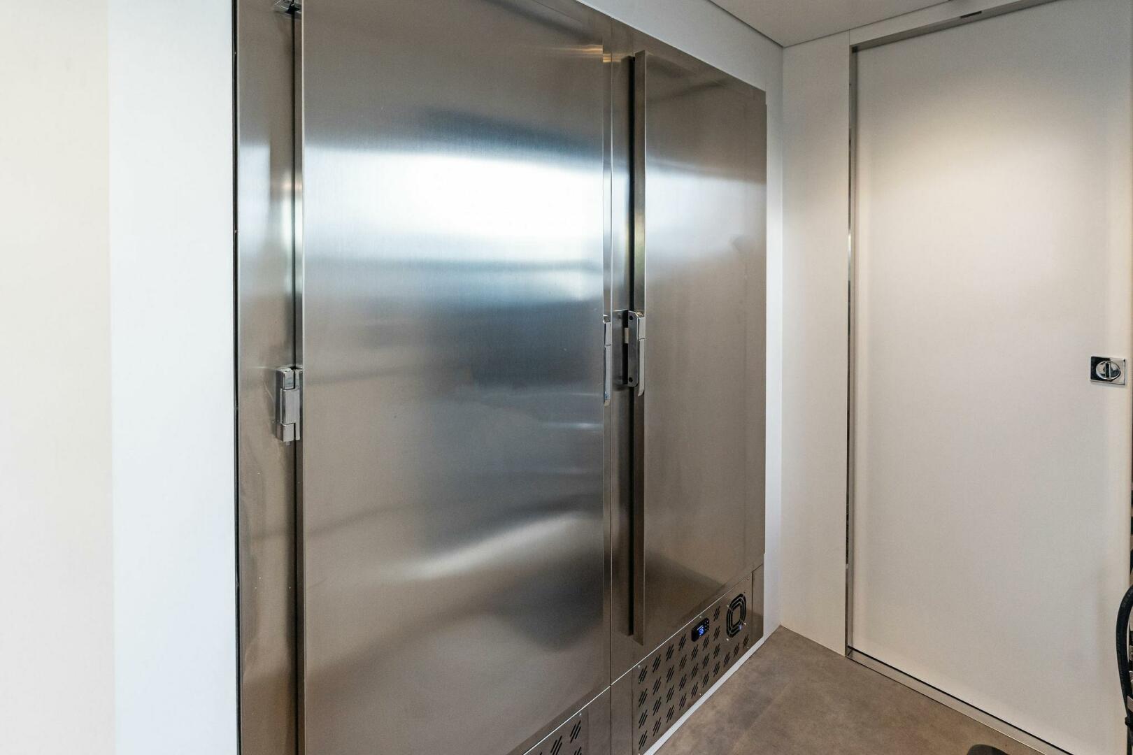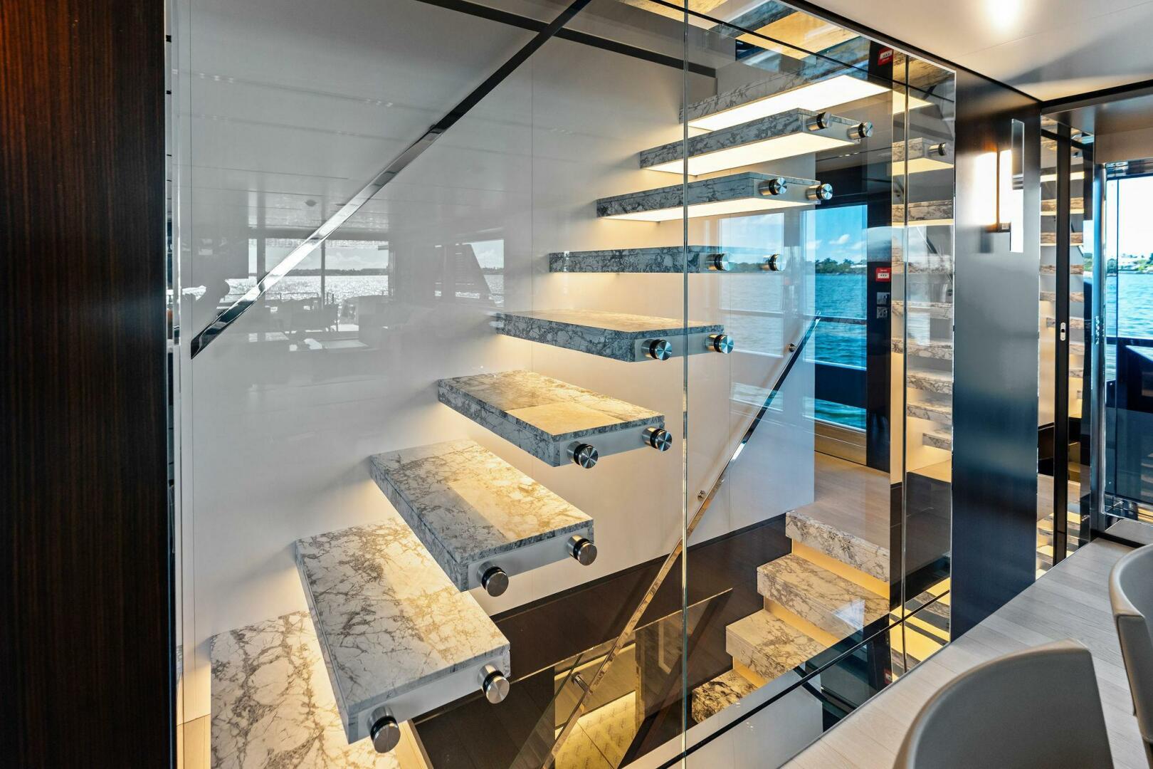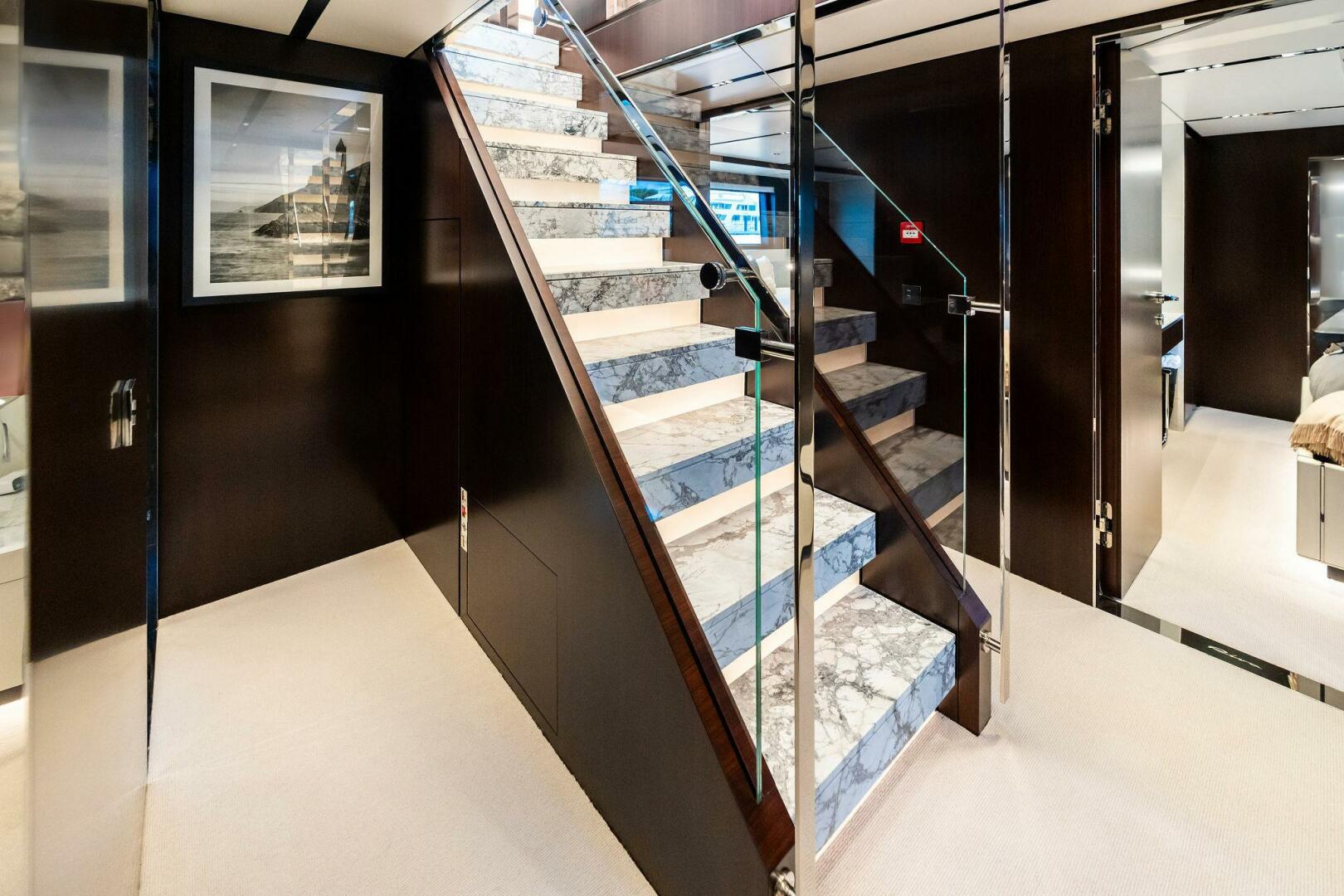 - Main deck dining area (portside): openable panoramic glazing door with polished stainless steel frame.