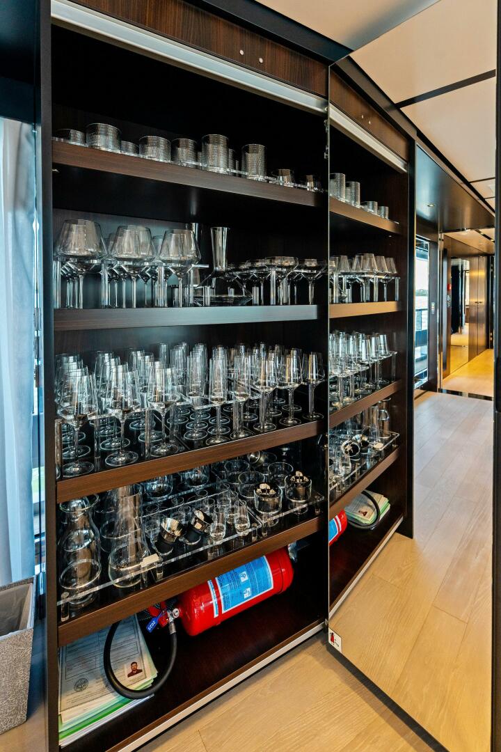 TENACIOUS was built with nearly $5,500,000 in extra shipyard options, plus $350,000 in custom bars, cabinets and tables, plus roughly $500,000 spent with the owner's personal designer on custom furniture and décor for a total of $6,350,000 in extras. Each of the three decks have custom-made bars, manufactured in Italy, by G.I.A.D.A. based in La Spezia.