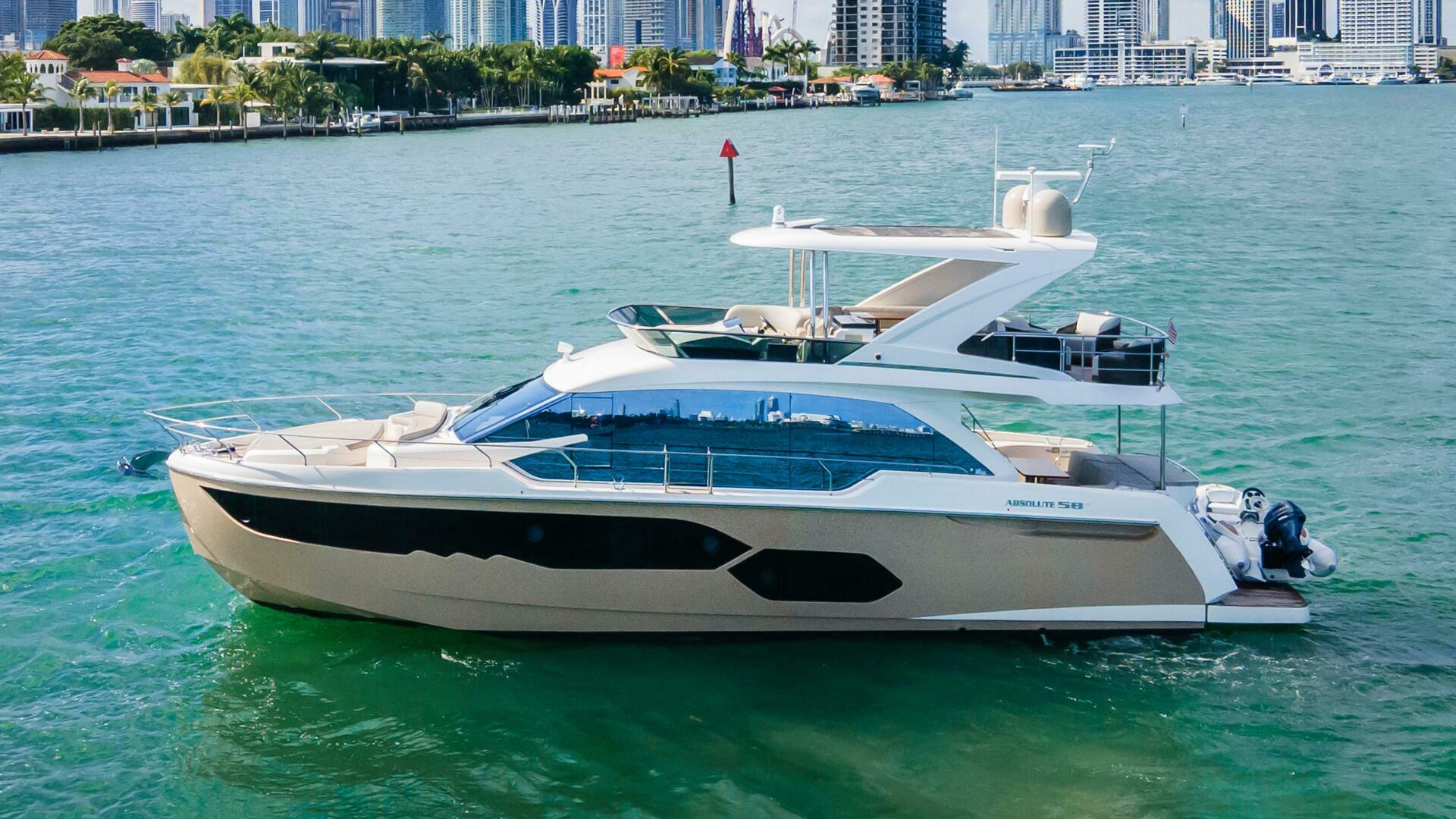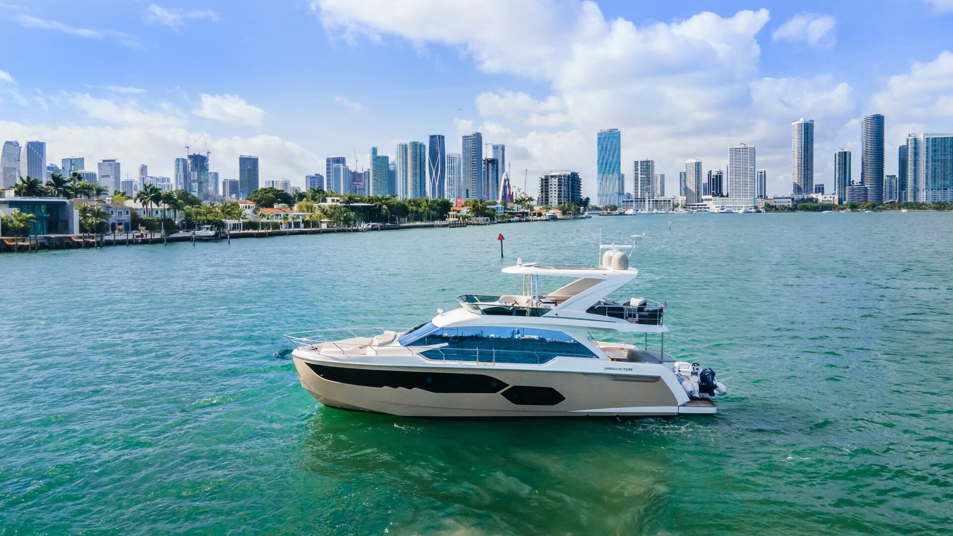 A truly special opportunity to own a pristine Absolute 58 Fly, fully equipped with every available option and maintained under an open-checkbook management program. This yacht delivers an exceptional blend of performance, comfort, and modern Italian styling, making her one of the most desirable models in her class. Powered by twin Volvo Penta D8-600 diesels with Volvo IPS pod drives, she offers efficient cruising, outstanding maneuverability, and precise handling in all conditions. Teak decking, a hydraulic swim platform, Quick windlass, lower starboard side docking station, Seakeeper 9, dishwasher, Avon tender with Yamaha outboard, etc, etc, etc, makes for a complete and strong equipment package. The salon is bright and open with large windows and an electric sunroof for natural light and ventilation. Don’t miss this opportunity to own the perfect owner operator opportunity.