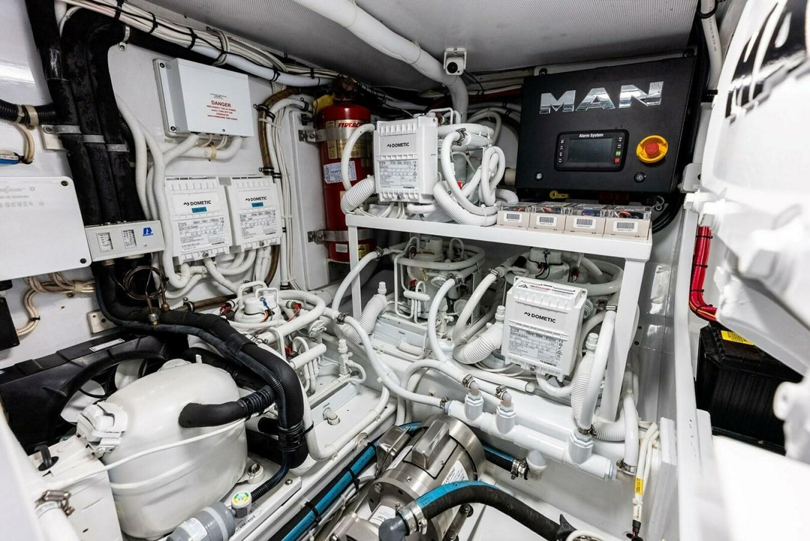 In 2023, the engine room received a complete makeover including re-power with new MAN I6-800 HP MAN main engines, ZF Transmissions, new systems, and TONS of upgrading. All work completed to the highest standards and must be seen to truly appreciate the careful consideration to all details throughout.