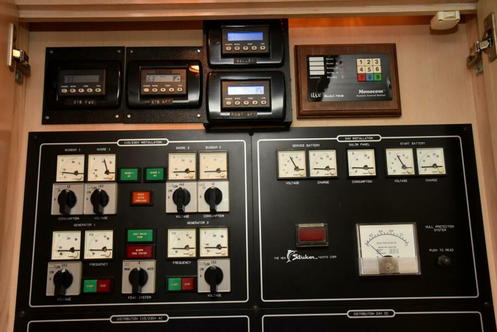 This 1989 Striker 62 Sportfish - "TALISMAN" is 100% turn key and ready to go! It's hard to believe that a boat in this pristine condition was built in the late 80's. She's had one owner for her entire life and the same Captain has been on board since 1994. She had a $1.2 million dollar overhaul in 2007. Powered with the famous MAN 1550 main engines with just over 2k hours, a pair of 27.5kw Cummins Onan gensets, a spacious well laid out cockpit looks incredible with a teak deck and covering boards. There's also two deep freezers, two bait tanks, one of which converts into tuna tubes. The custom tackle center is well lad out for all your tackle storage needs.
