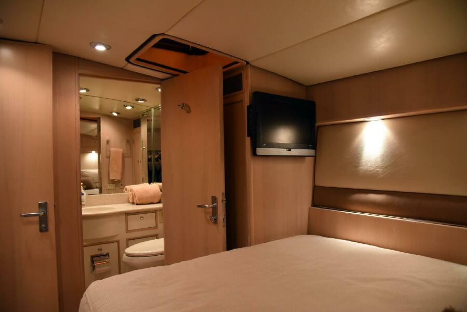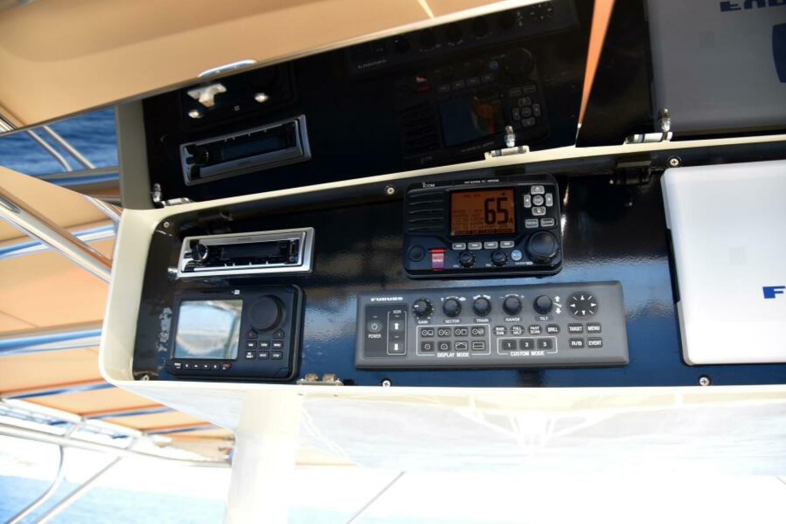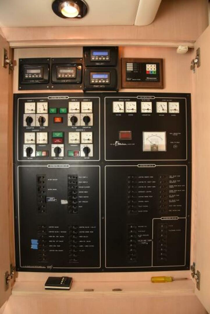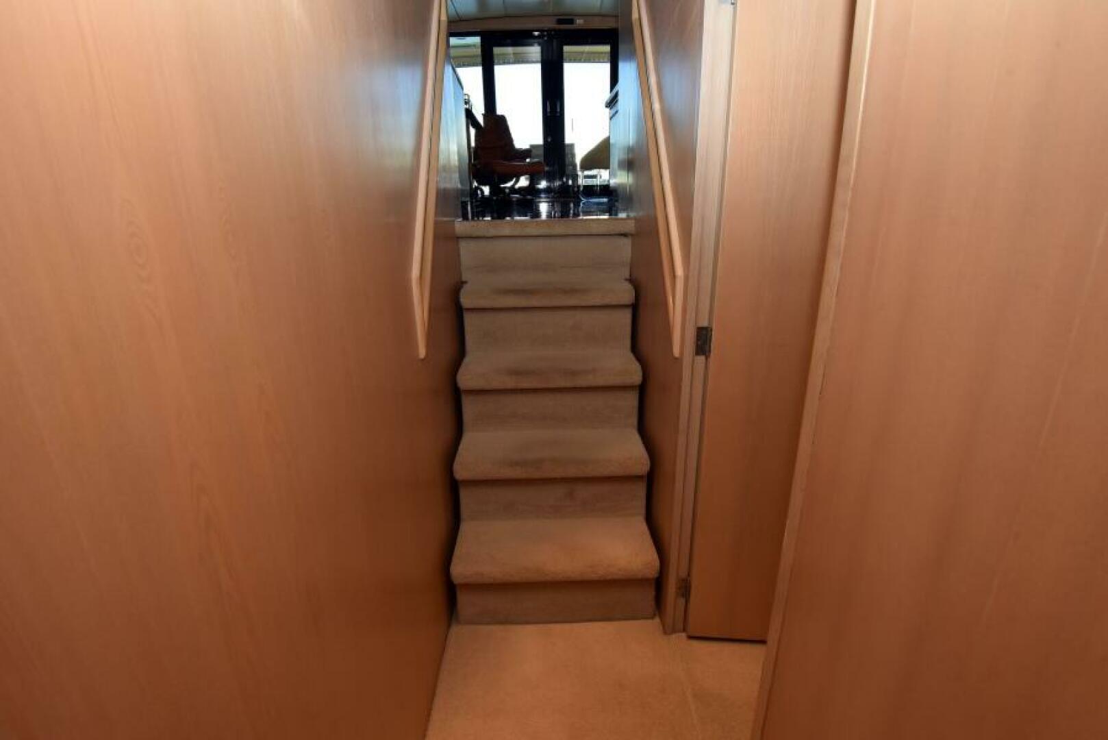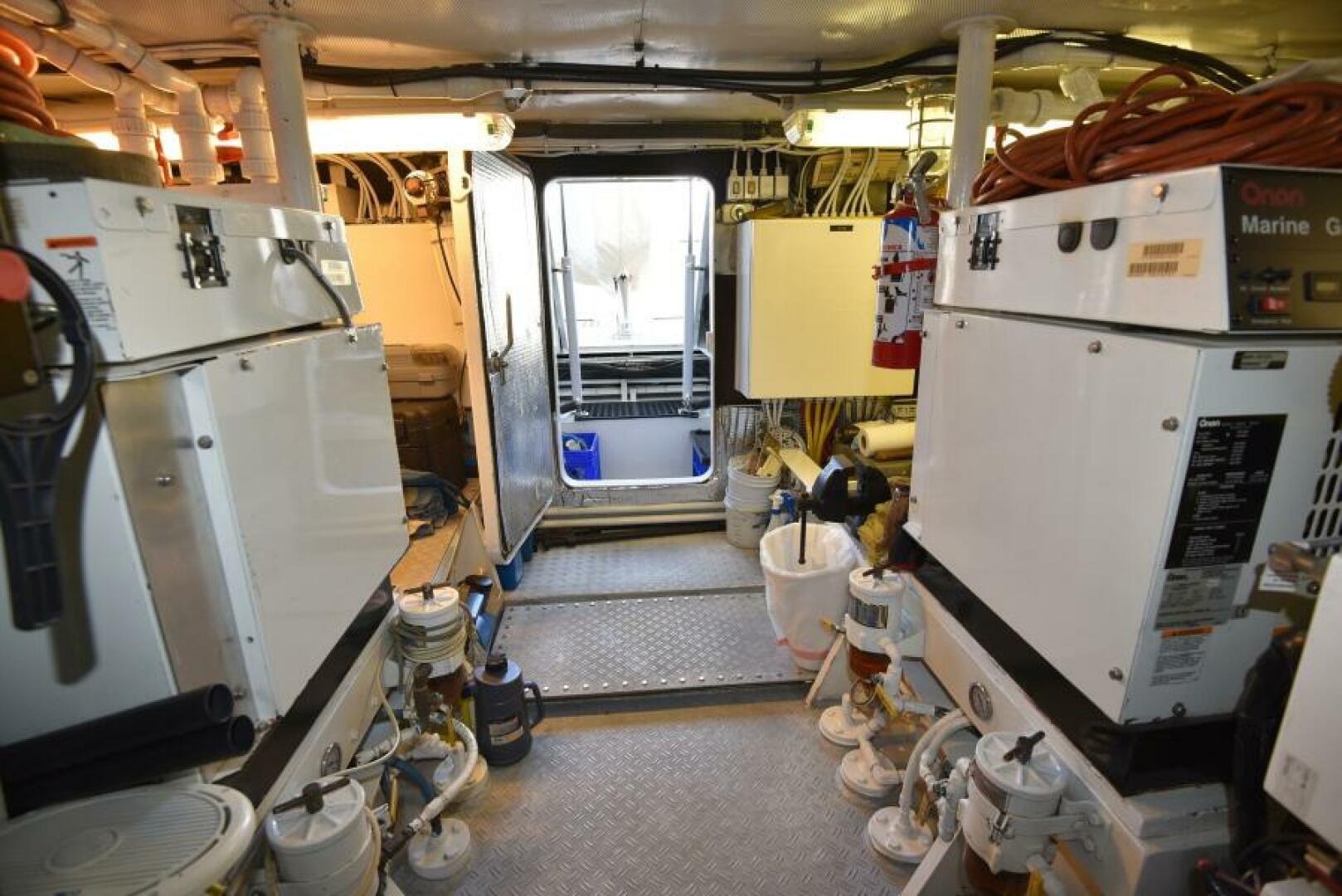 "TALISMAN" has been completely refurbished, in and out. The interior is stunning, upon entering the salon through automatic doors which creates a 6' wide passageway and combines the cockpit and salon into one huge indoor/outdoor unit, the first thing you'll notice are the polished teak flooring throughout. The interior is huge, with 6'8" headroom and with full advantage taken of the 21' beam. New countertops & cabinetry in the galley. Custom dinette with table and seating for (7-8), Galley Island for extra counter space. There is a Dayhead in the salon with access from both salon and cockpit. Sleeps 6 in 3 stateroom, 4 head layout. Large Master forward with King berth, VIP stateroom to starboard with double berth and bunk room to port, each with ensuite head and shower. The Master stateroom forward has a centerline King berth, His & Hers hanging lockers, custom teak flooring around berth, head with shower with enclosure and head. The VIP is well appointed with double berth, hanging locker & drawer storage, wall covering, ensuite head with shower. The Guest stateroom to port has upper & lower berths with upper being a Pullman, ensuite head and shower, desk and reading lights. Up to the huge open bridge which has seating for 12 people and extremely comfortable with great visibility!