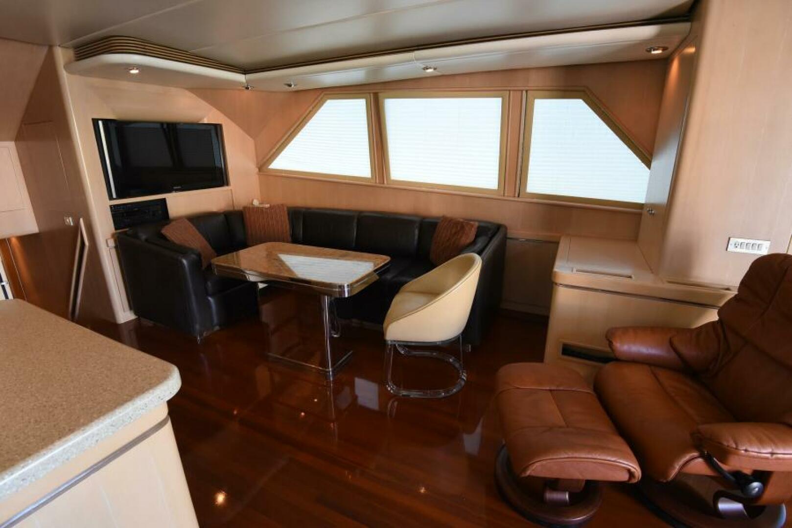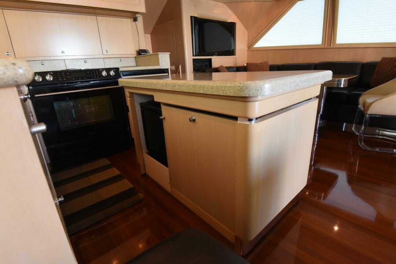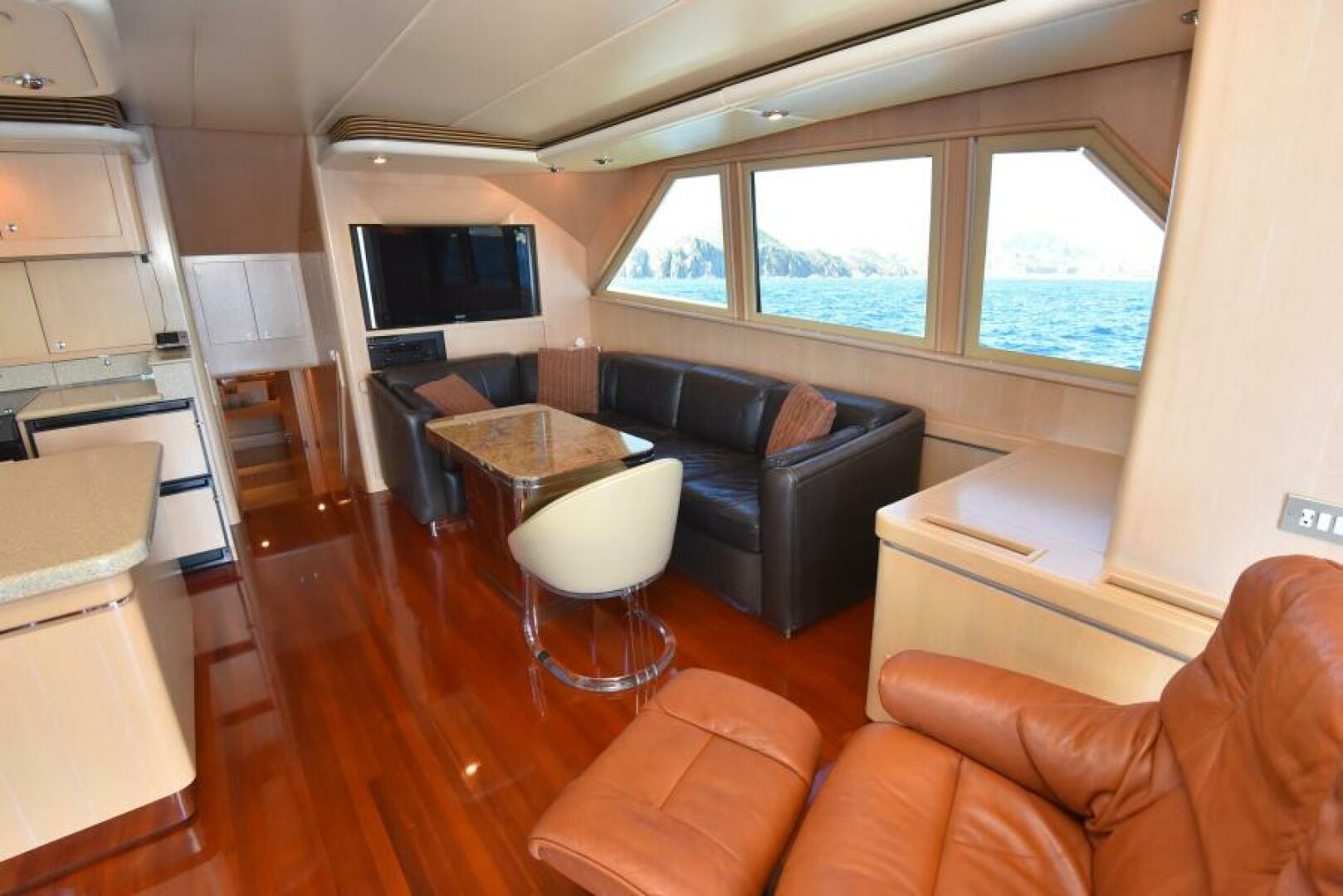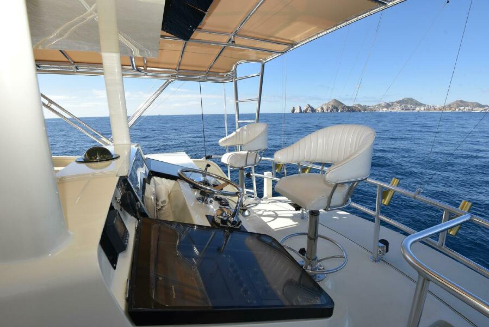 "TALISMAN" has been completely refurbished, in and out. The interior is stunning, upon entering the salon through automatic doors which creates a 6' wide passageway and combines the cockpit and salon into one huge indoor/outdoor unit, the first thing you'll notice are the polished teak flooring throughout. The interior is huge, with 6'8" headroom and with full advantage taken of the 21' beam. New countertops & cabinetry in the galley. Custom dinette with table and seating for (7-8), Galley Island for extra counter space. There is a Dayhead in the salon with access from both salon and cockpit. Sleeps 6 in 3 stateroom, 4 head layout. Large Master forward with King berth, VIP stateroom to starboard with double berth and bunk room to port, each with ensuite head and shower. The Master stateroom forward has a centerline King berth, His & Hers hanging lockers, custom teak flooring around berth, head with shower with enclosure and head. The VIP is well appointed with double berth, hanging locker & drawer storage, wall covering, ensuite head with shower. The Guest stateroom to port has upper & lower berths with upper being a Pullman, ensuite head and shower, desk and reading lights. Up to the huge open bridge which has seating for 12 people and extremely comfortable with great visibility!
